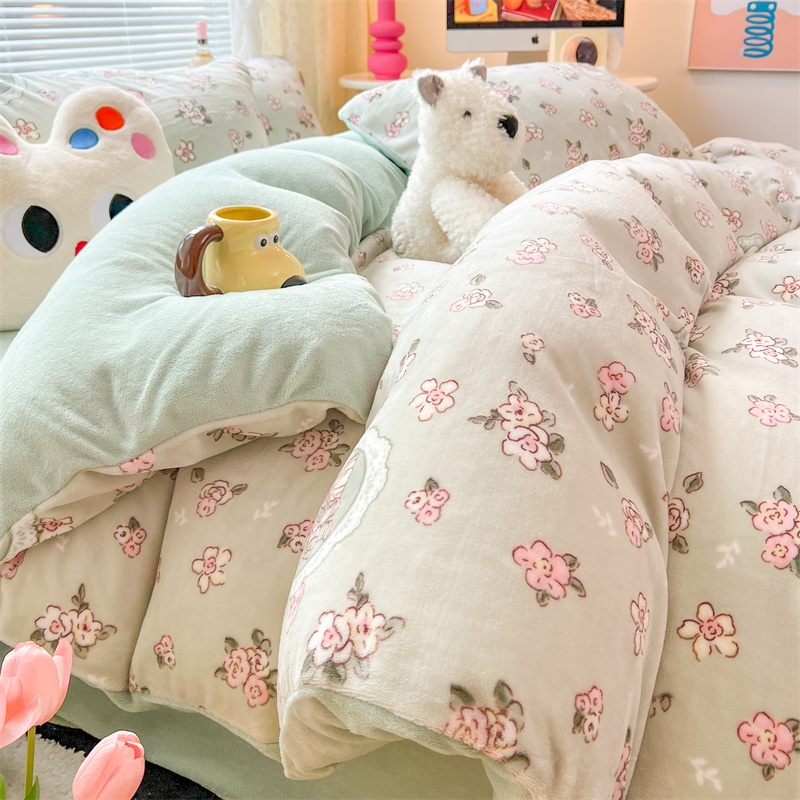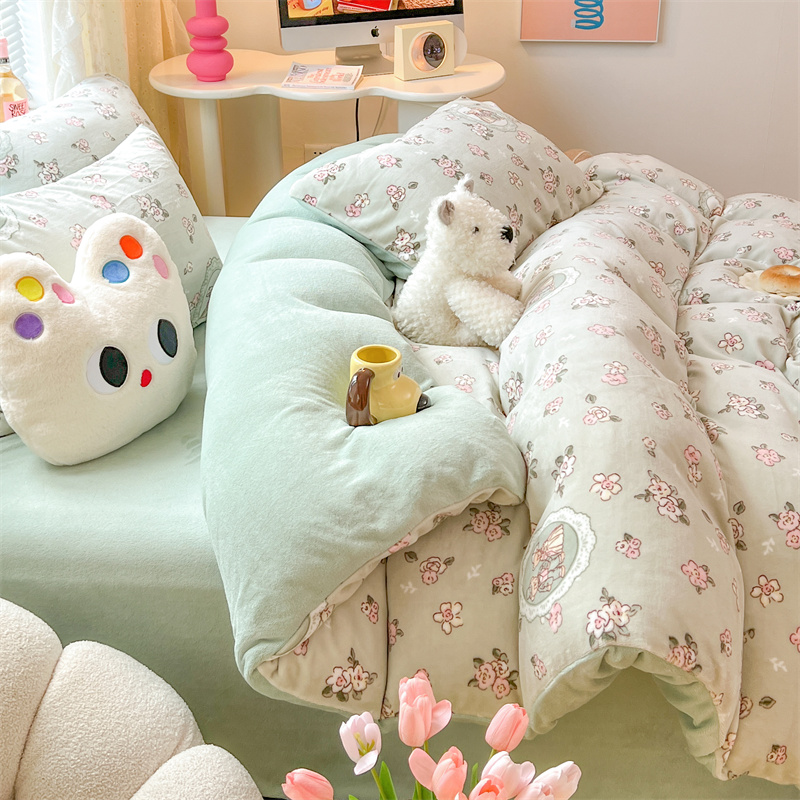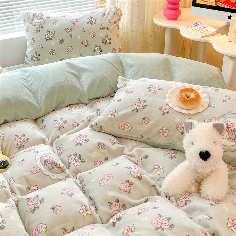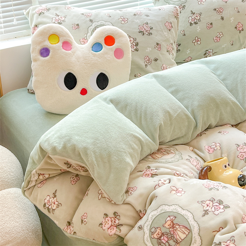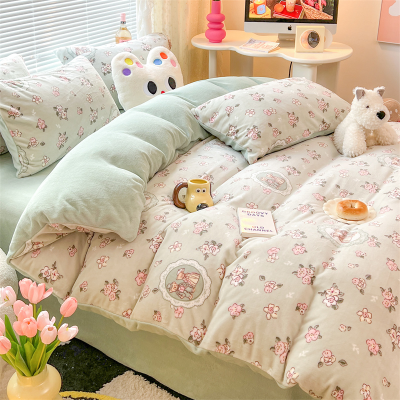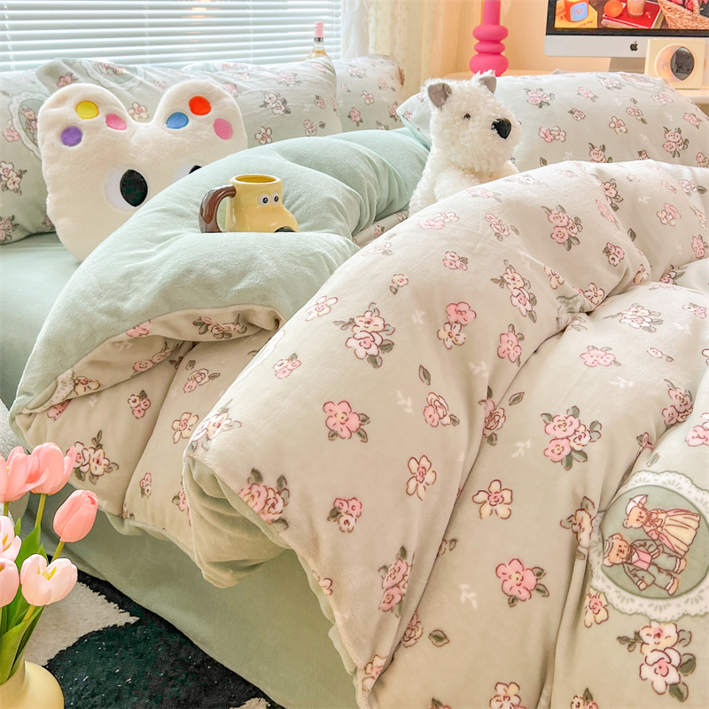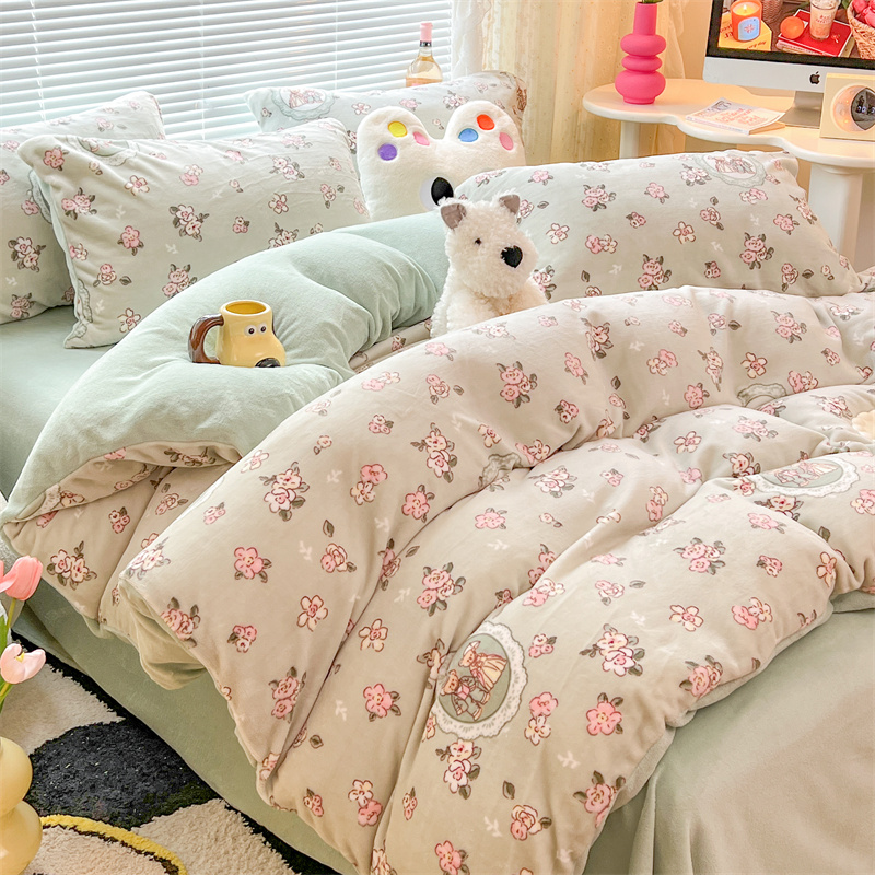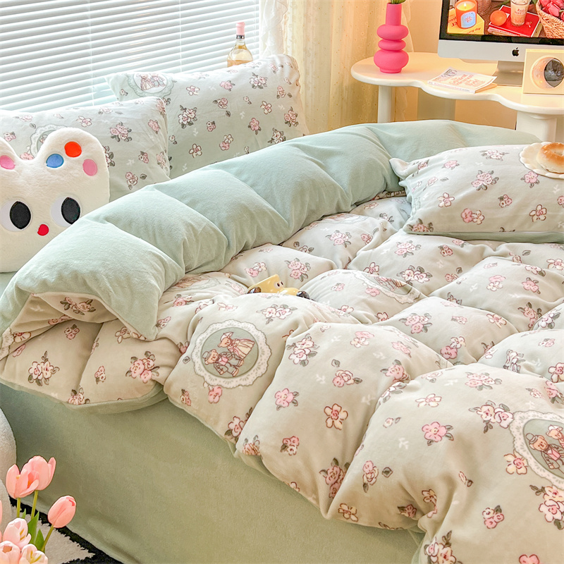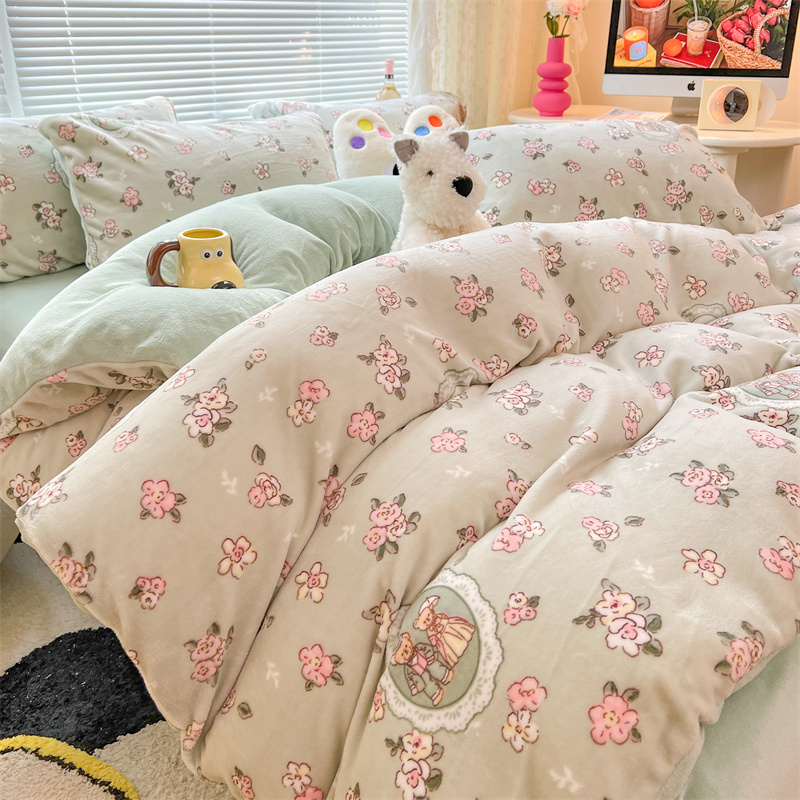 顾里家纺 新款ins少女保暖牛奶绒四件套第二批 碎花小熊