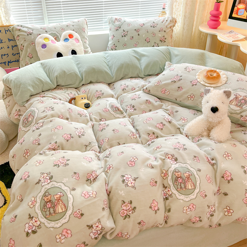 商品名称:顾里家纺 新款ins少女保暖牛奶绒四件套第二批 碎花小熊