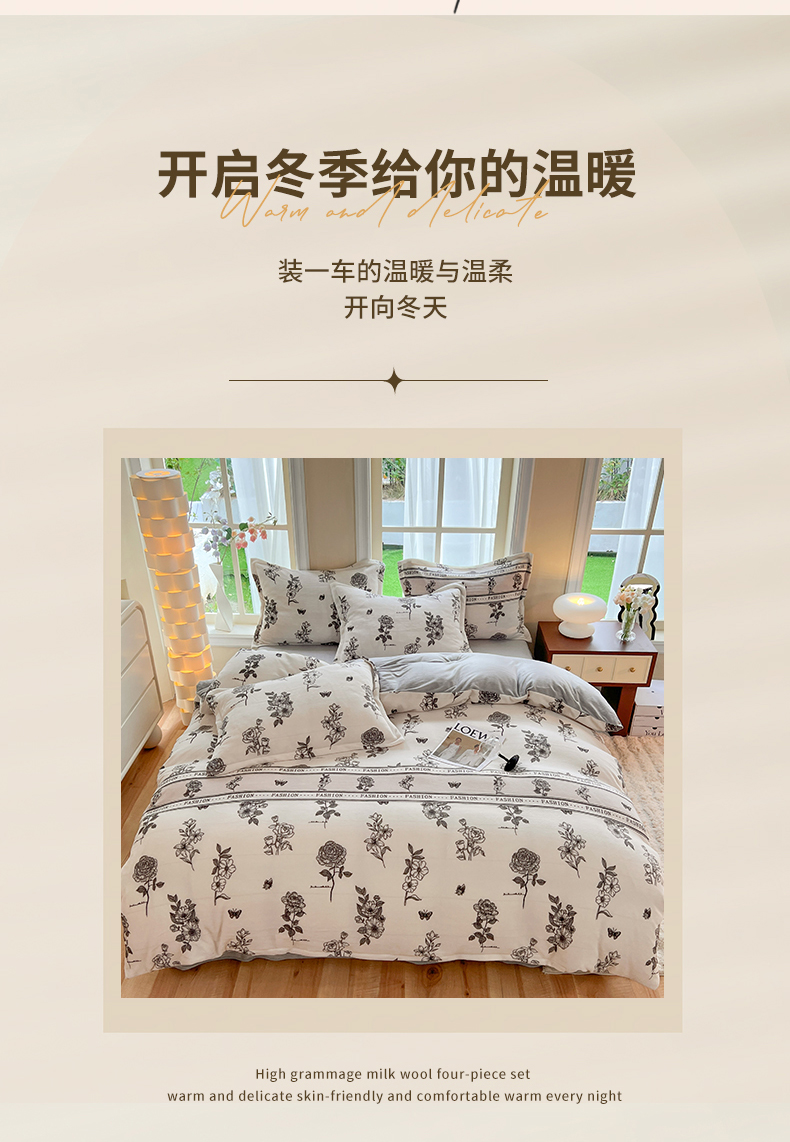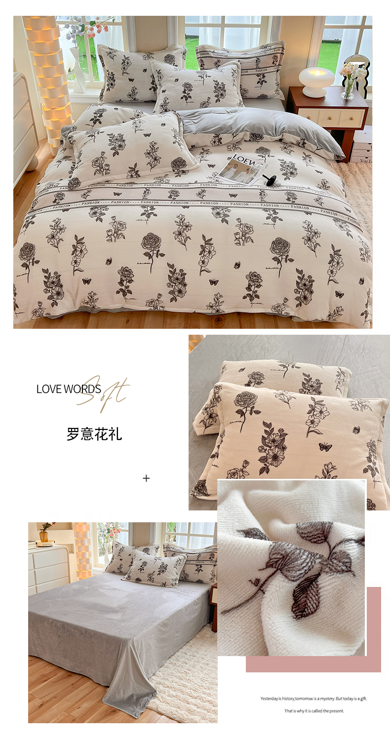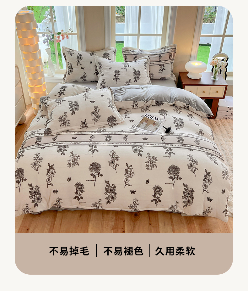 当前位置: 91家纺网 > 商品网购 > 床品套件 > 四件套 > 牛奶绒四件套 > 妖妖家纺 2023新款牛奶绒四件套 罗意花礼
