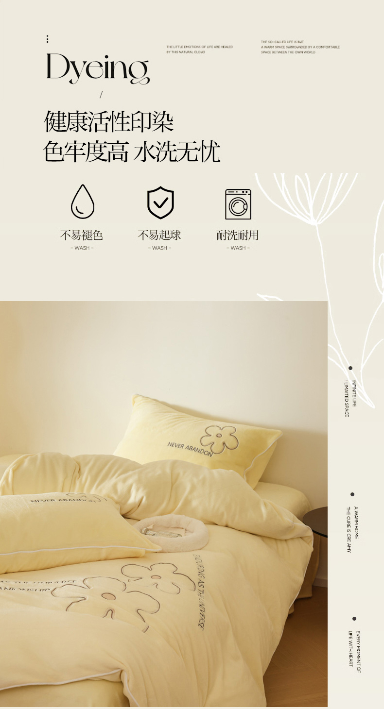 商品名称:万盛家纺 2025新款牛奶绒简约绣花四件套 奶油黄