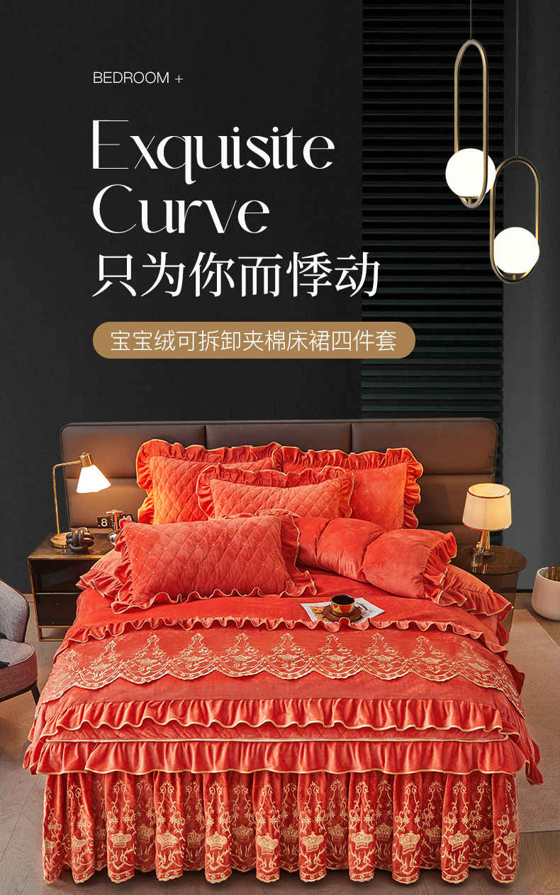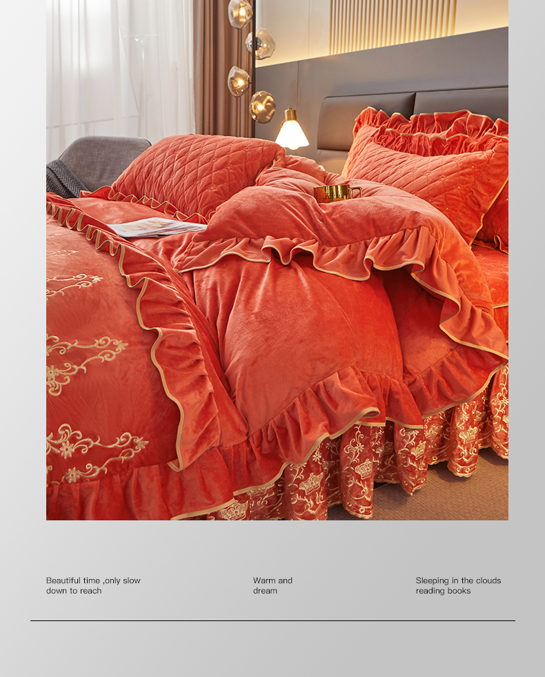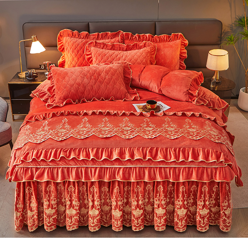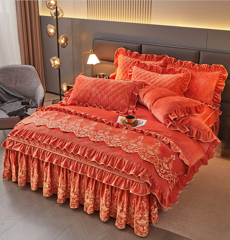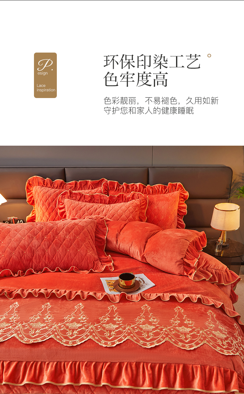 当前位置: 91家纺网 > 商品网购 > 床品套件 > 四件套 > 宝宝绒四件套 > 罗艺轩 2024新款欧洲风情宝宝绒可拆卸夹棉床裙四件套 爱玛橙