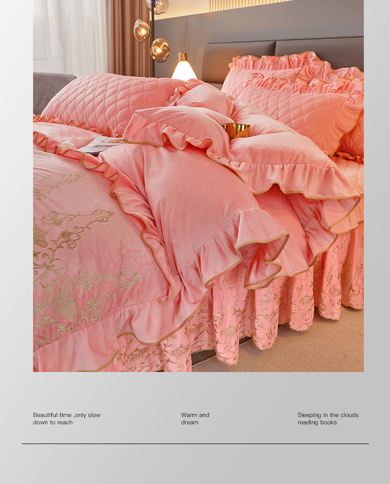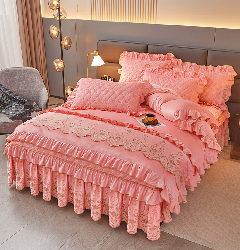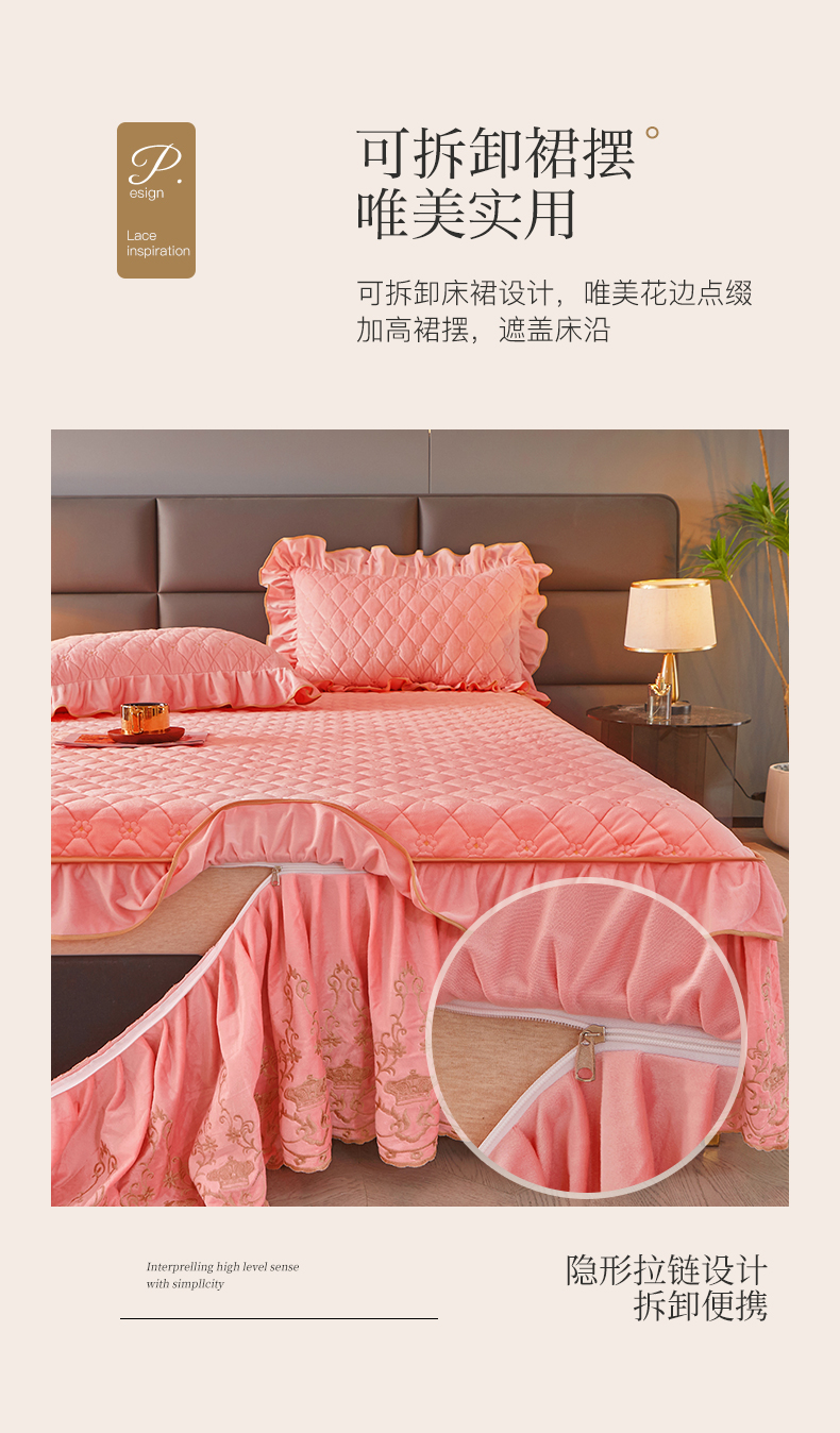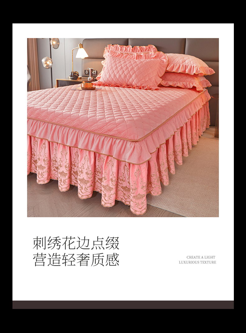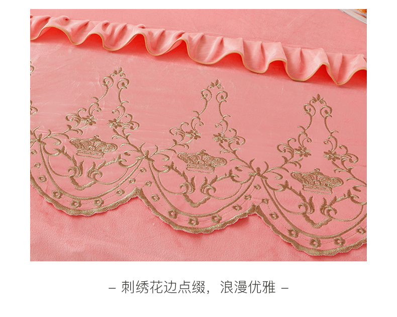 当前位置: 91家纺网 > 商品网购 > 床品套件 > 四件套 > 宝宝绒四件套 > 罗艺轩 2024新款欧洲风情宝宝绒可拆卸夹棉床裙四件套 樱花粉