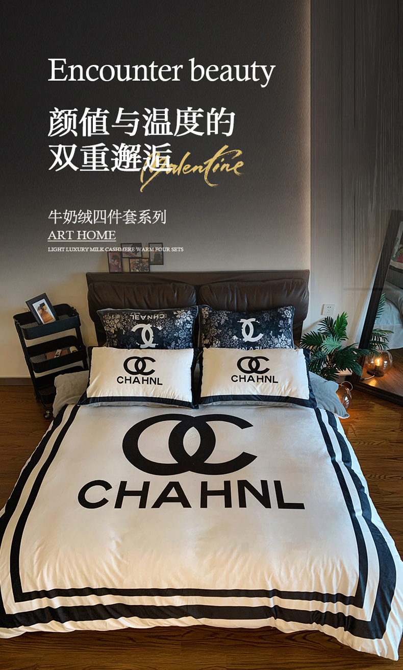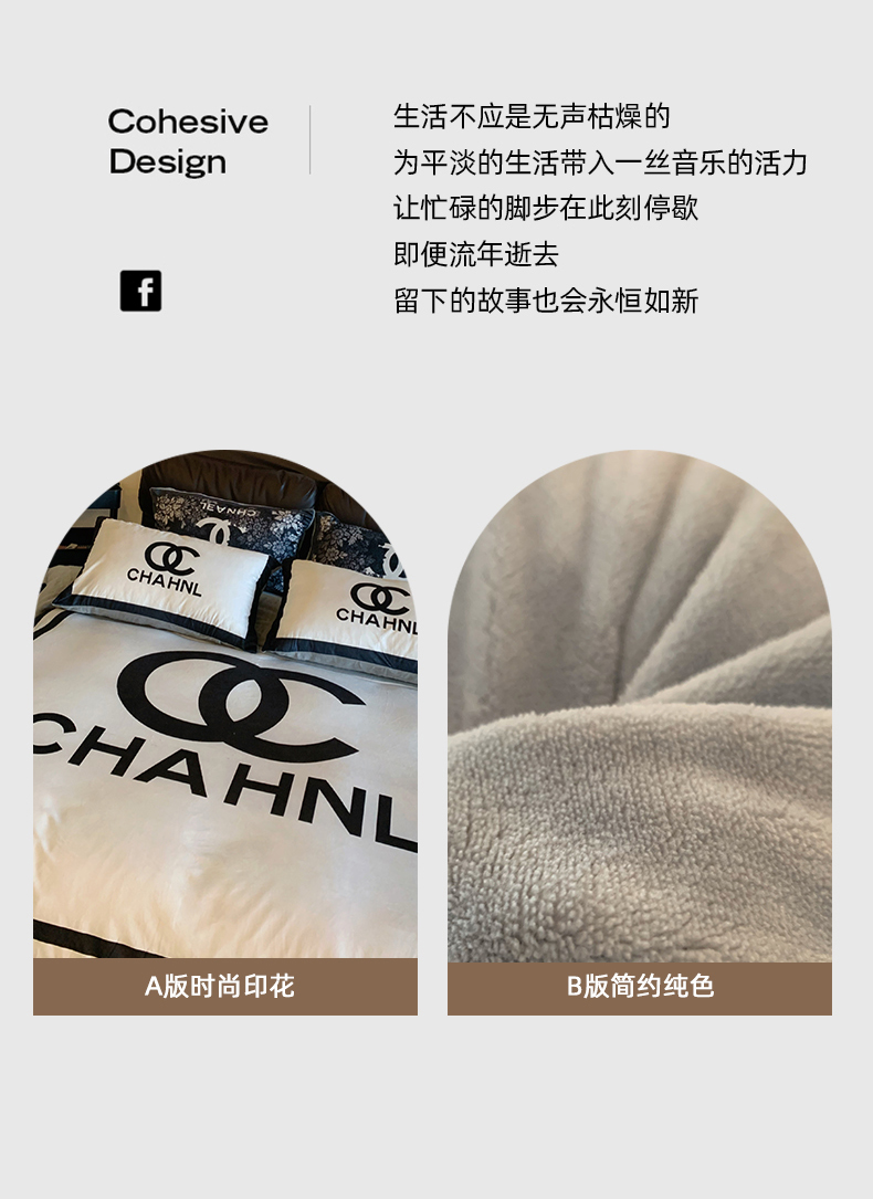 色鬼 2023新款潮牌印花牛奶绒四件套直播 小香白