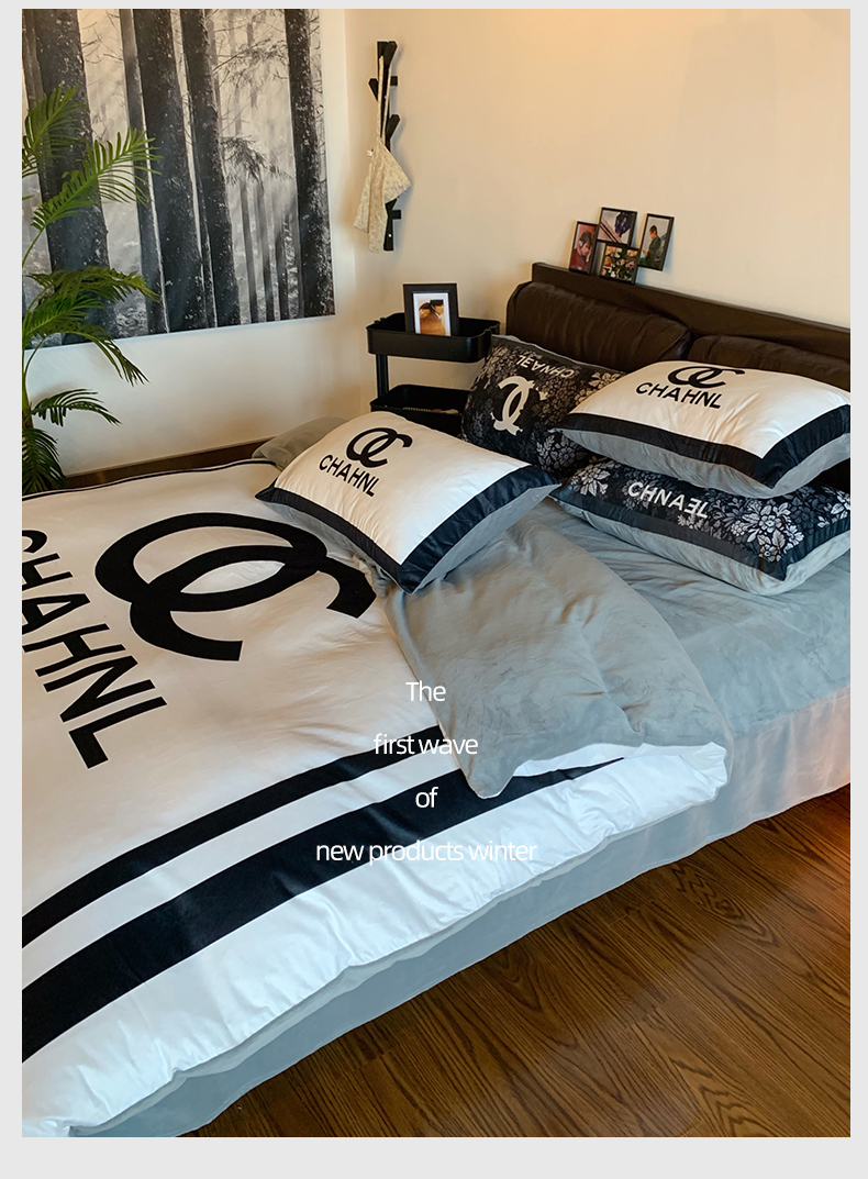 (总)色鬼布艺高端家居主号 2025新款轻奢亲肤纯棉数码印花网红热款四件套,豹纹香,白金V,白香花,大H,黑白迪,黑白V,灰迪,咖古,克莱因,慕斯小姐,山茶花,星空