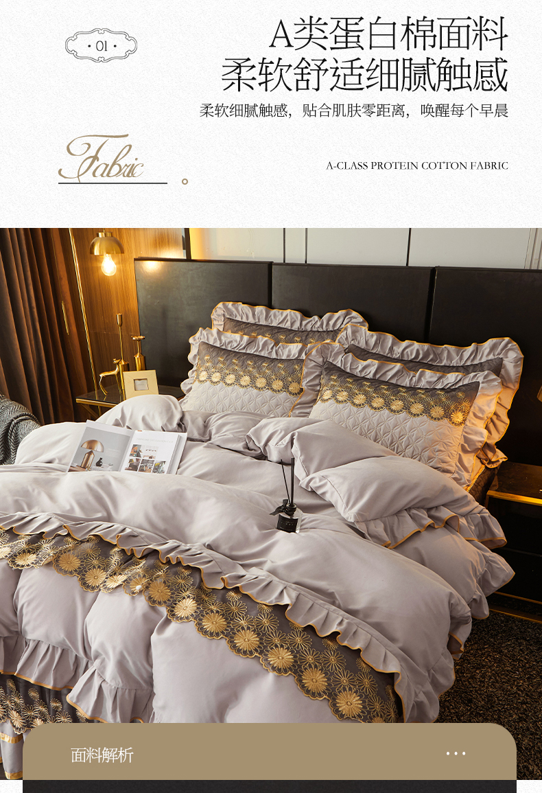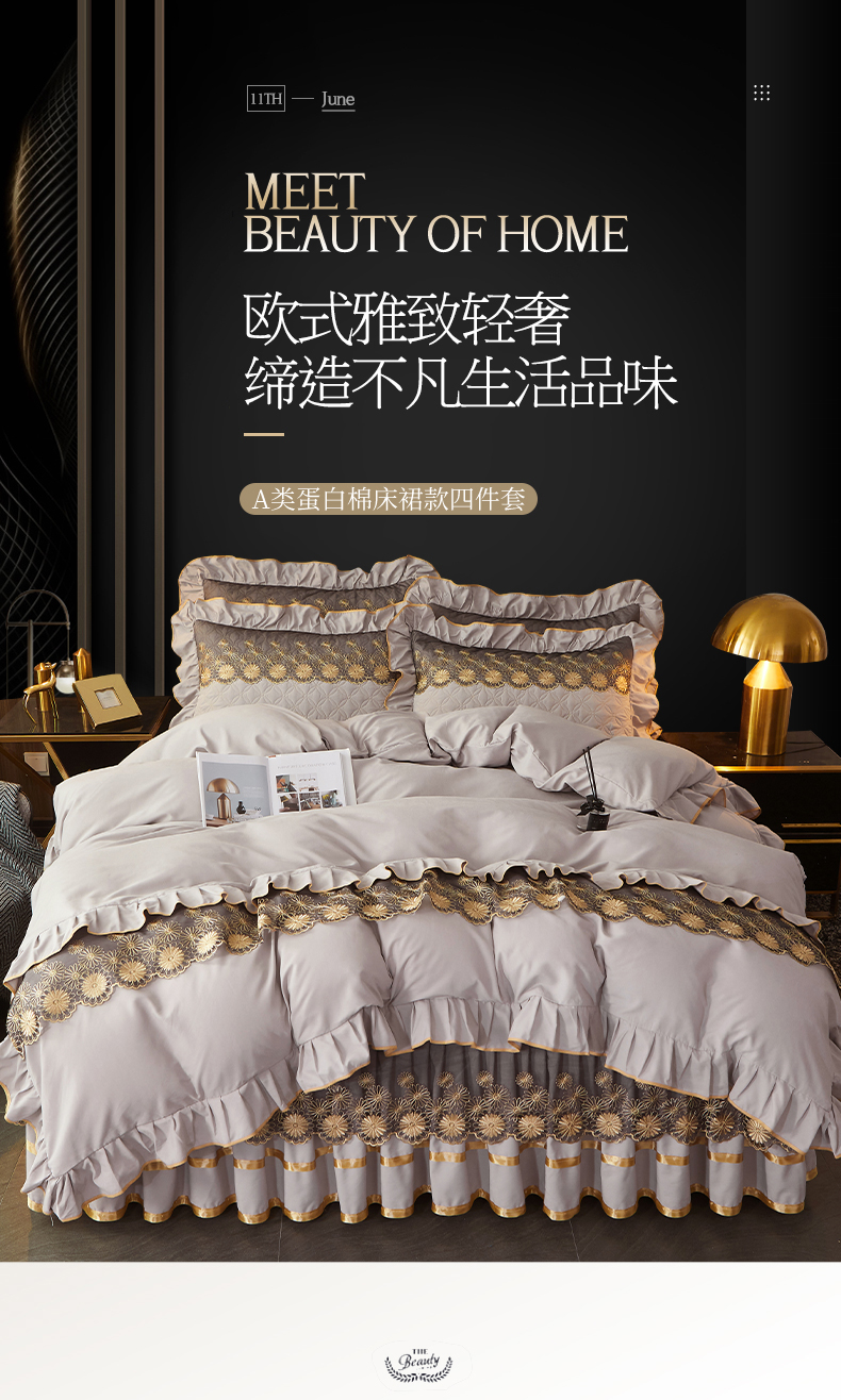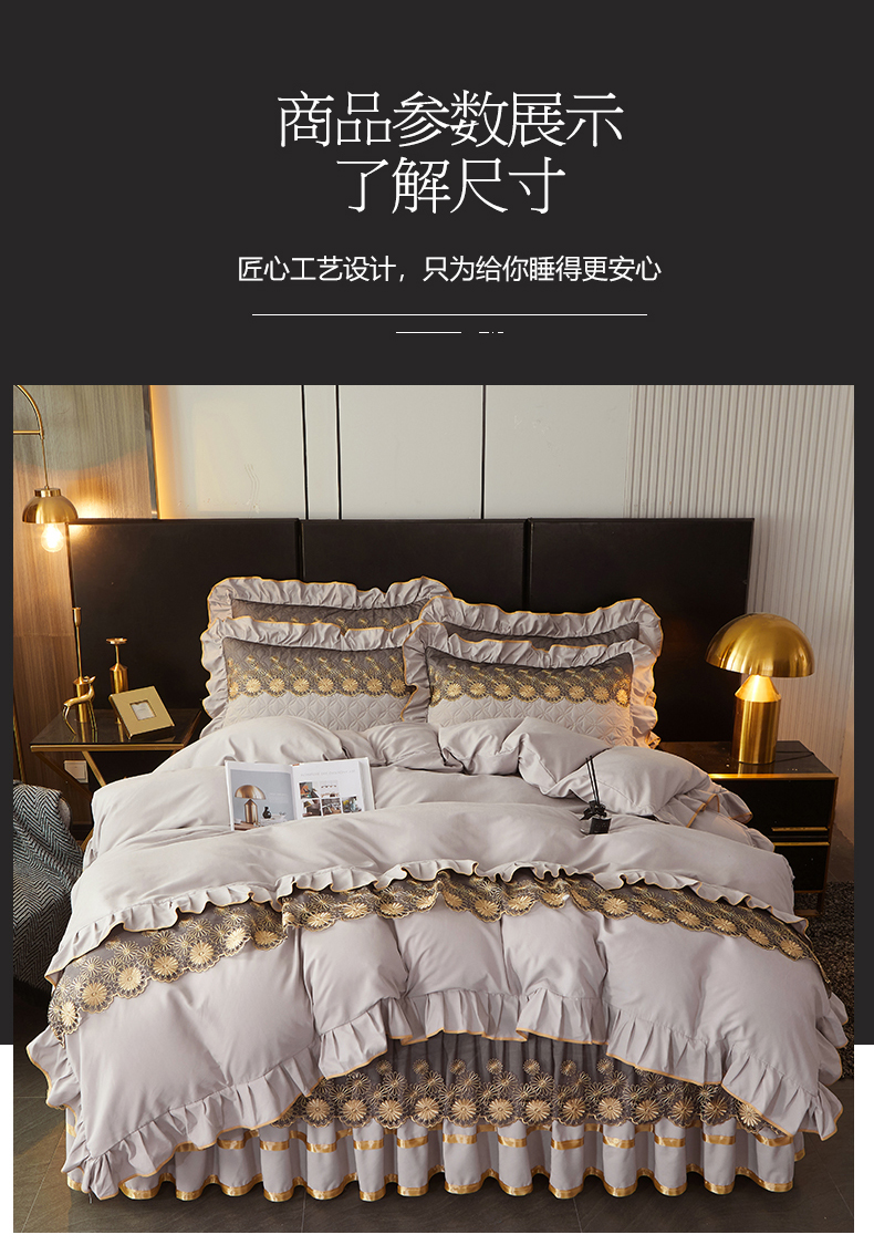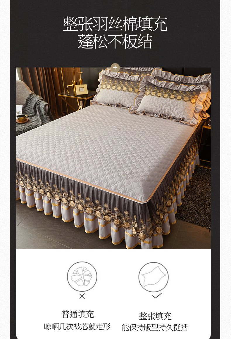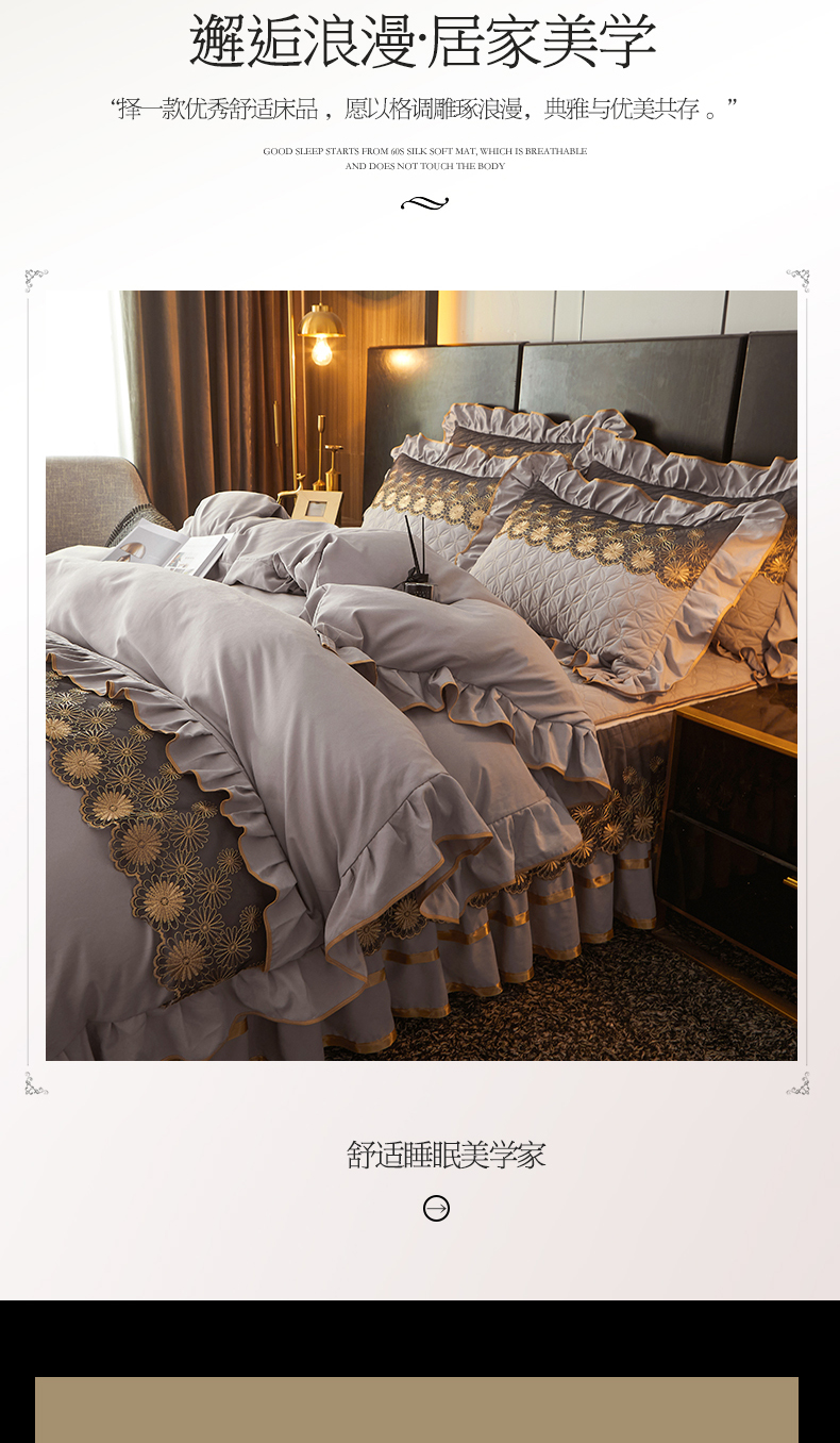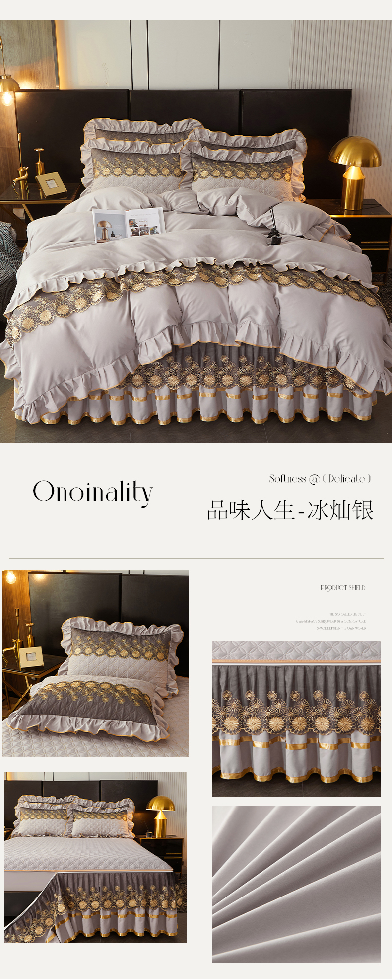 当前位置: 91家纺网 > 商品网购 > 床品套件 > 四件套 > 化纤普通四件套 > 罗艺轩 2024新款A类蛋白棉夹棉床裙四件套-品味人生 品味人生-冰灿银