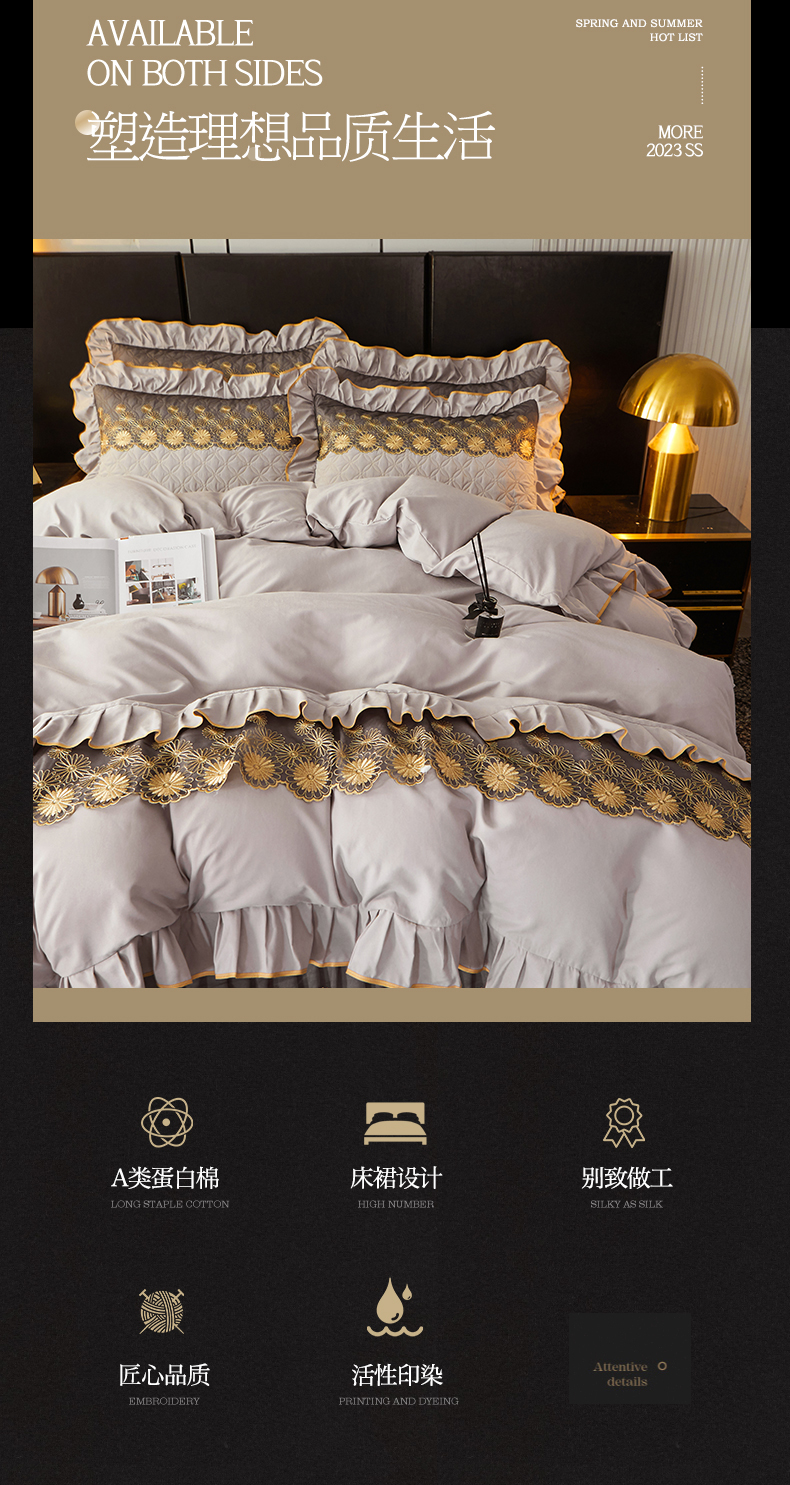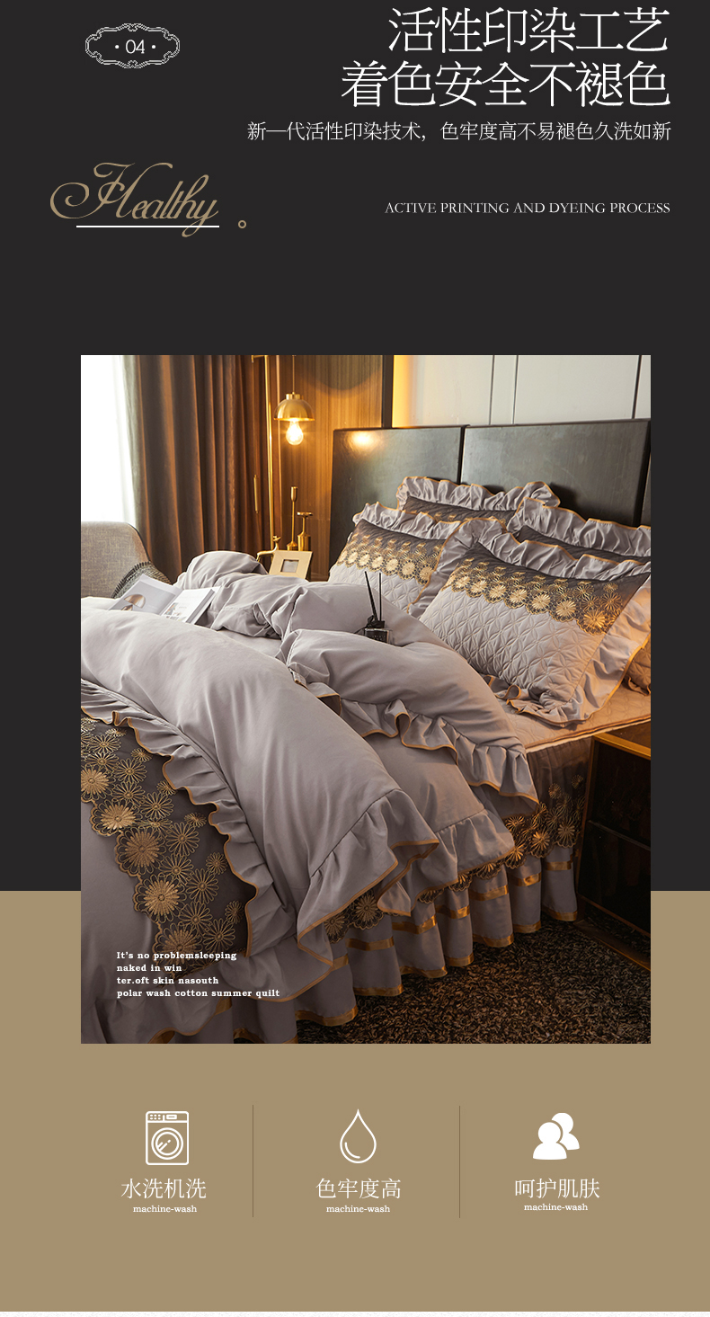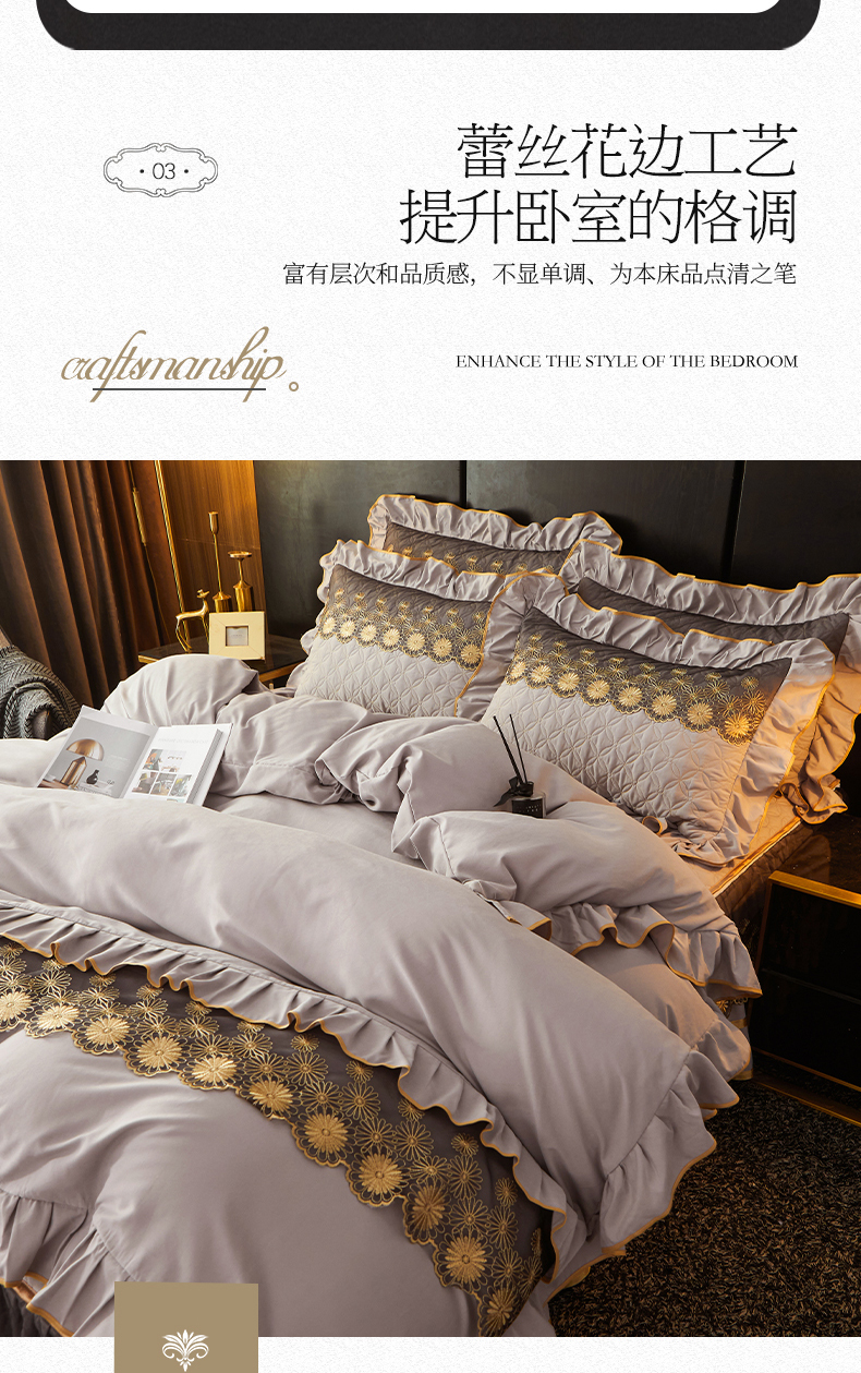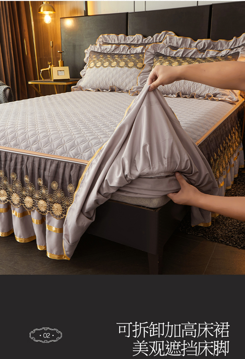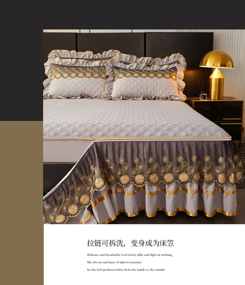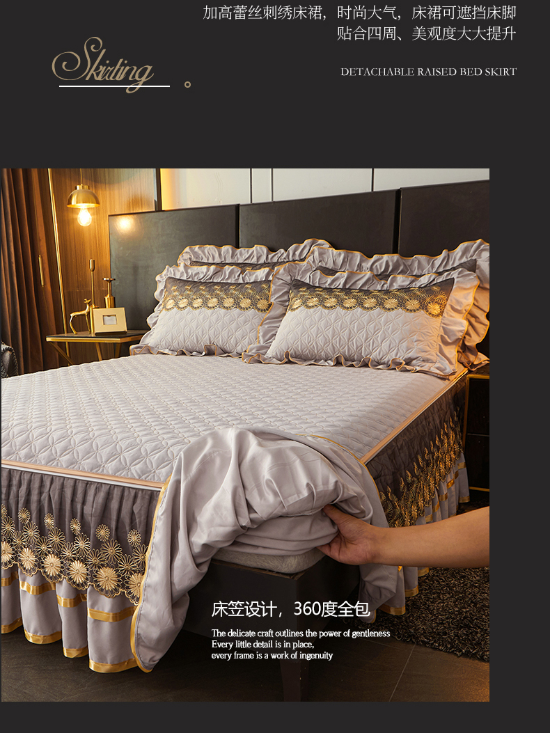 当前位置: 91家纺网 > 商品网购 > 床品套件 > 四件套 > 化纤普通四件套 > 罗艺轩 2024新款A类蛋白棉夹棉床裙四件套-品味人生 品味人生-冰灿银