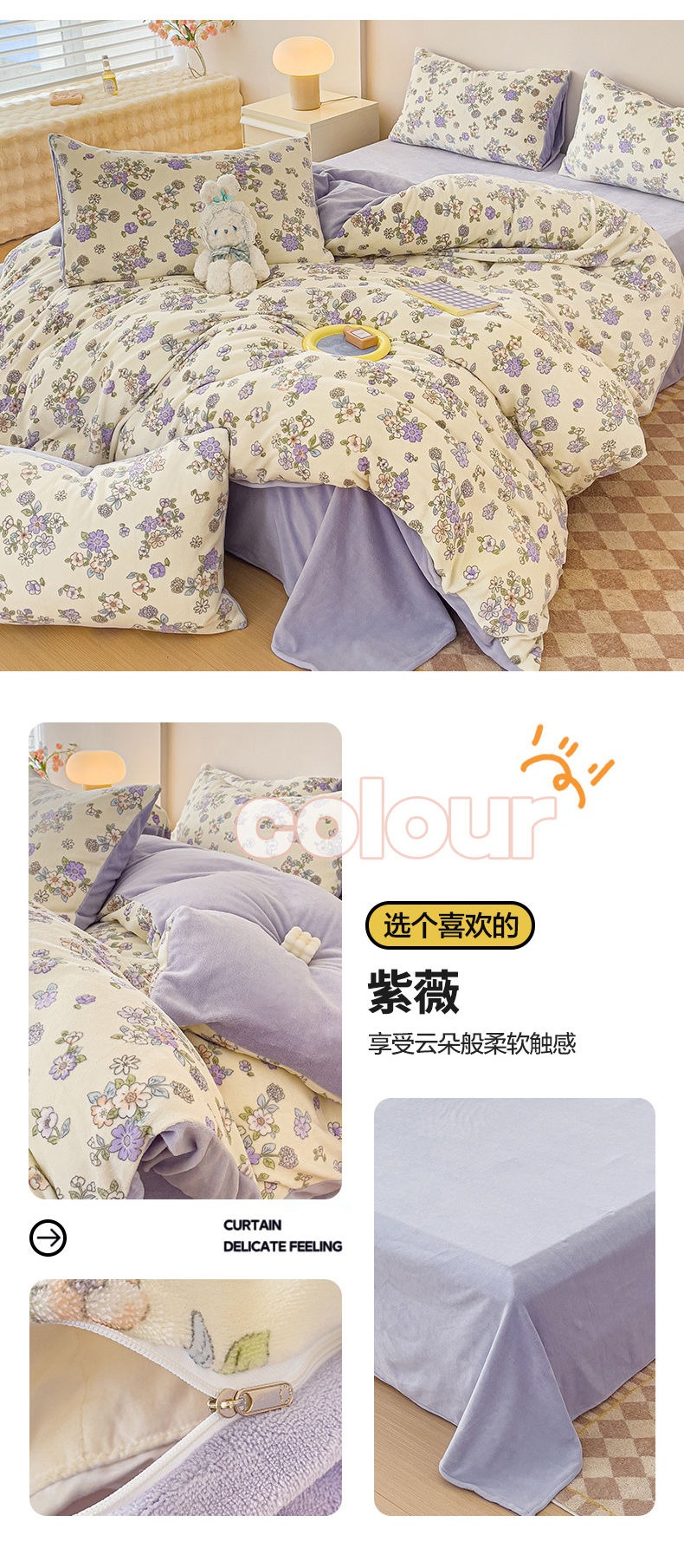 商品名称:木堇 2023新款印花牛奶绒四件套 紫薇