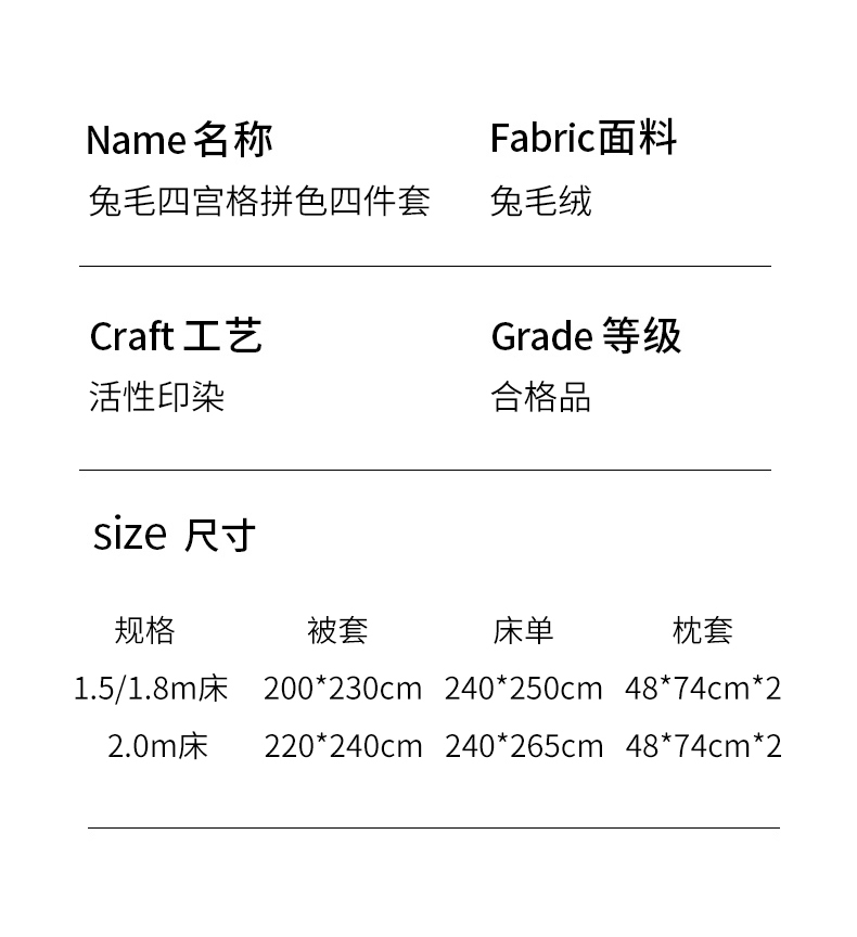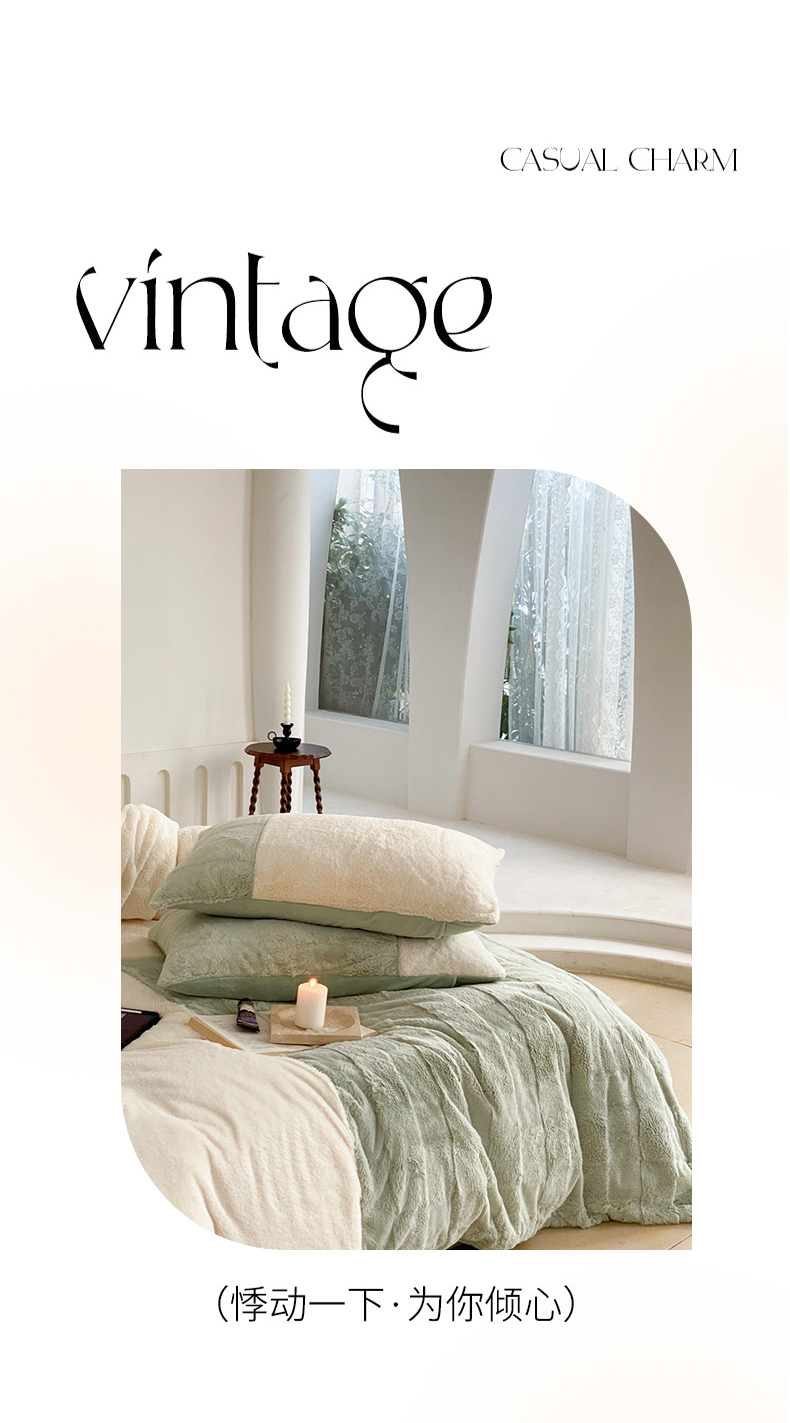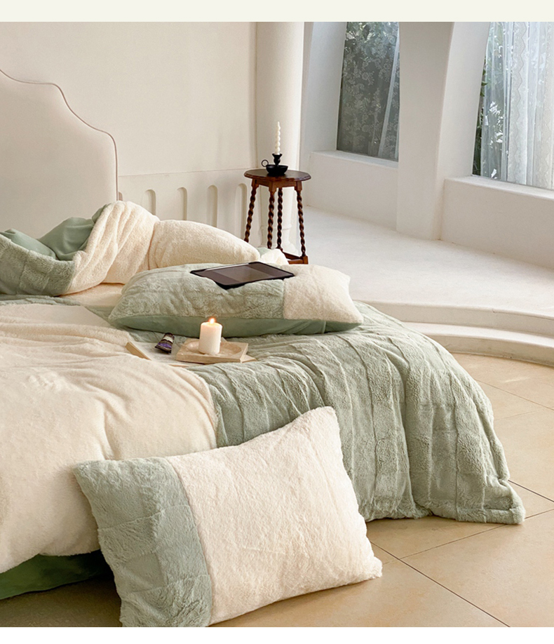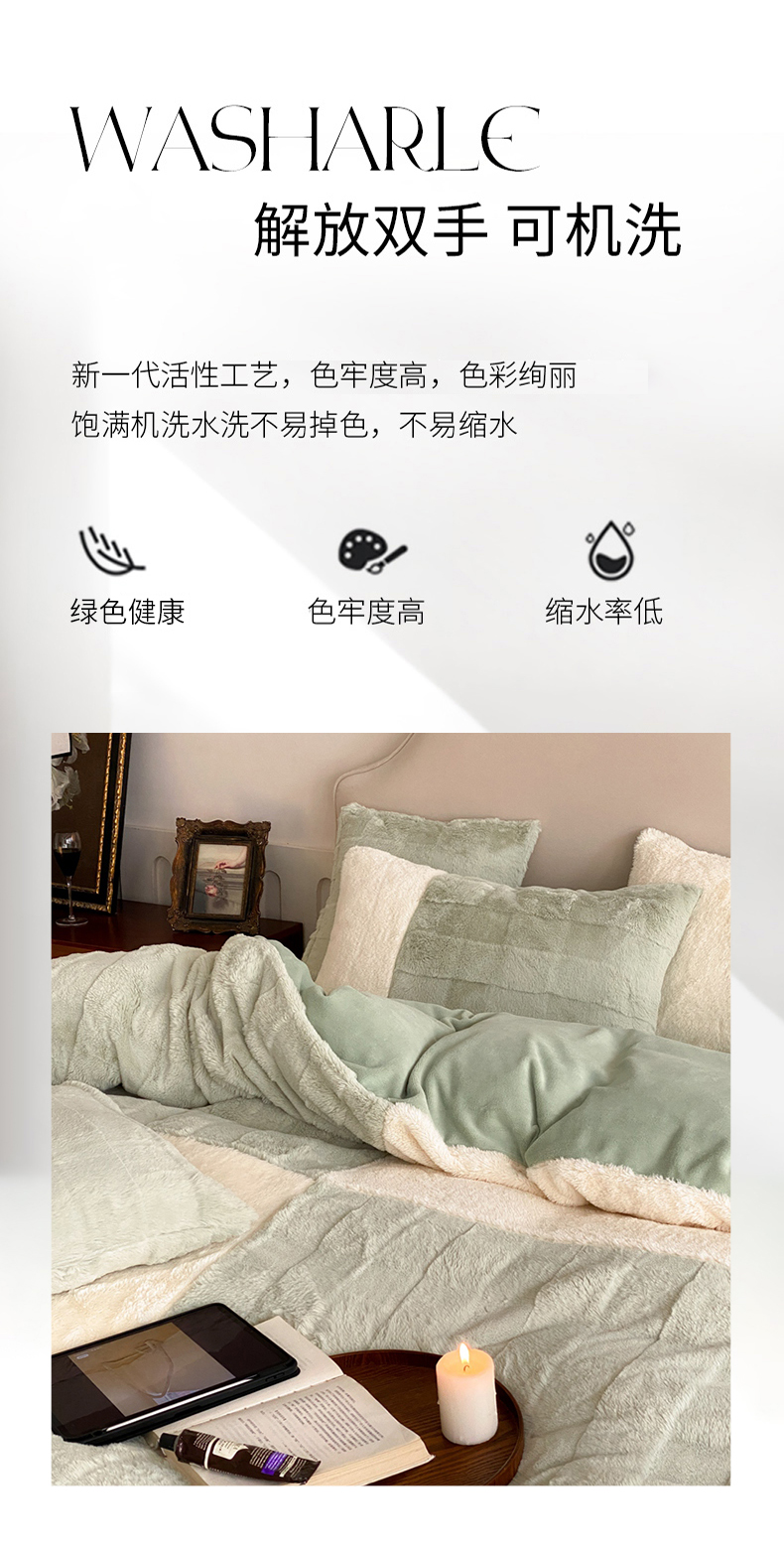商品名称:潘朵拉 2023新款兔毛四宫格极有家小红书风格拼色牛奶绒四件套 梵希(绿)