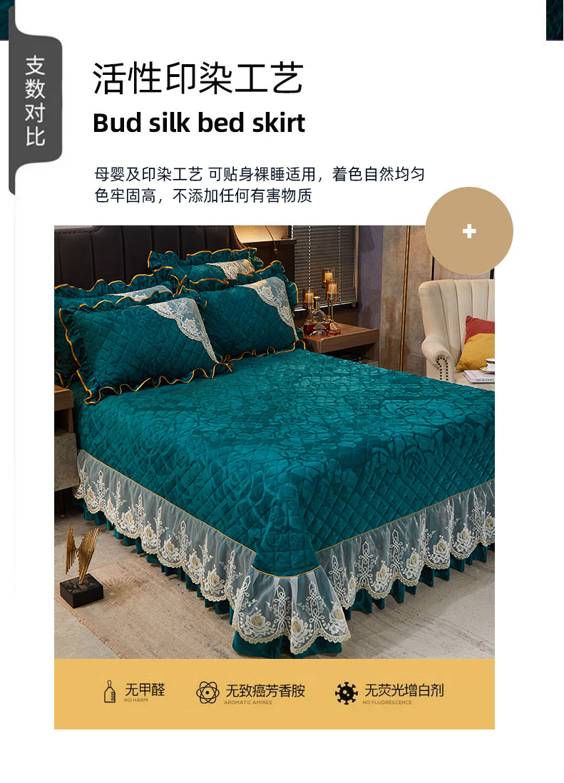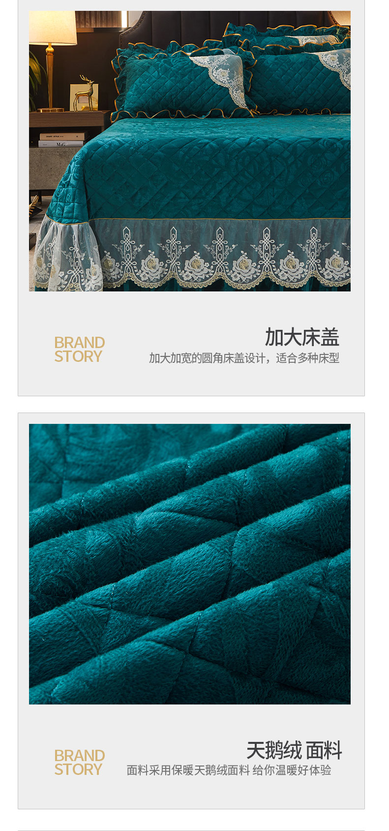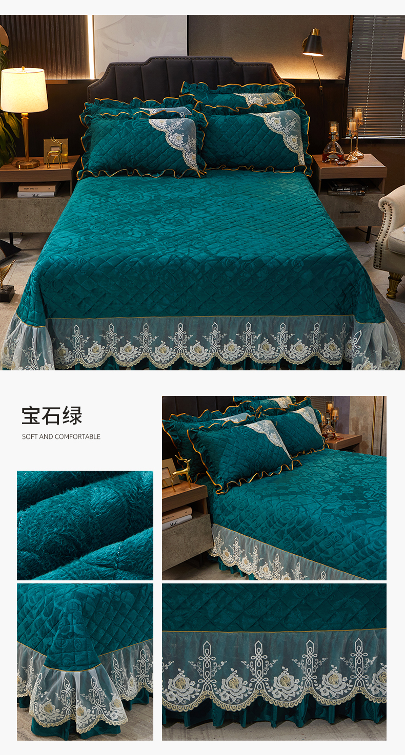商品名称:恋尚 2023新款天鹅绒可脱卸夹棉床盖 宝石绿