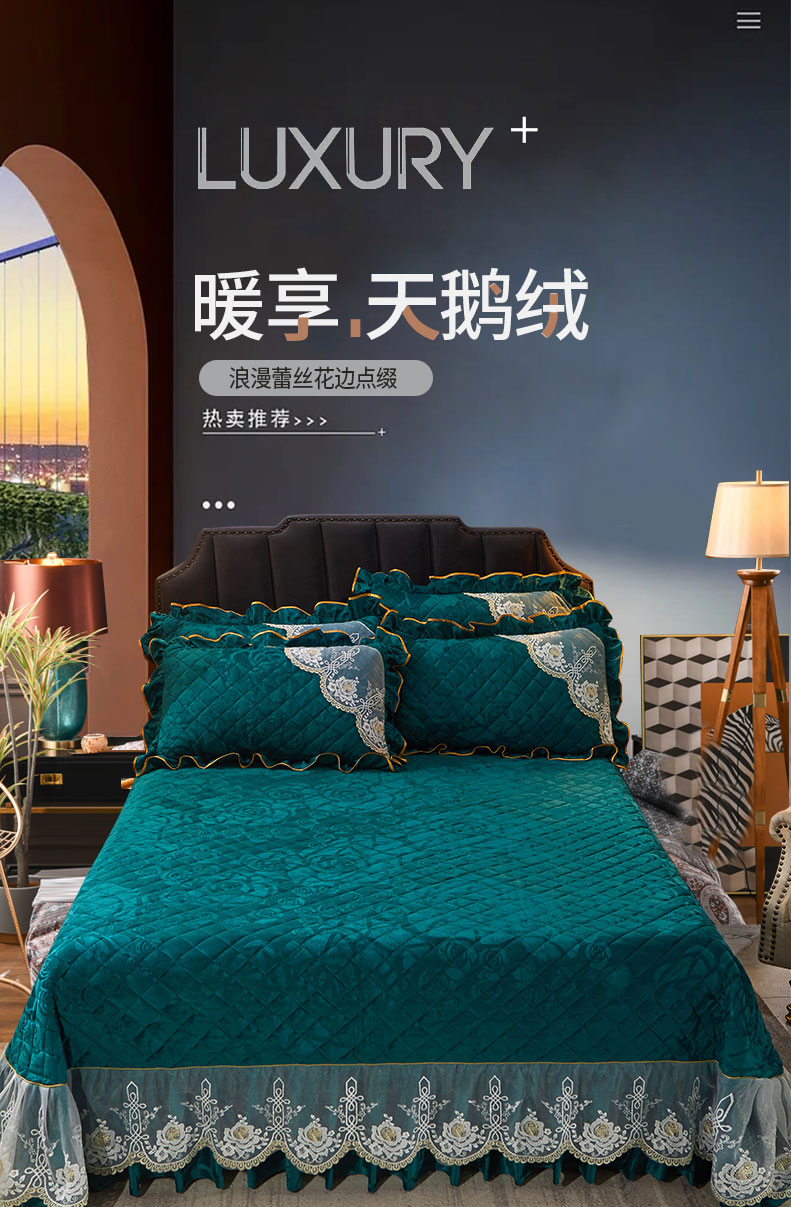 恋尚 2023新款天鹅绒可脱卸夹棉床盖 宝石绿