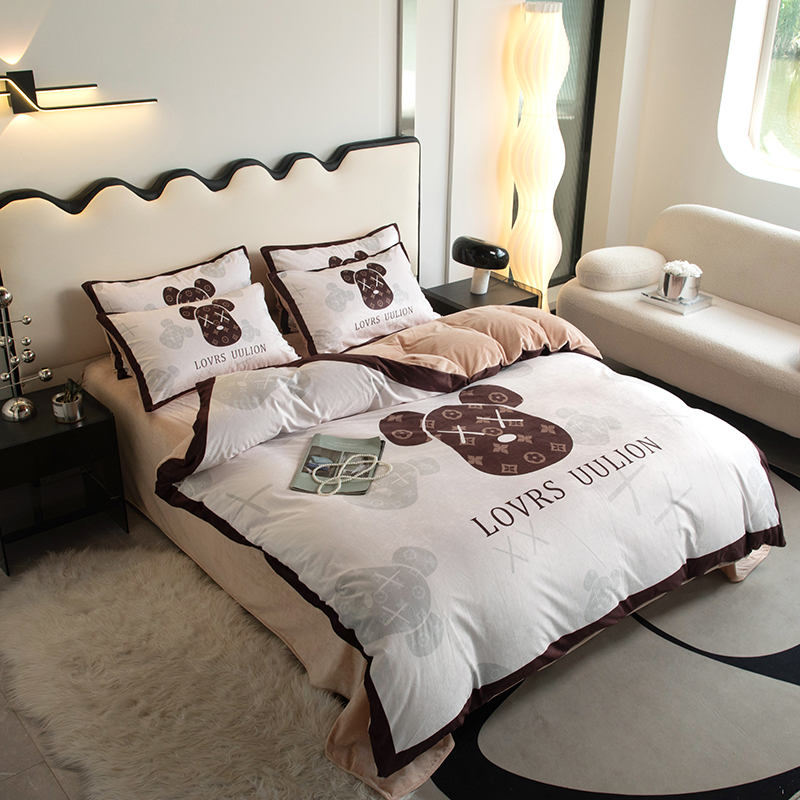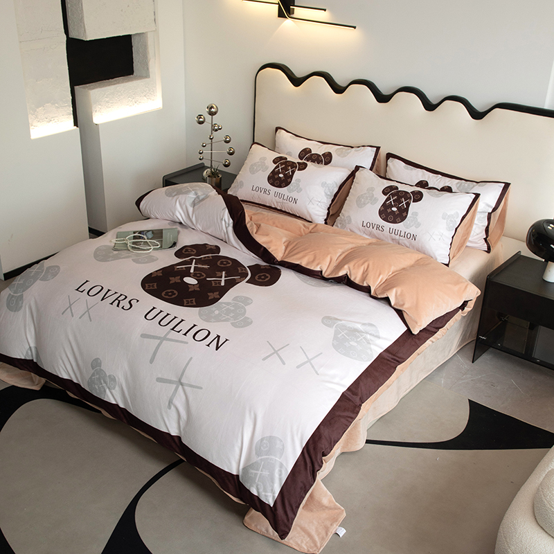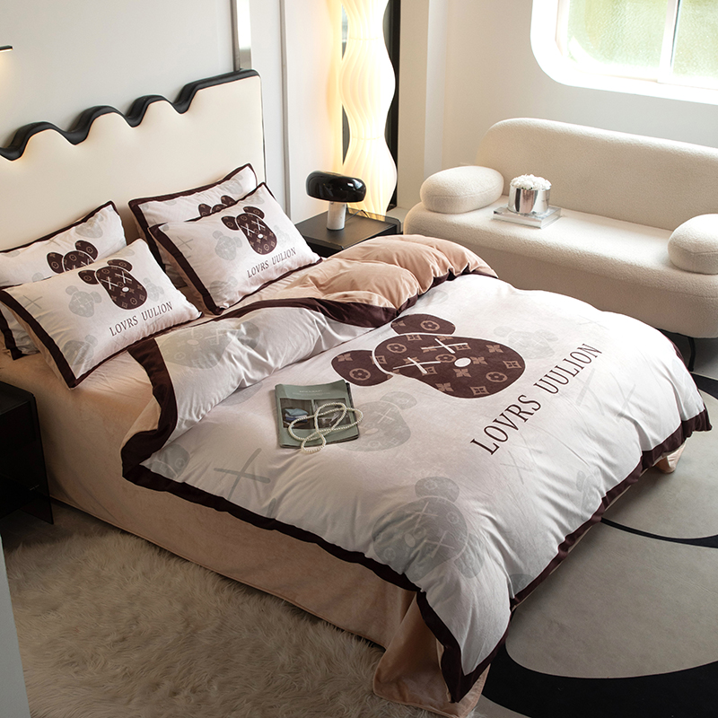 当前位置: 91家纺网 > 商品网购 > 床品套件 > 四件套 > 宝宝绒四件套 > 色鬼 2023新款网红款潮牌婴儿绒宝宝绒印花牛奶绒四件套 熊头咖