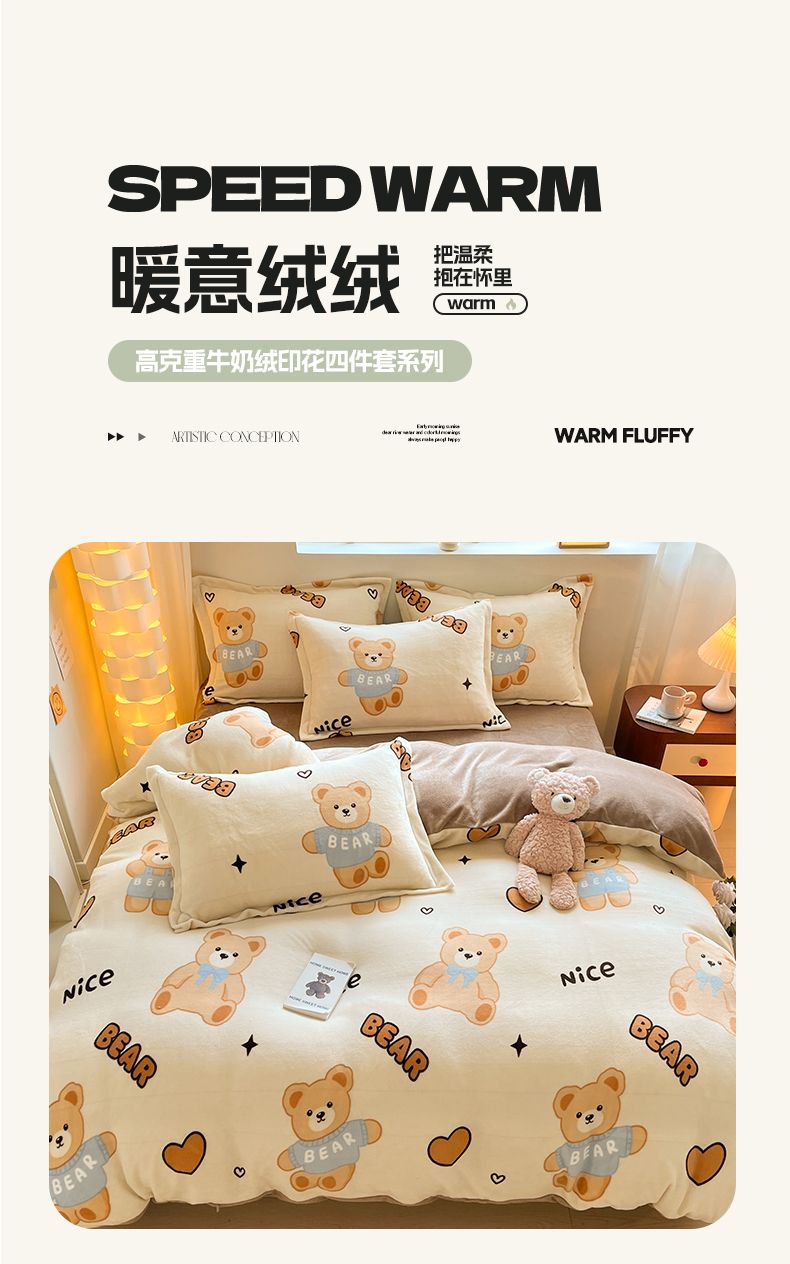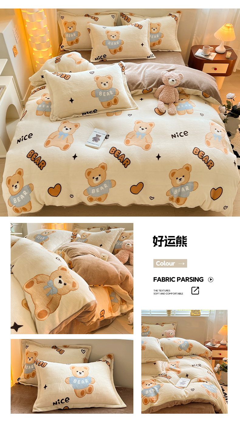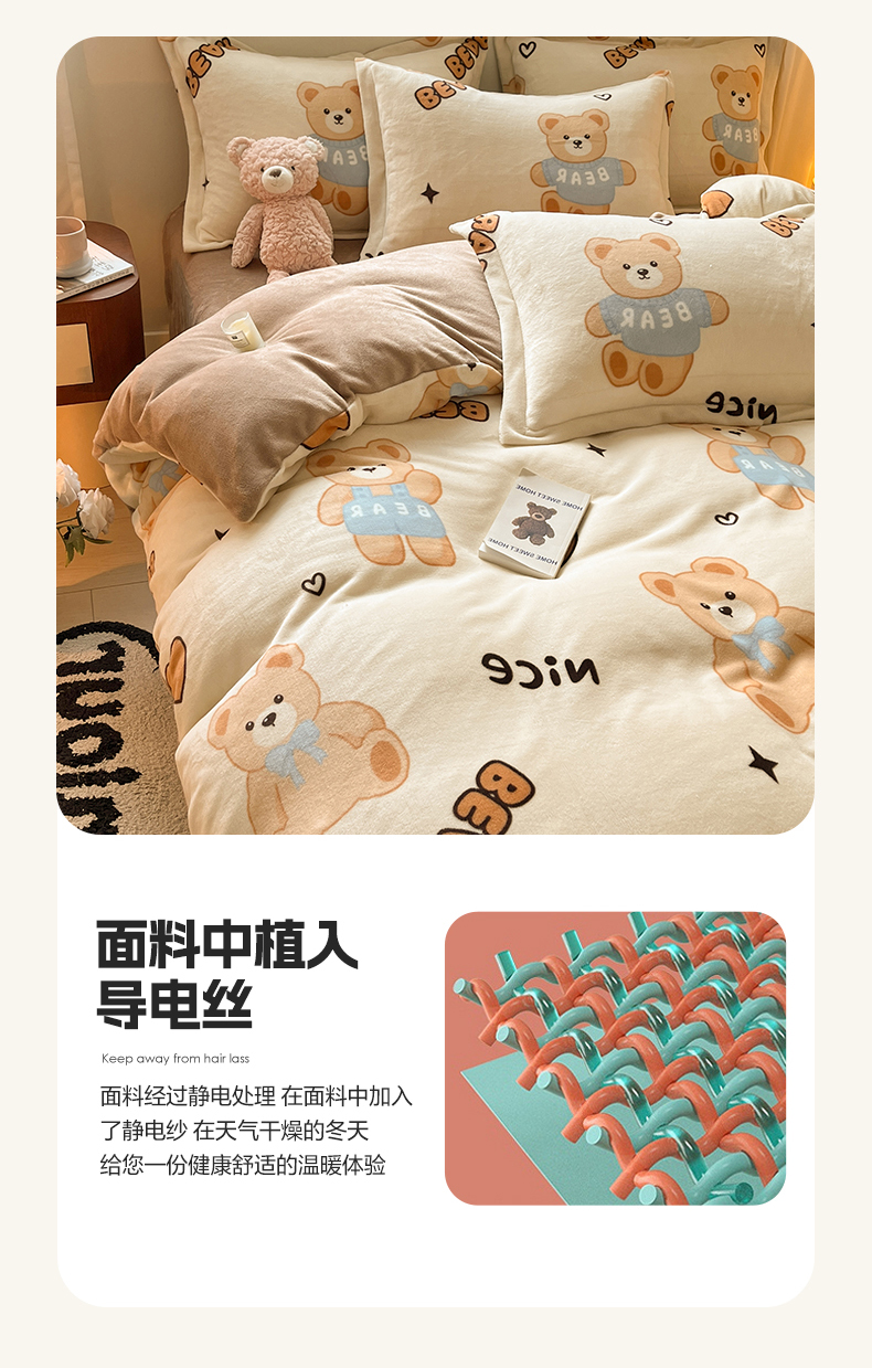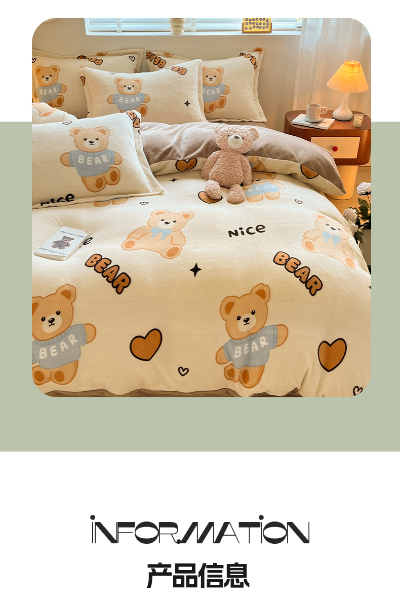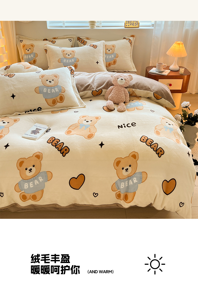 当前位置: 91家纺网 > 商品网购 > 床品套件 > 四件套 > 牛奶绒四件套 > 逸尚阁 2024新款高克重牛奶绒印花四件套(包含买家秀) 可爱熊