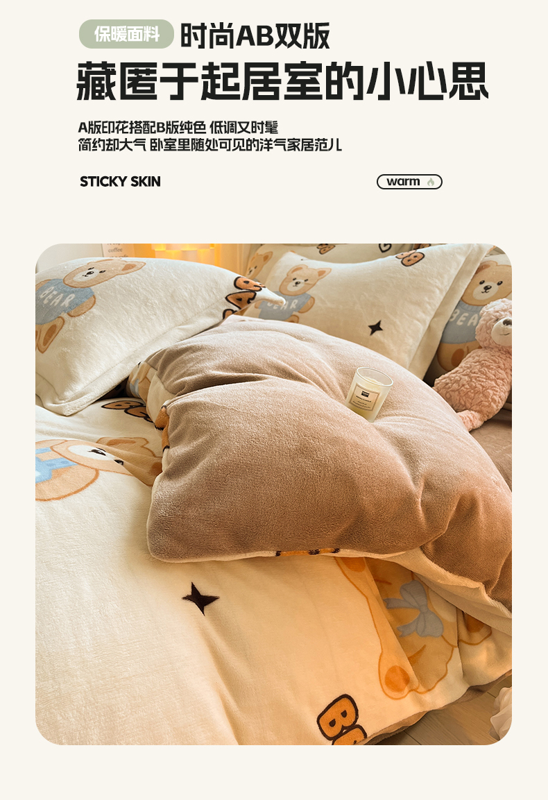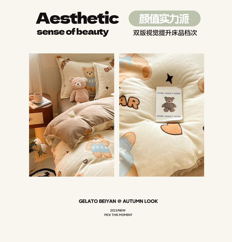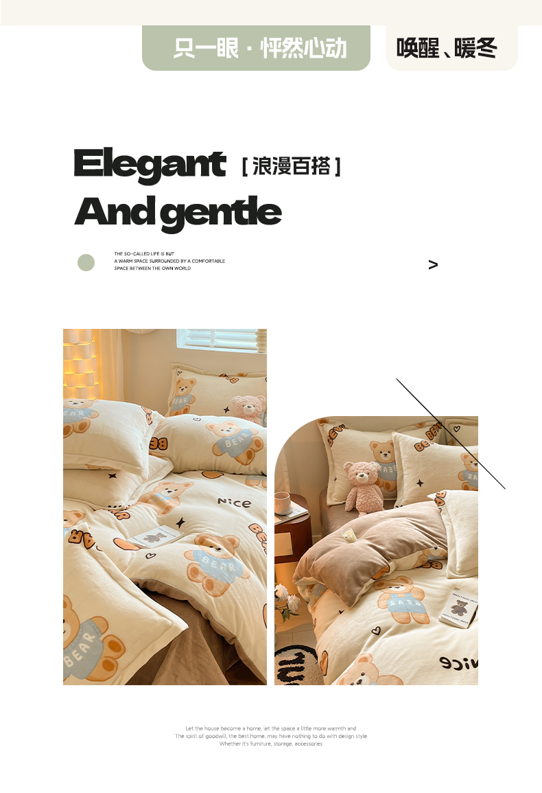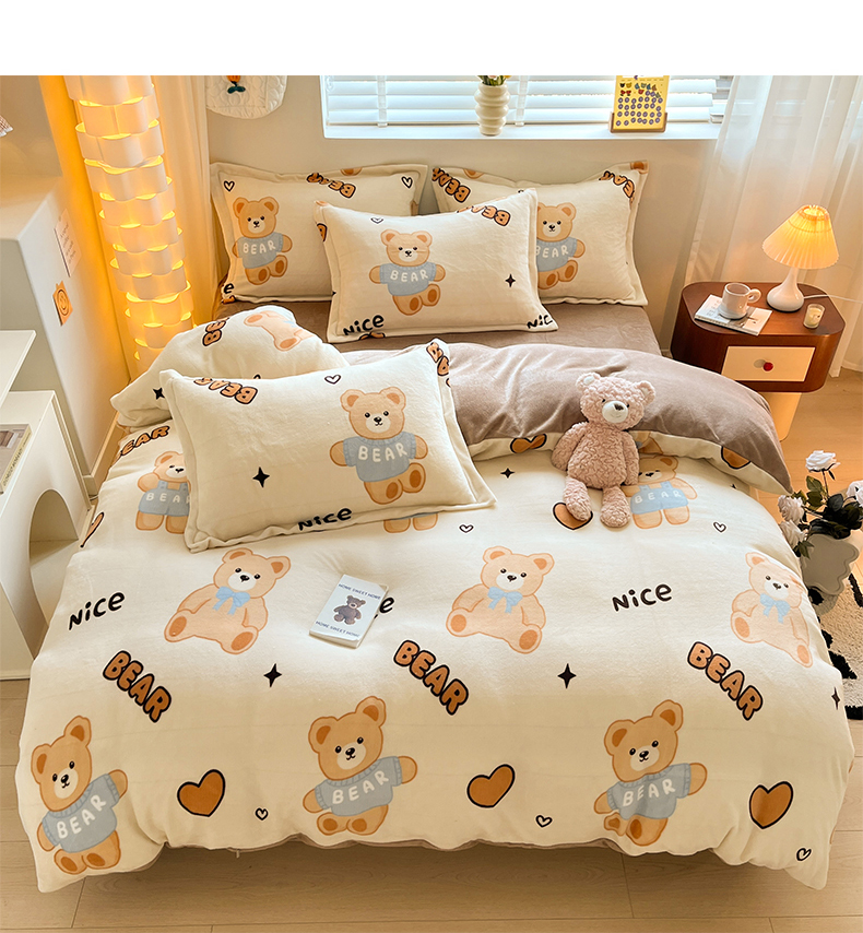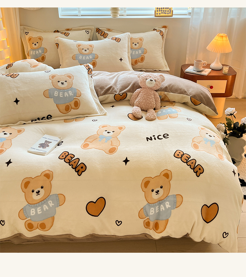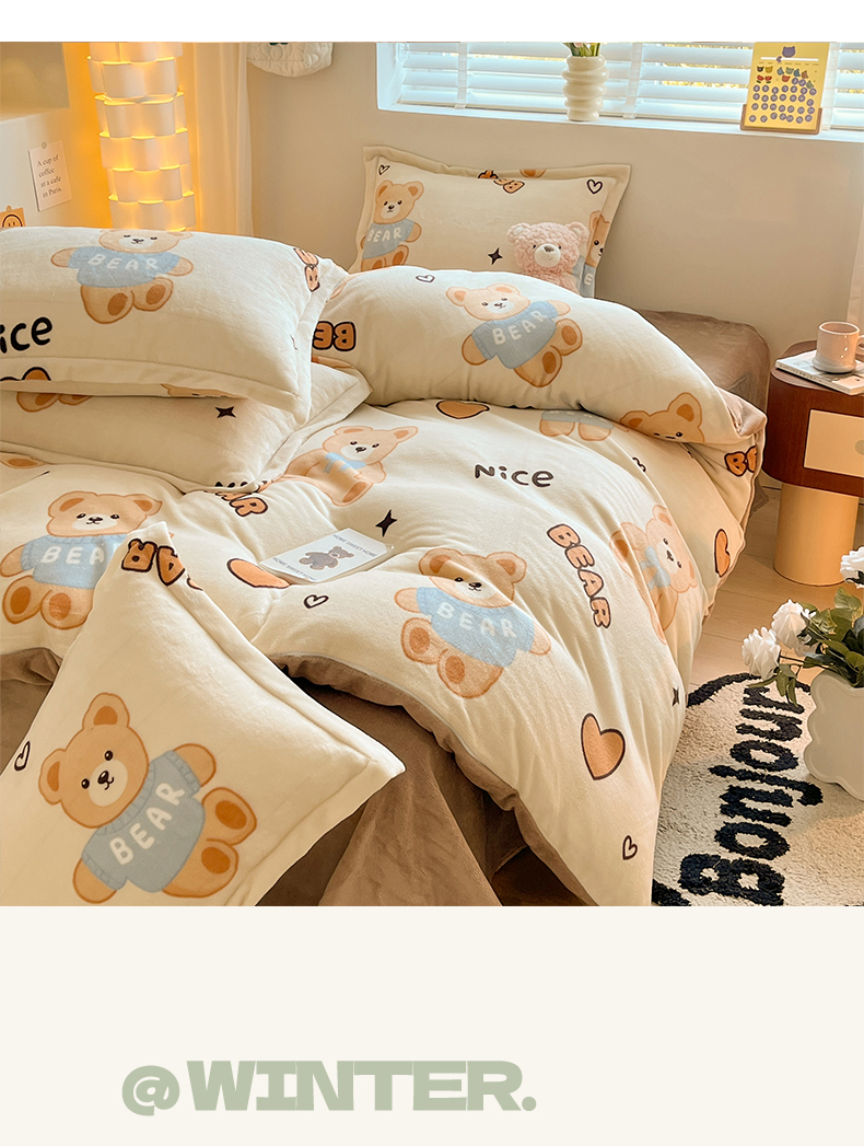 当前位置: 91家纺网 > 商品网购 > 床品套件 > 四件套 > 牛奶绒四件套 > 逸尚阁 2024新款高克重牛奶绒印花四件套(包含买家秀) 可爱熊