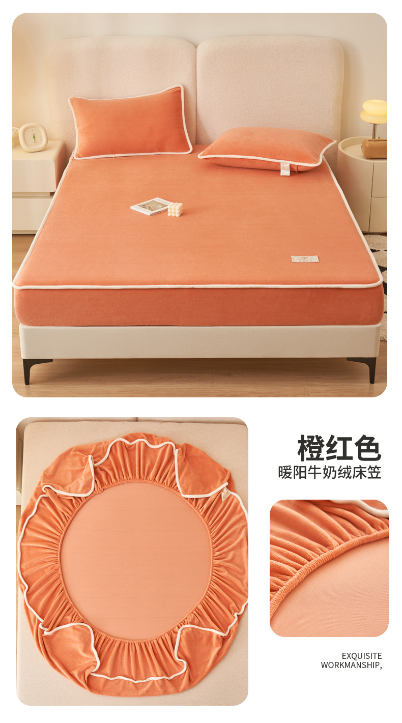 • 91家纺网 家纺一手货源 找家纺 21度C 2023新款加厚暖阳绒床笠 暖阳-橙红色