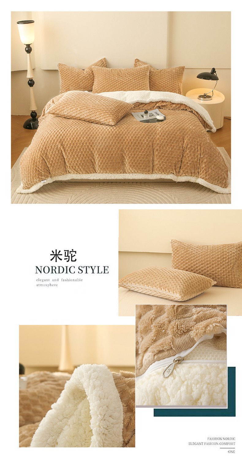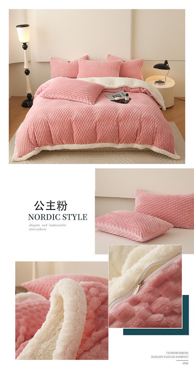 (总)网客家纺 2025新款羊毛绒牛奶绒夹棉床盖四件套,豹点-深灰,简格-黑色,简格-咖色,空间-红色,泥点-灰色,泥点-咖色,维奥-灰色,斜格-灰色,斜格-墨绿