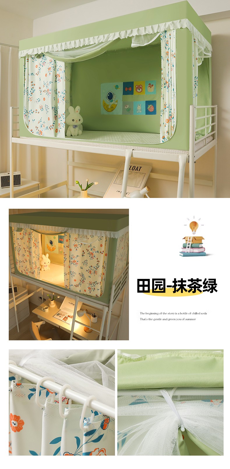 当前位置: 91家纺网 > 商品网购 > 床上用品 > 蚊帐 > 学生蚊帐 > 迷仙巢 2023新款99%加厚遮光布涂银强遮光三开门学生蚊帐 田园-抹茶绿