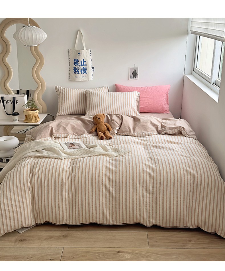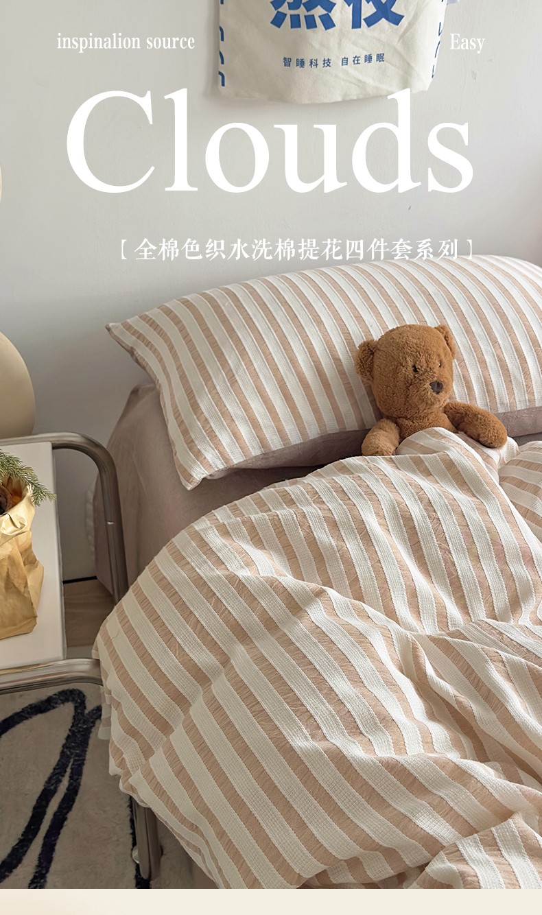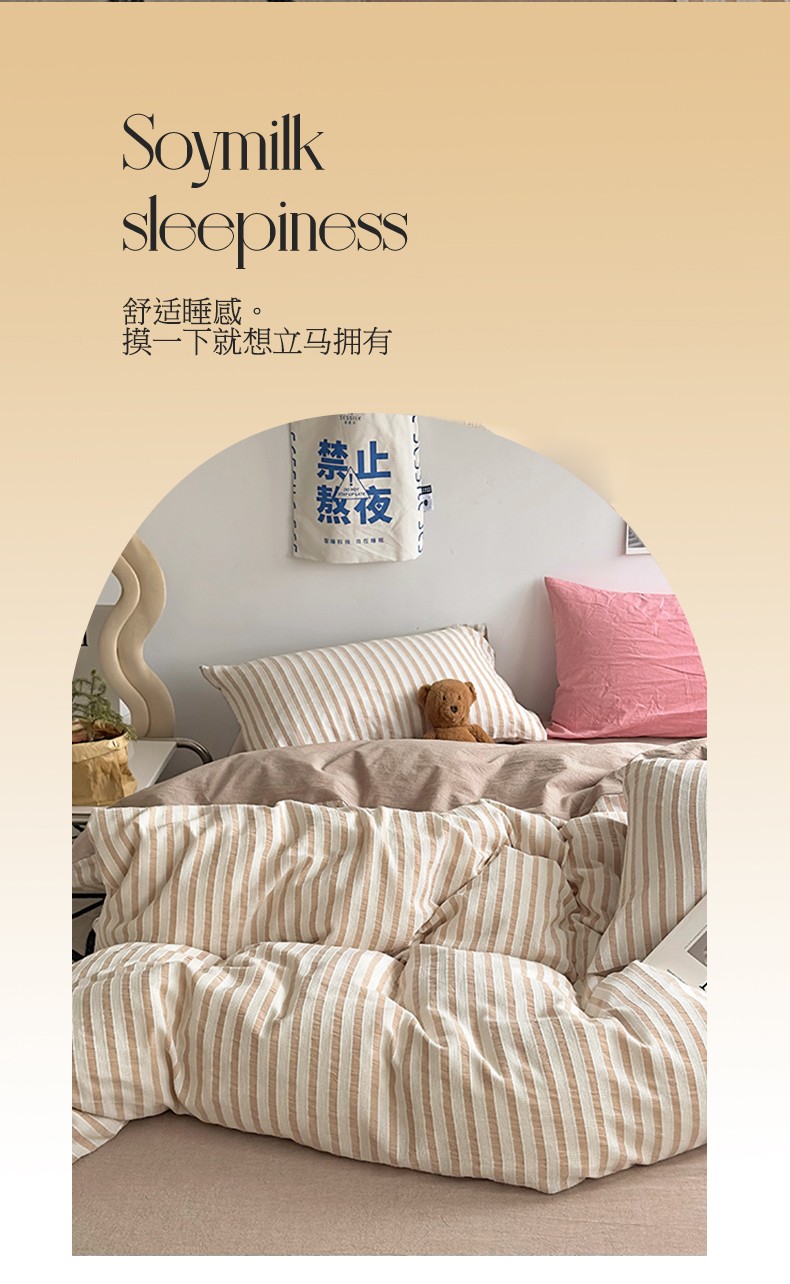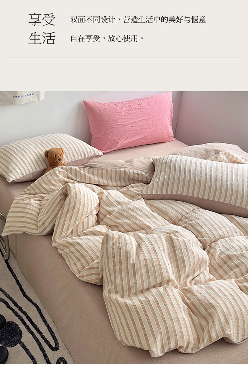 (总)2024秋冬新款A类简约日系全棉色织水洗棉纯棉四件套,粉密条,灰密条,绿密条,米密条,米雅,沐妍-粉,沐妍-黄,沐妍-灰,沐妍-绿,日落-粉,日落-灰,日落绿,中古绿条