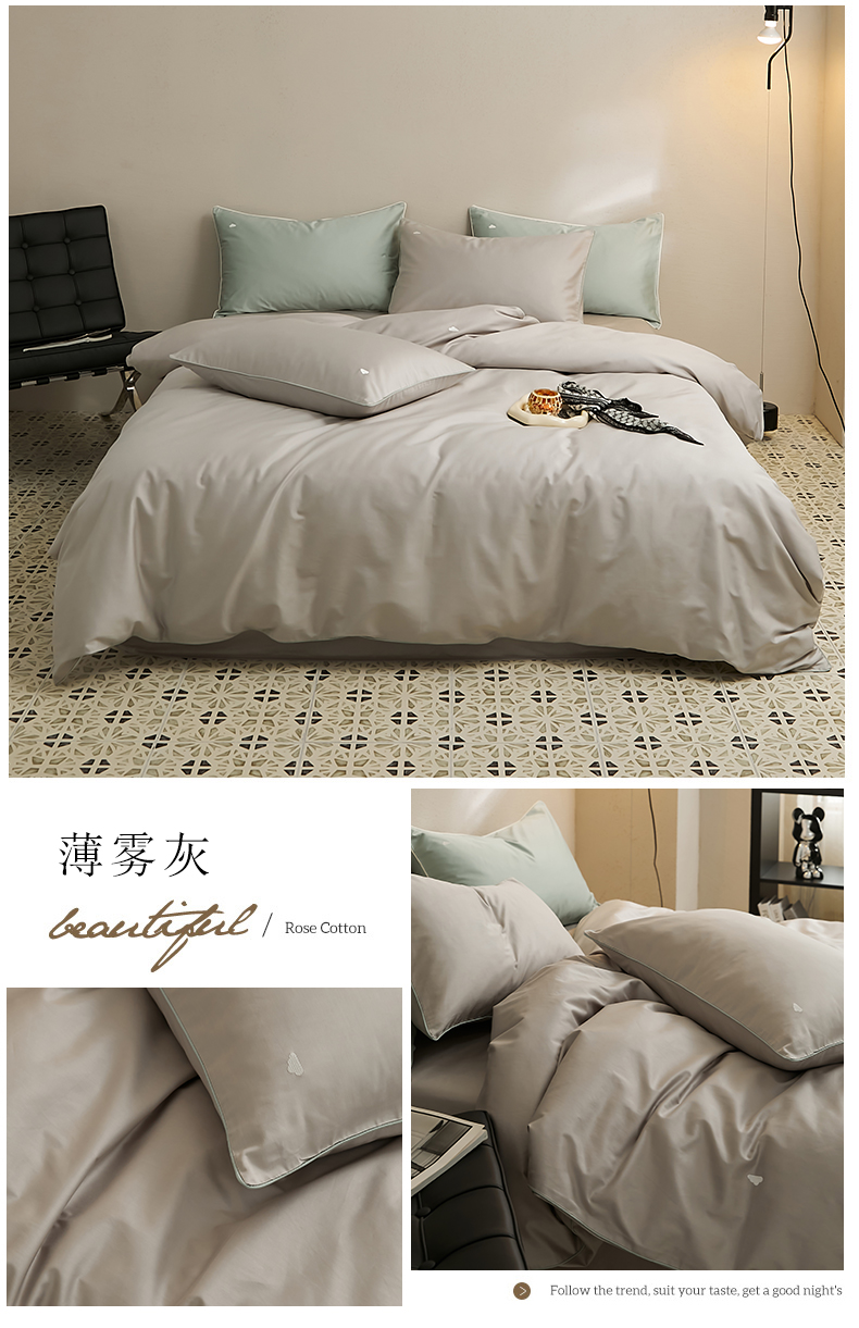 (总)EH家居2025新款50*50双股长绒棉纯棉系列被套单件-单被套,草籽灰,初雪咖,淡青色,黑加仑紫,梅子粉,暮色灰,清雅绿,仙草玉粉,组合图仅供展示