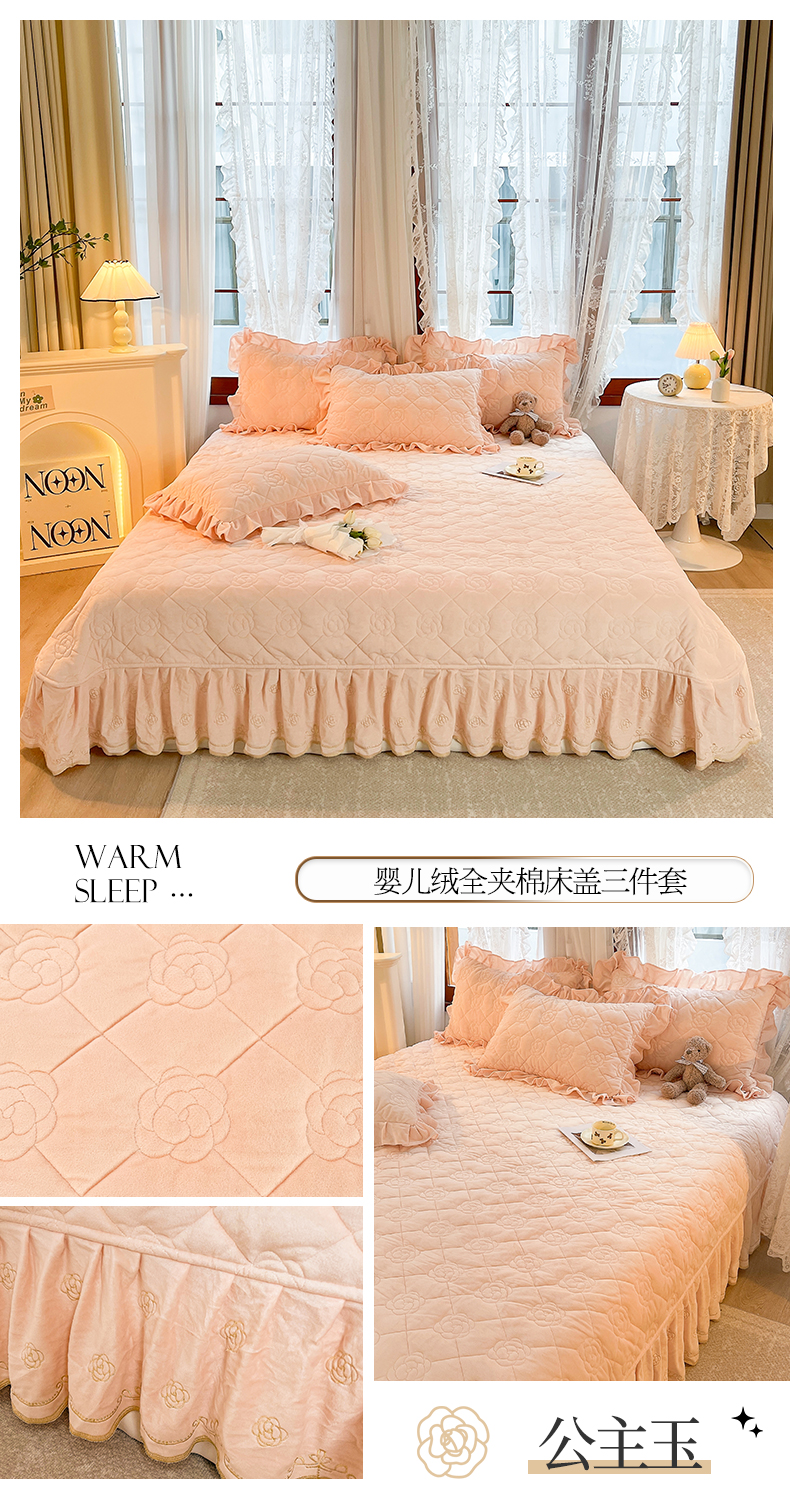商品名称:宜凡2023新款婴儿绒全夹棉床盖三件套 公主玉