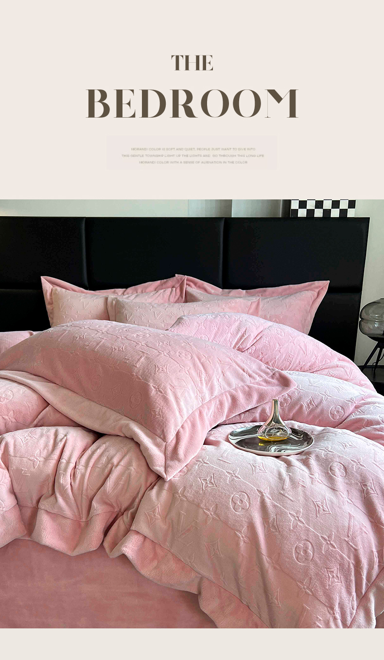 (总)佰亿莱 2024新款高克重雕花牛奶绒轻奢拼角四件套,红棕,鎏金,墨绿,暖粉,叶青,幽蓝