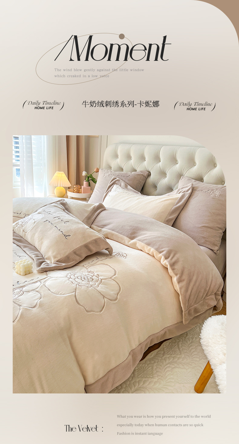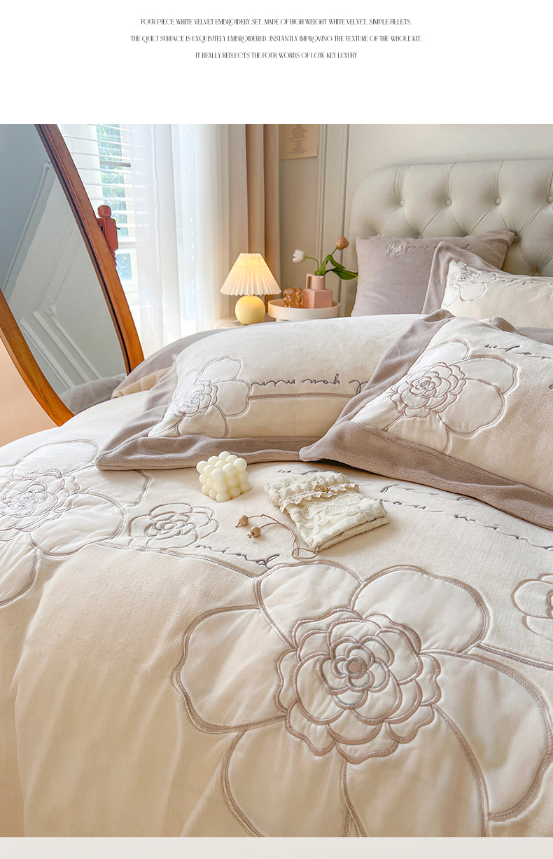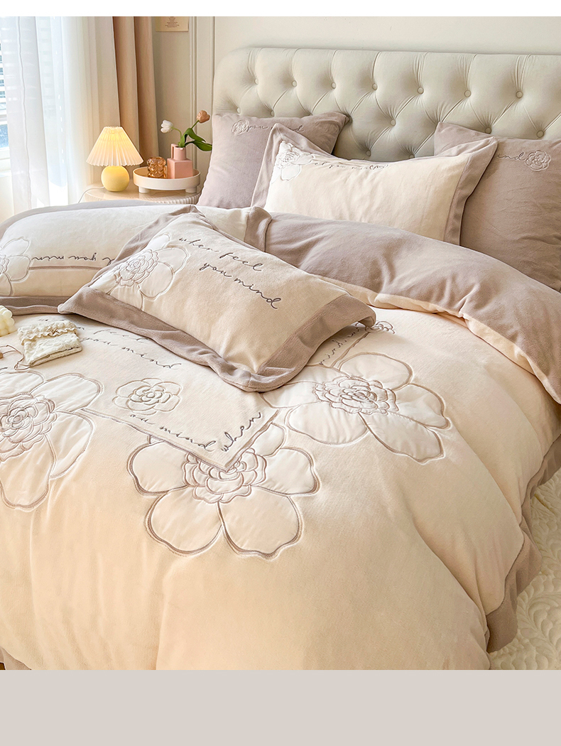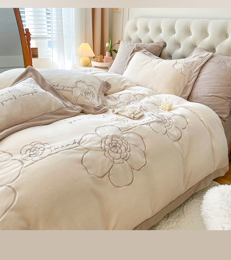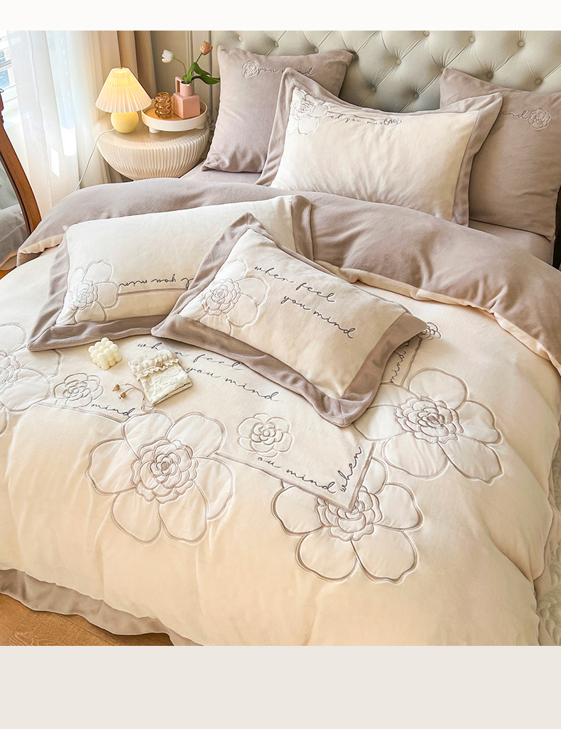 当前位置: 91家纺网 > 商品网购 > 床品套件 > 四件套 > 牛奶绒四件套 > (总)佰亿莱 2024新款牛奶绒刺绣四件套-卡妮娜