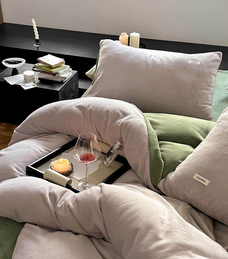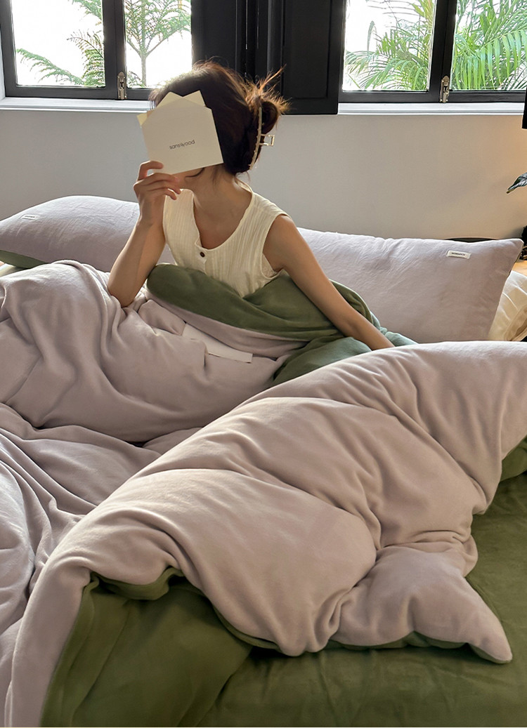 当前位置: 91家纺网 > 商品网购 > 床品套件 > 四件套 > 牛奶绒四件套 > 时光里 2023新款双拼牛奶绒四件套星际灰拼橄榄绿