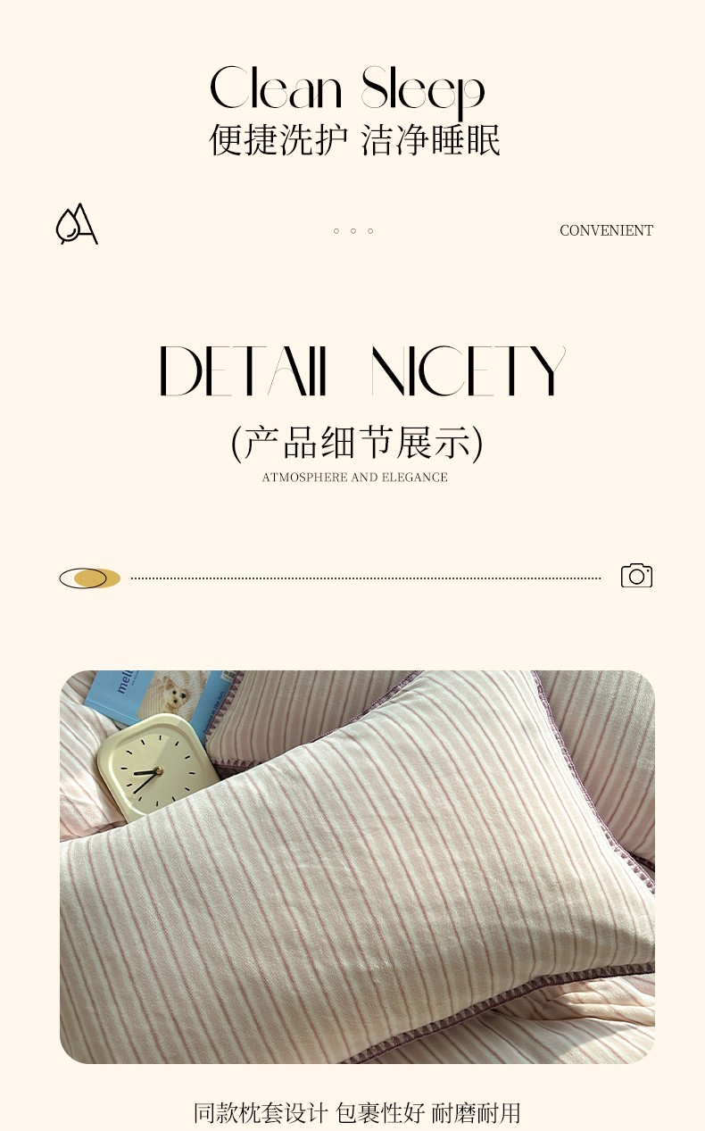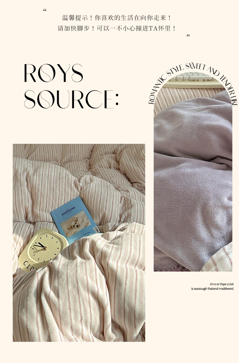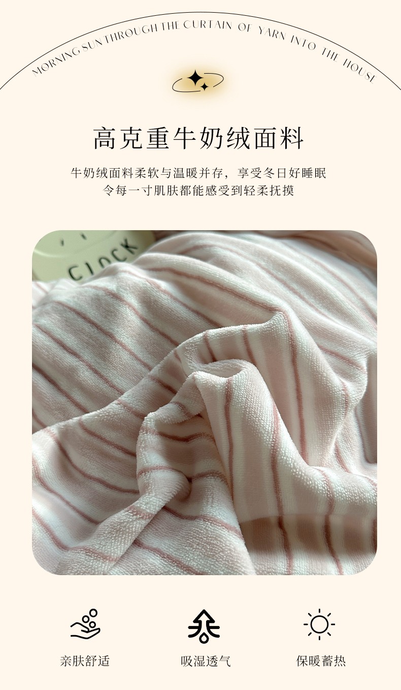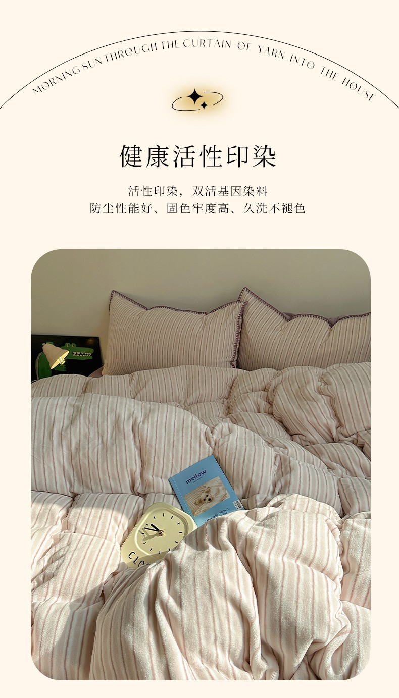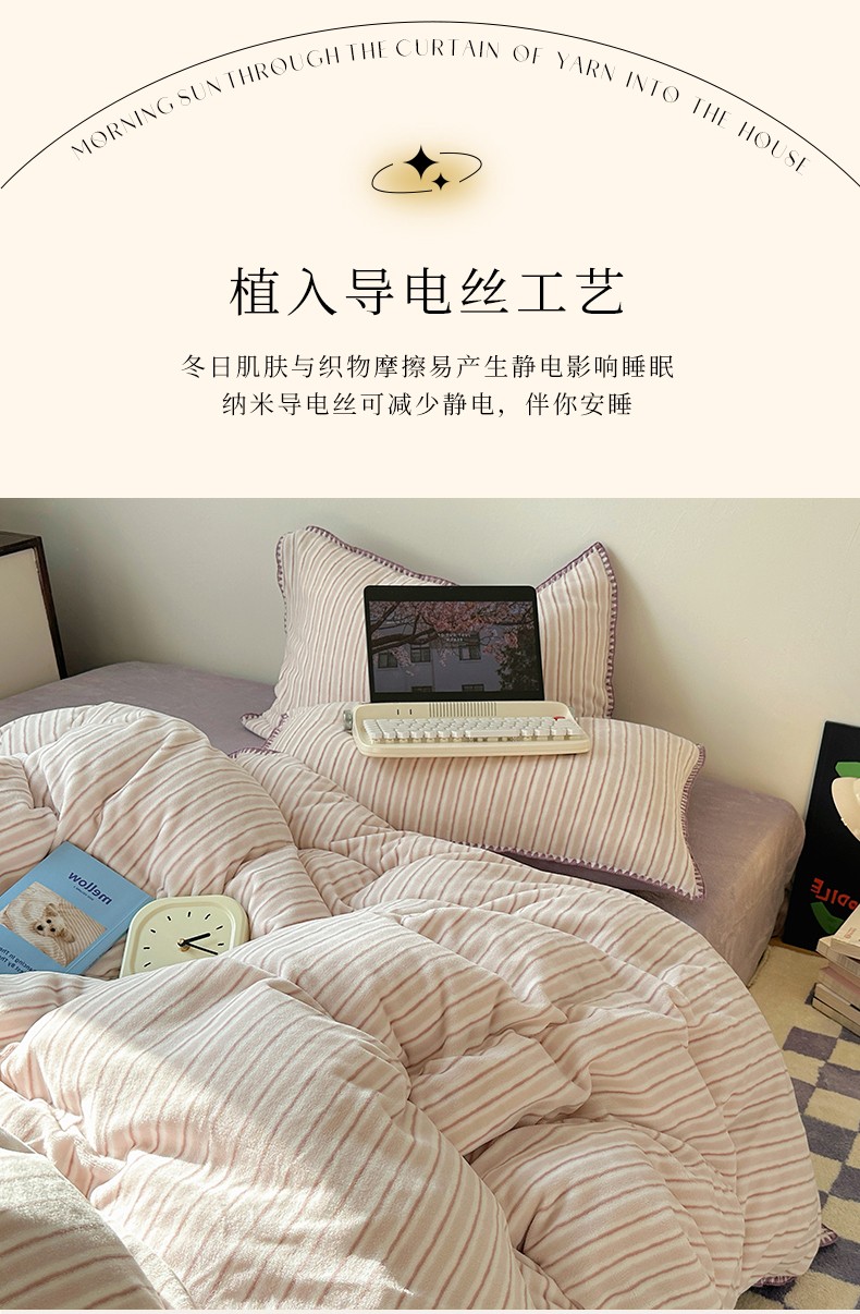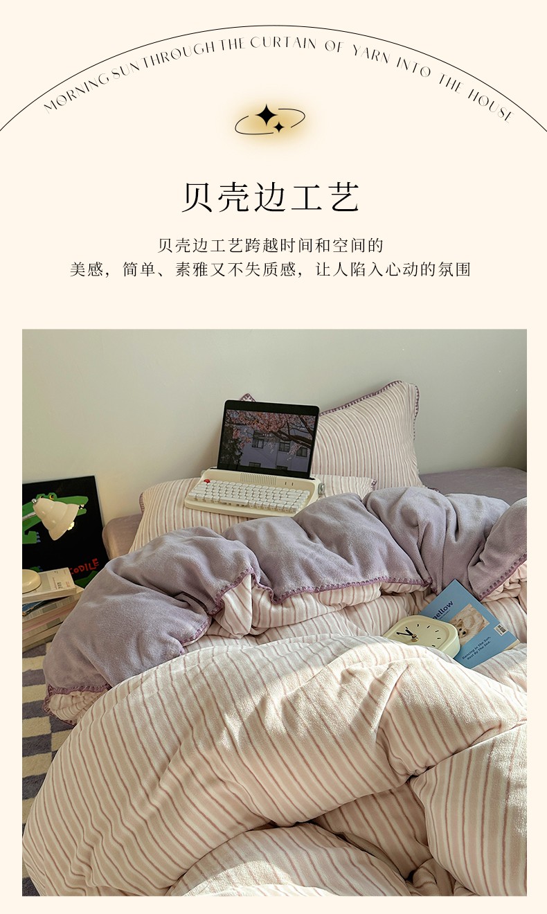 商品名称:三朵 2023新款无印风牛奶绒四件套 香芋紫小条