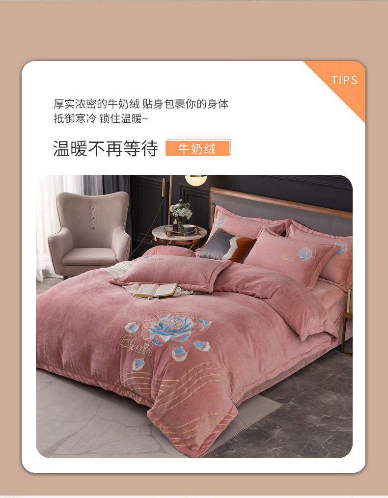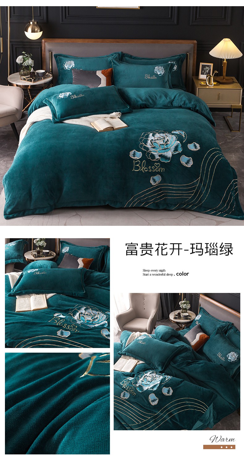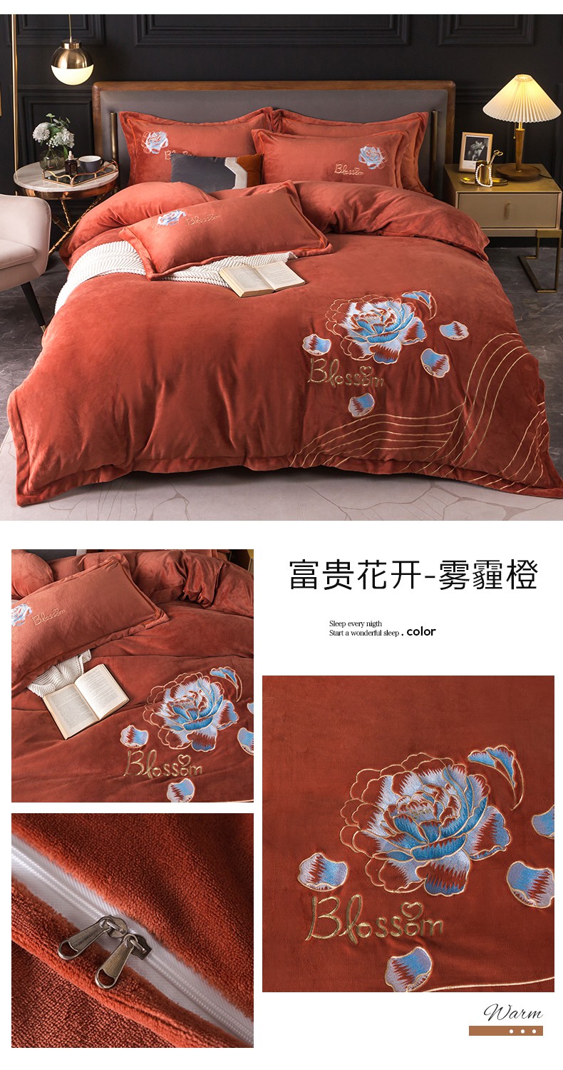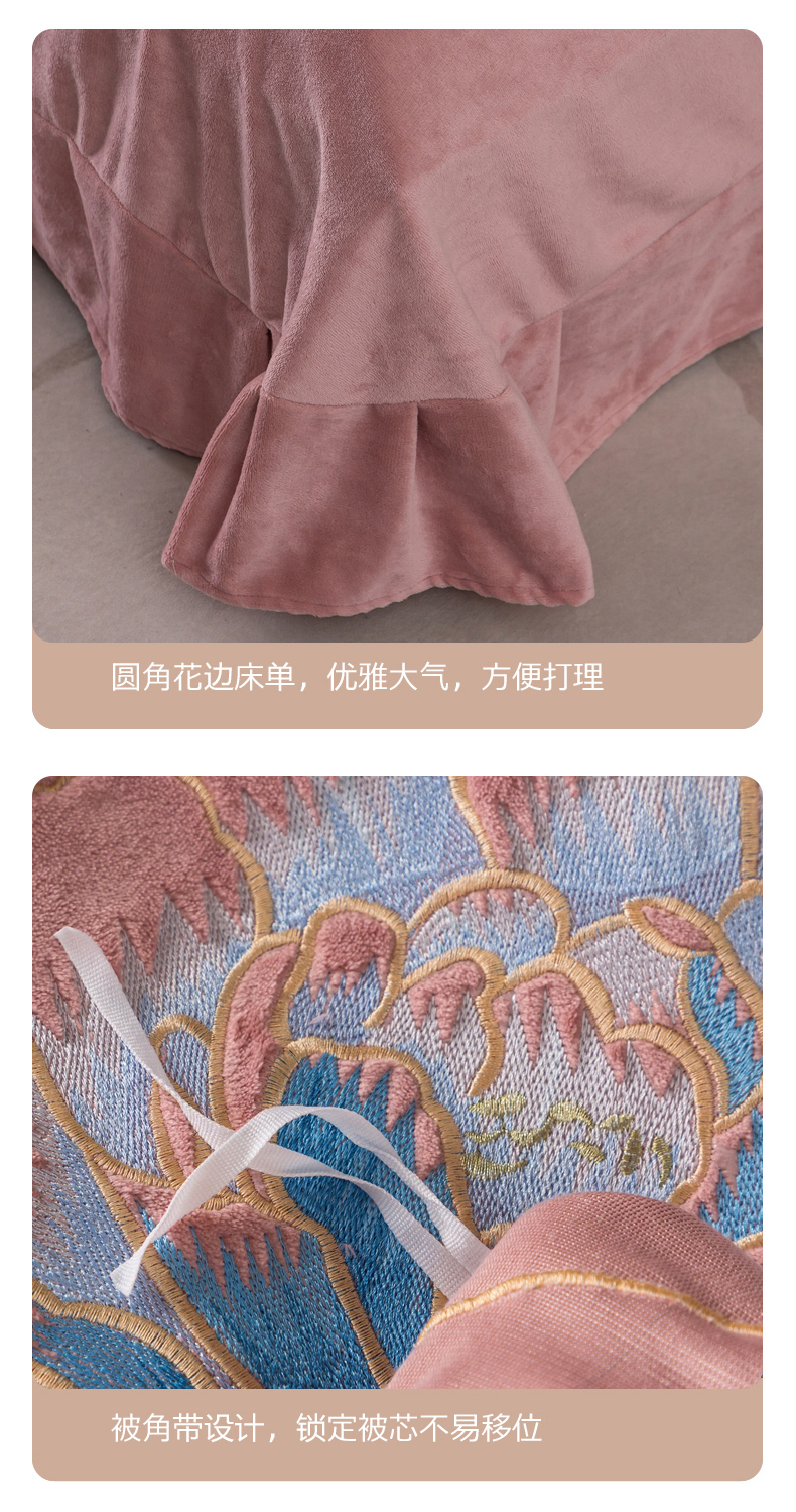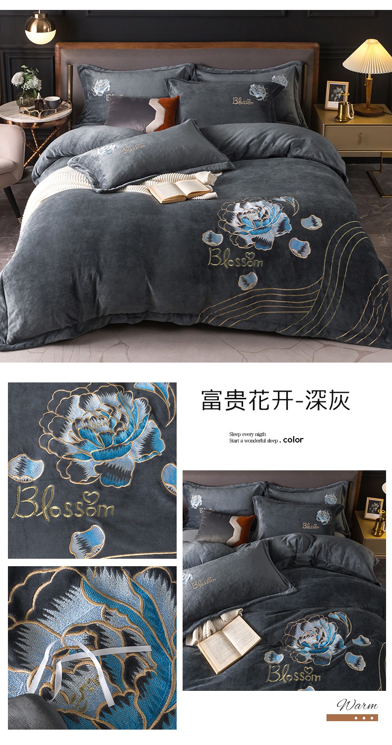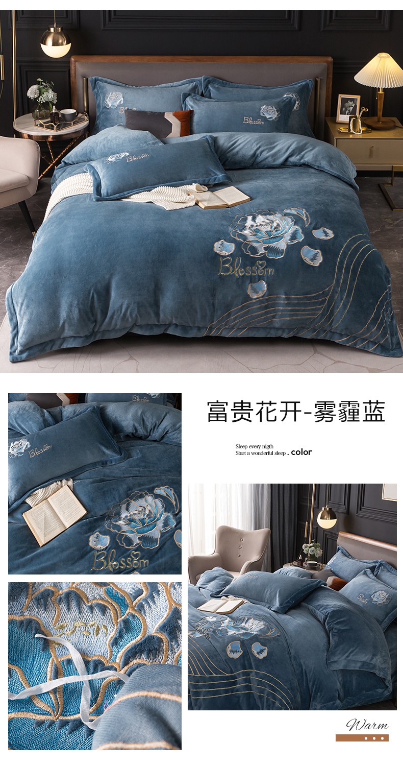 商品名称:(总)找底底家纺 2023款9斤全消光9斤重工刺绣纯色牛奶绒四件套-富贵花开