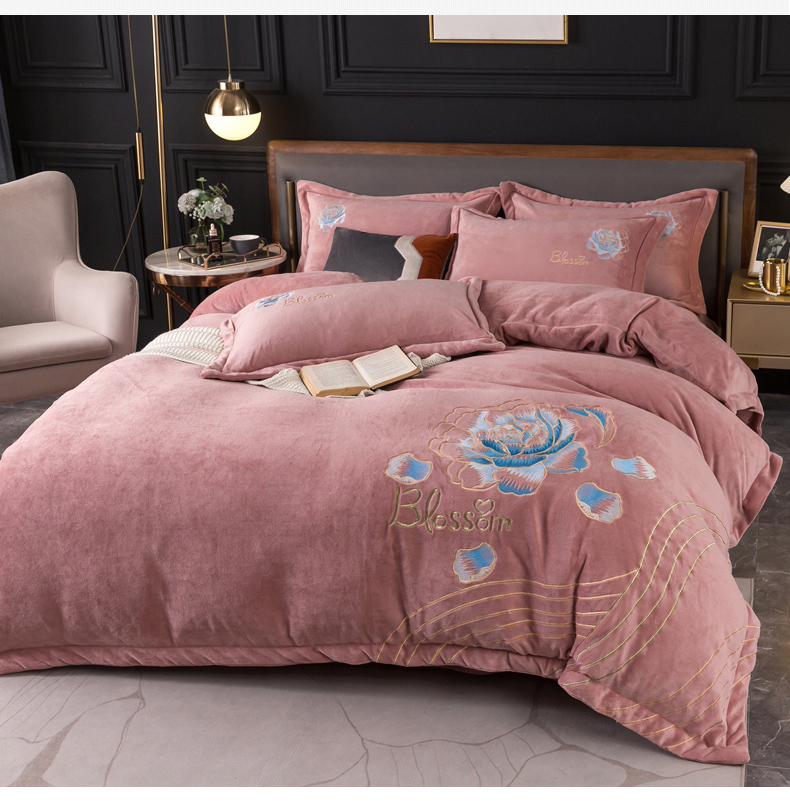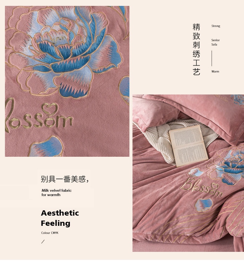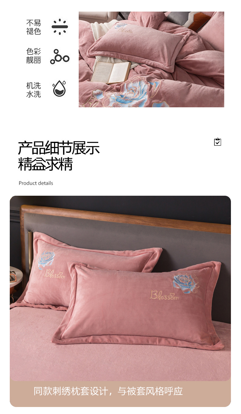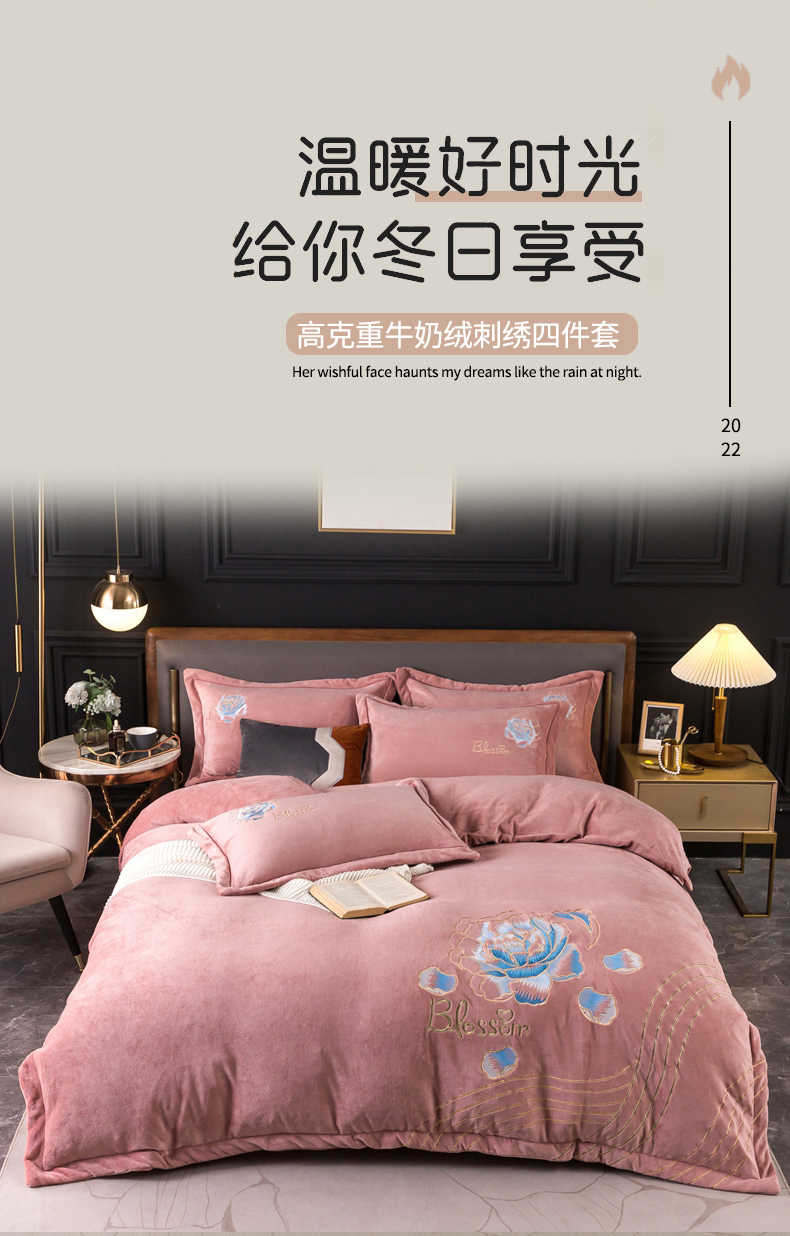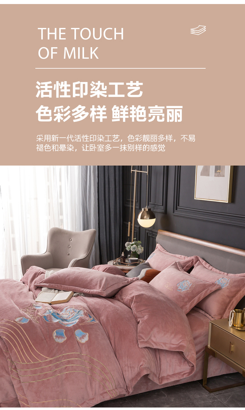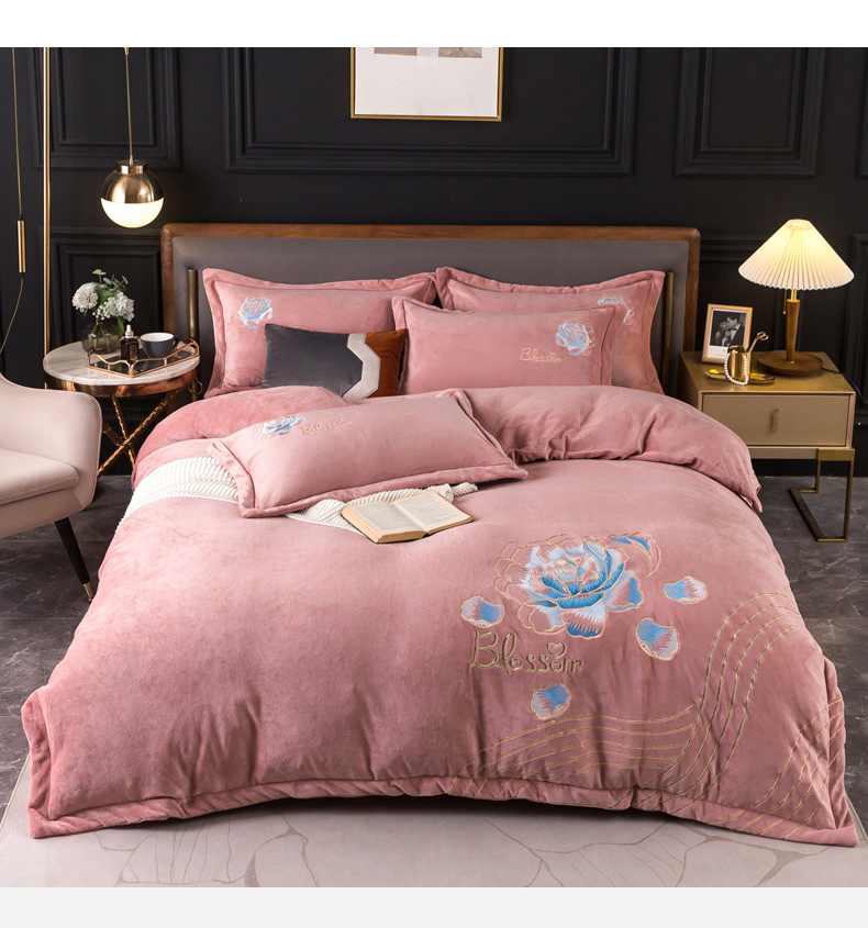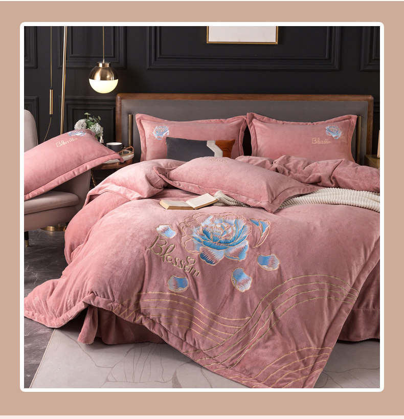 商品名称:(总)找底底家纺 2023款9斤全消光9斤重工刺绣纯色牛奶绒四件套-富贵花开