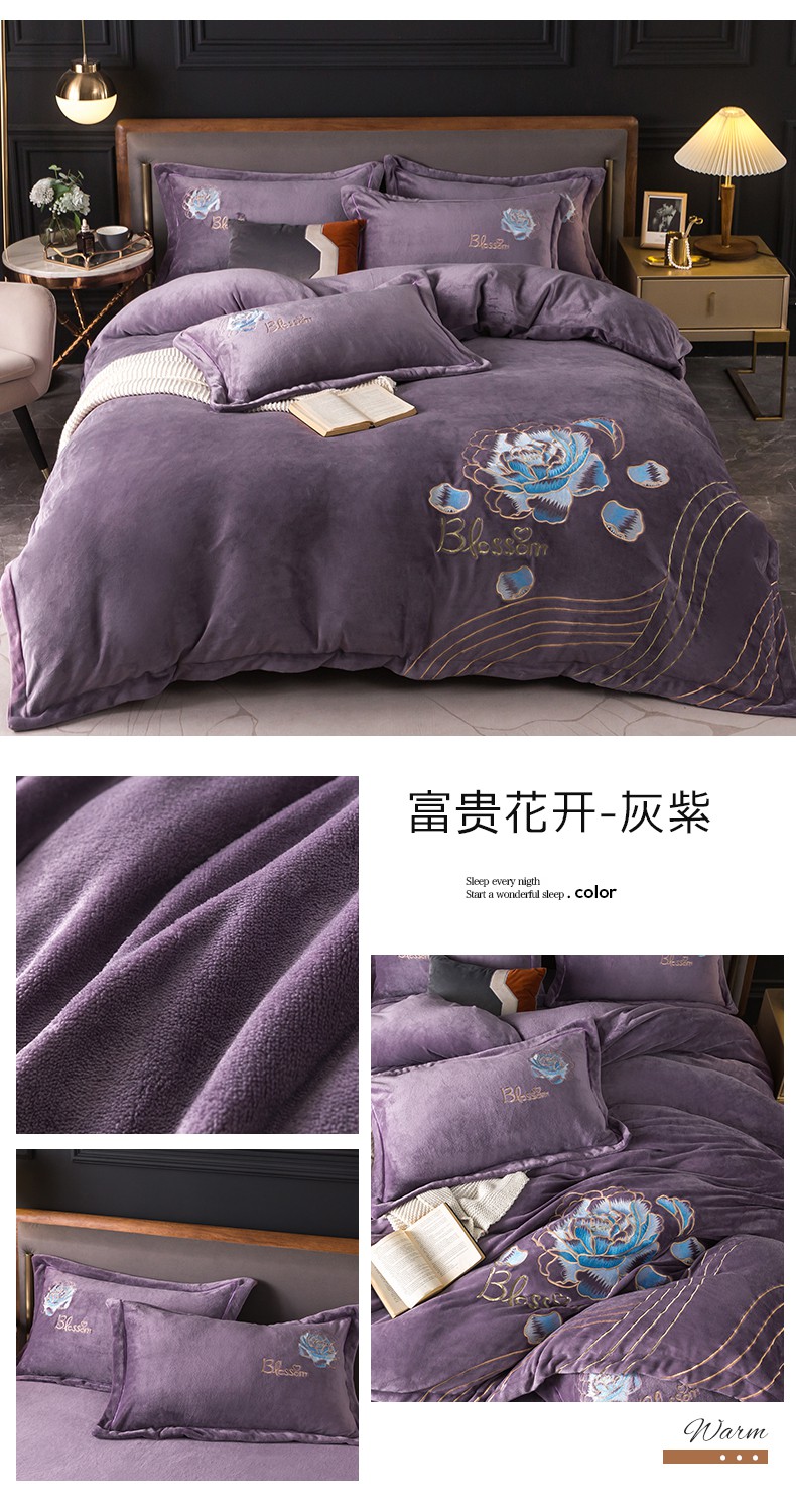 (总)找底底家纺 2024新款加厚高克重14斤牛奶绒床盖四件套满版刺绣纯色牛奶绒床盖四件套(有量有价,提供买家秀),1加厚雾紫色,2加厚宝蓝色,3加厚珐琅绿,4加厚咖色,5加厚橘橙色,6加厚豆沙色,7加厚浅紫色,8奶白色