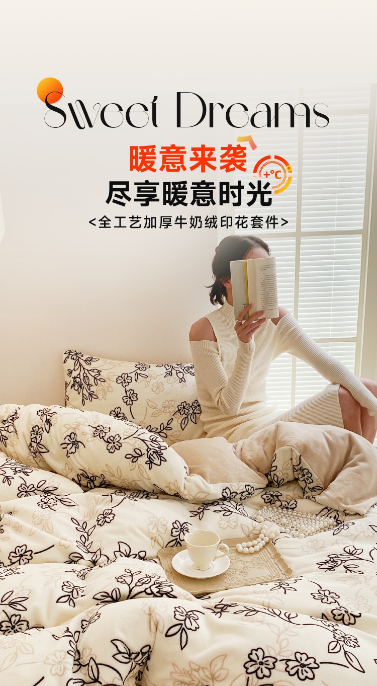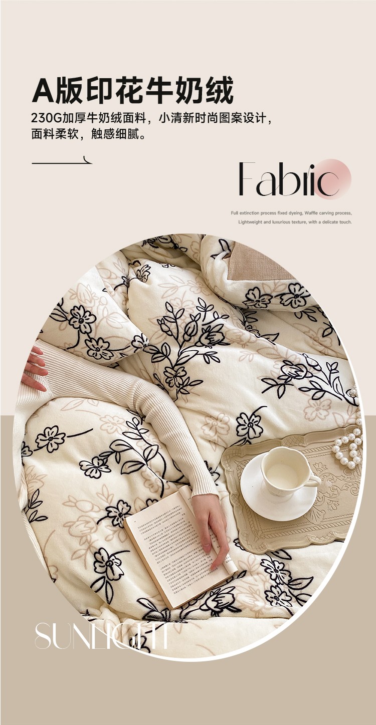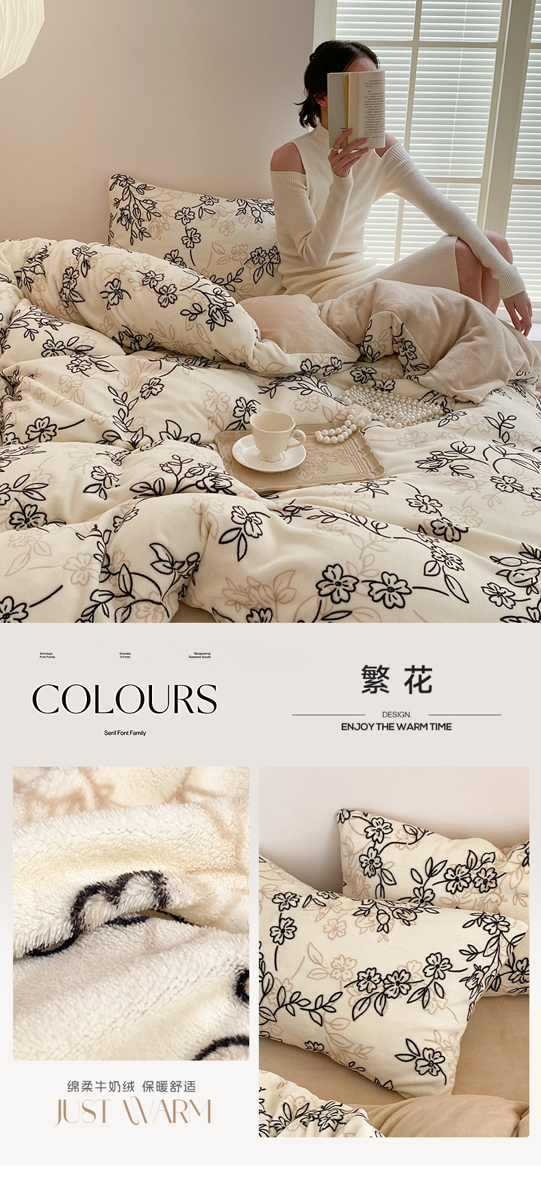 当前位置: 91家纺网 > 商品网购 > 床品套件 > 四件套 > 牛奶绒四件套 > 时光里 2023新款230g半消光印花牛奶绒四件套 花卉款-繁花