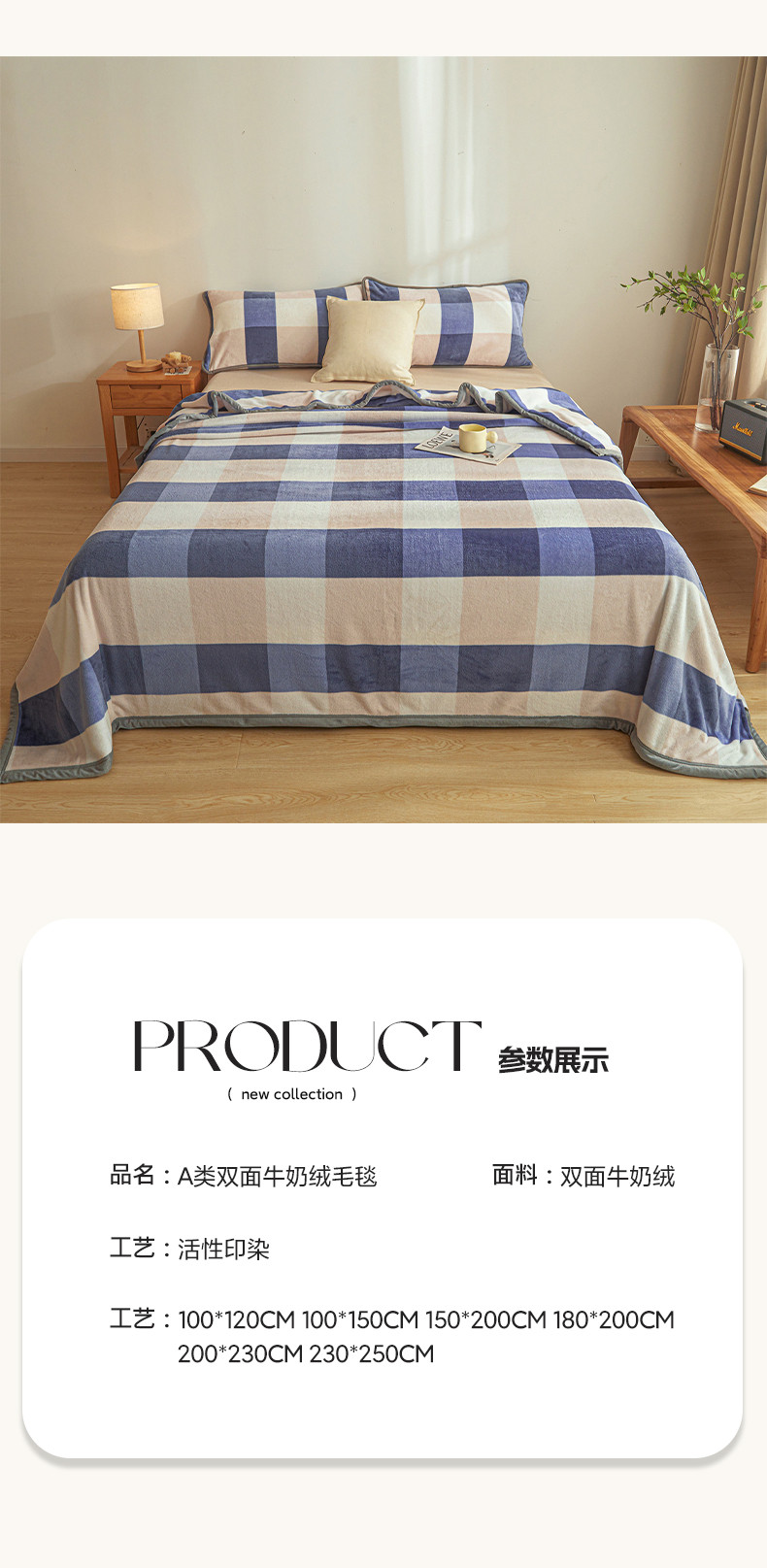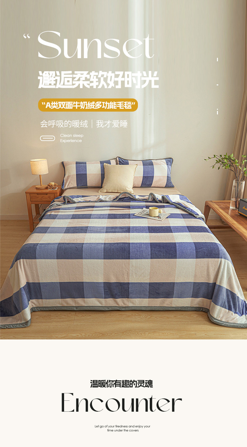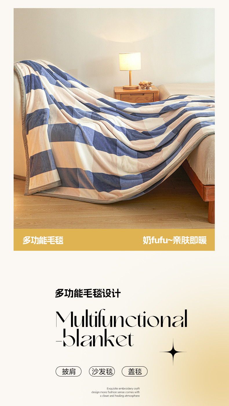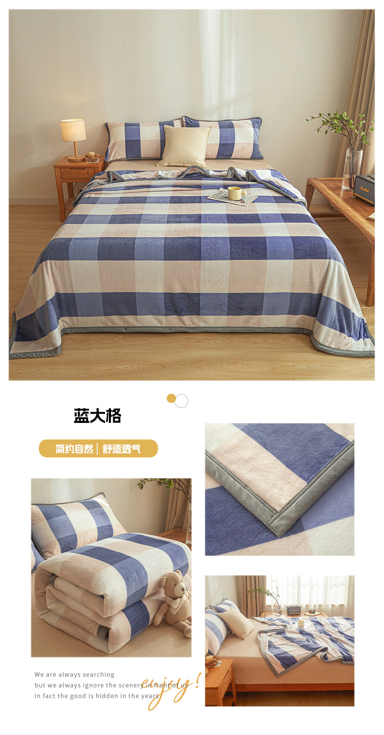 当前位置: 91家纺网 > 商品网购 > 毛毯休闲毯绒毯 > 毛毯 > 古吉梦 2023新款A类双面无印风牛奶绒毛毯 毛毯-蓝大格