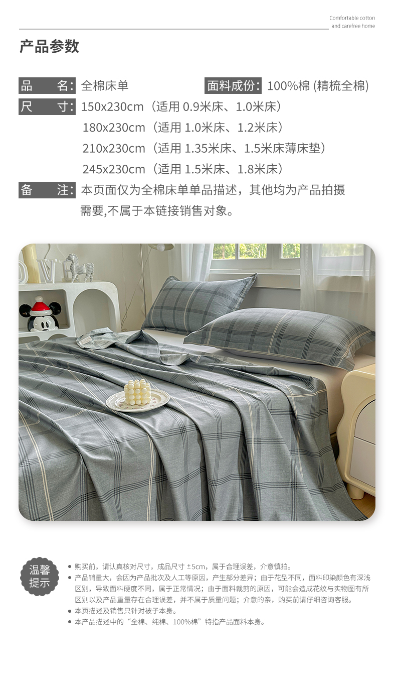 商品名称:元元被芯 2023新款全棉直角印花床单 北欧格