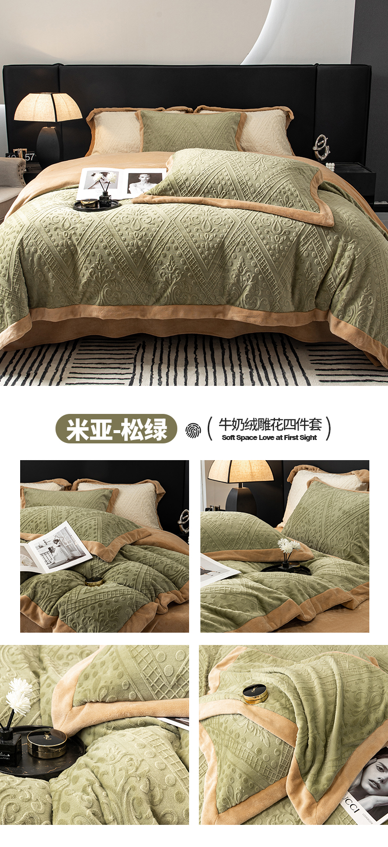 商品名称:懒猫家纺 2024新款烂花牛奶绒四件套 米亚-松绿
