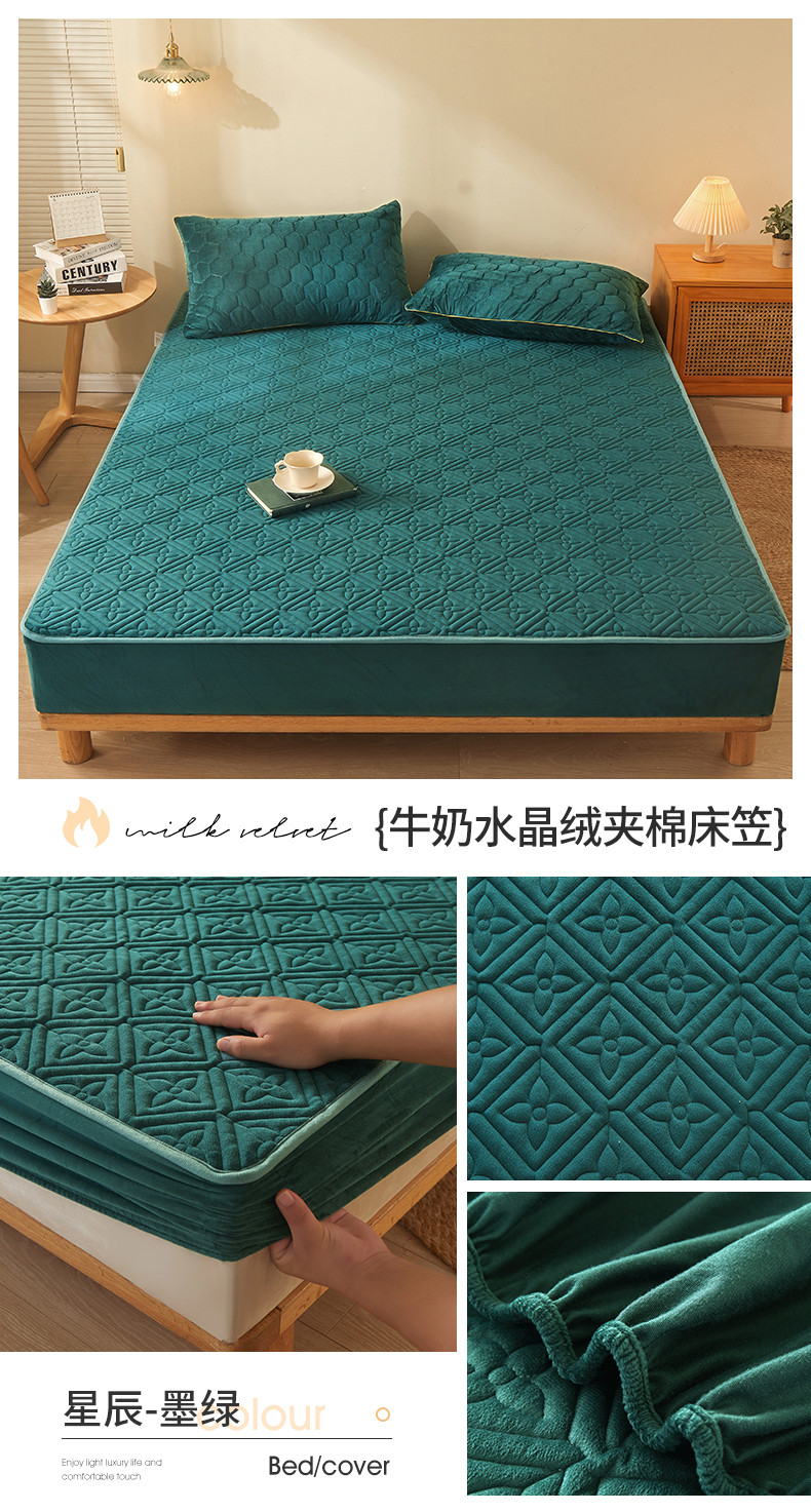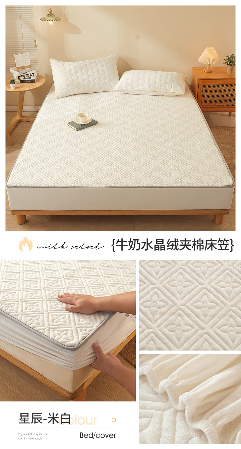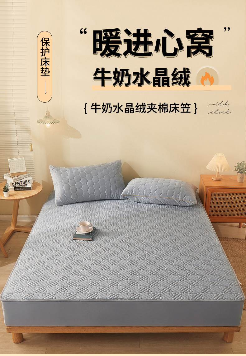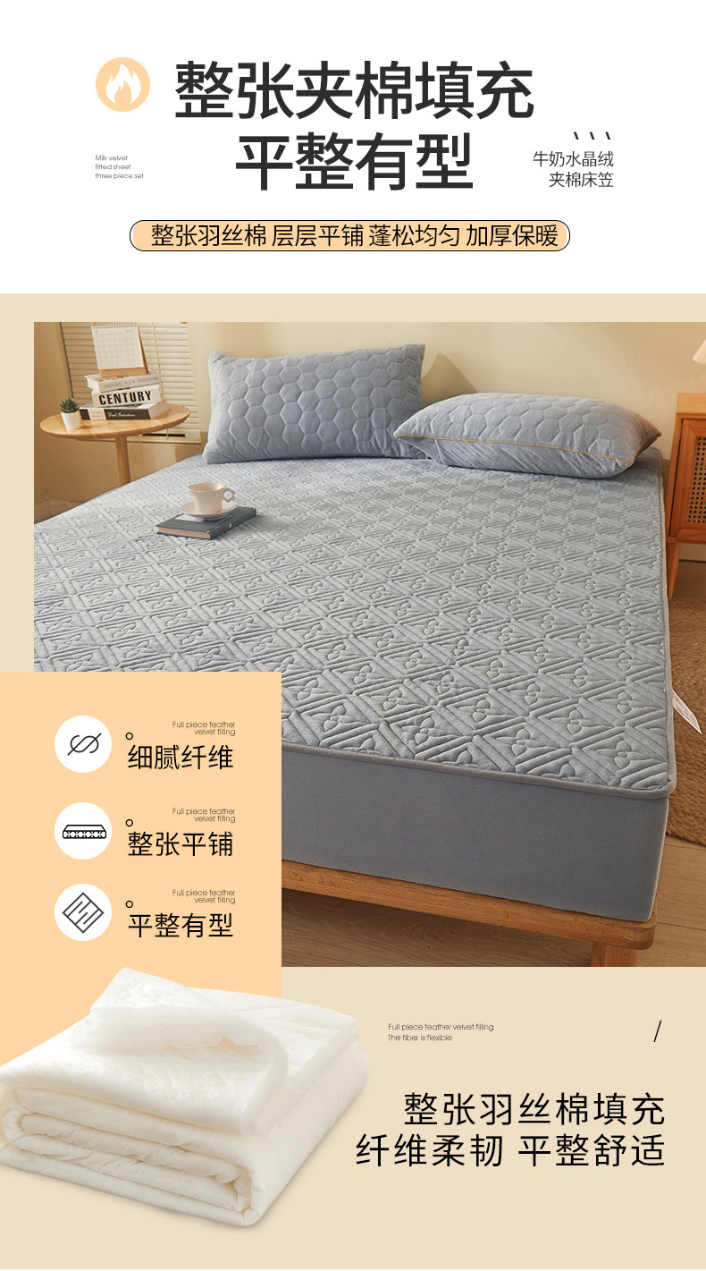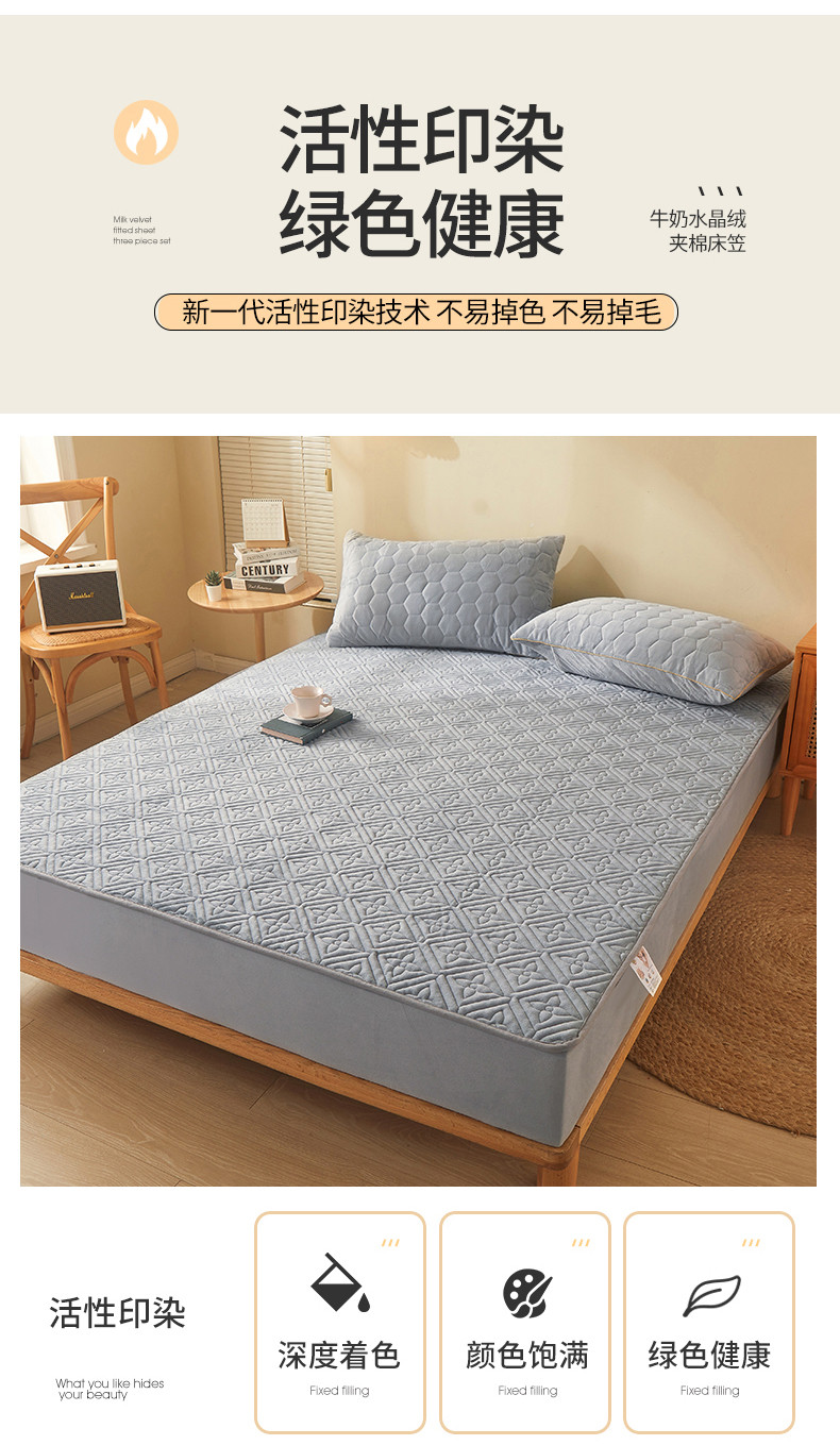 商品名称:总2024新款牛奶绒水晶绒纯色夹棉单床笠三件套席梦思床护垫