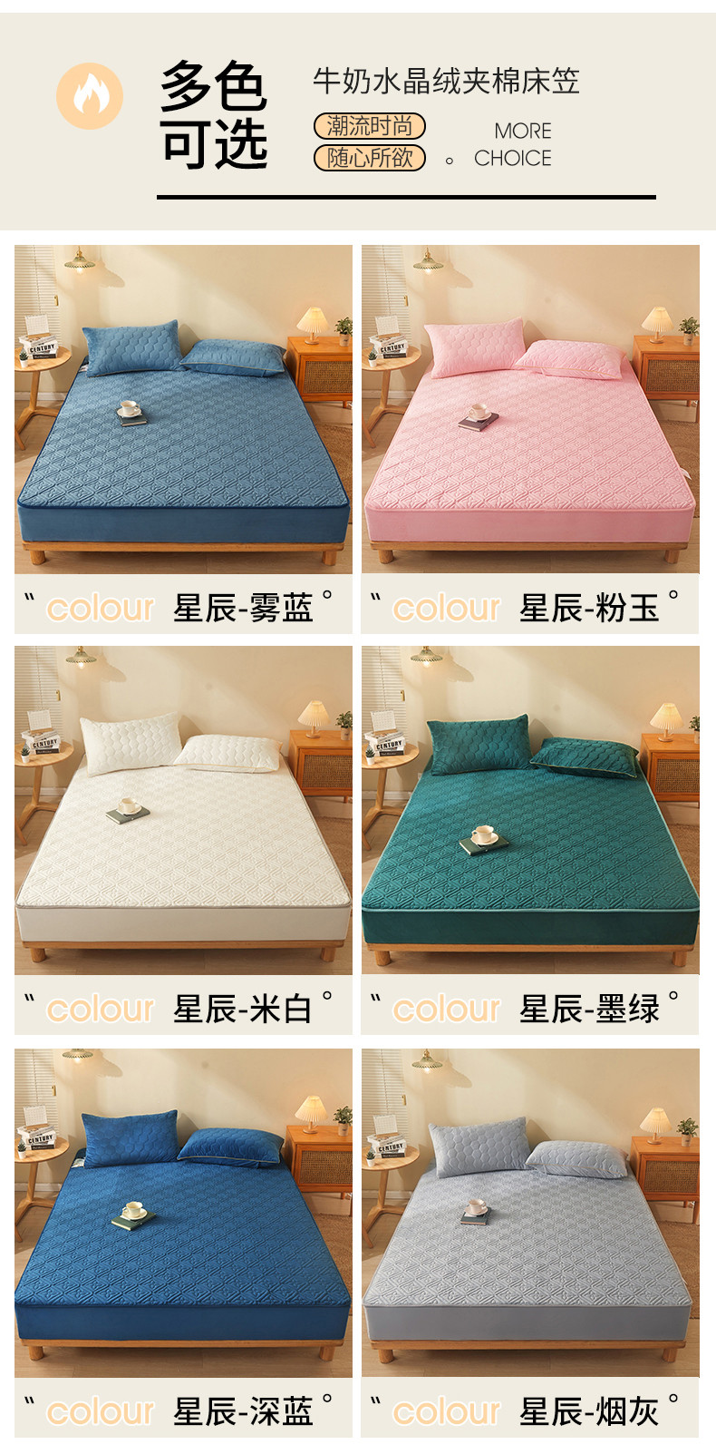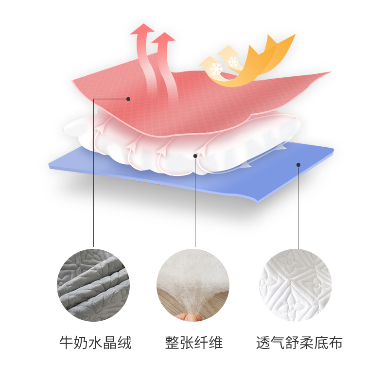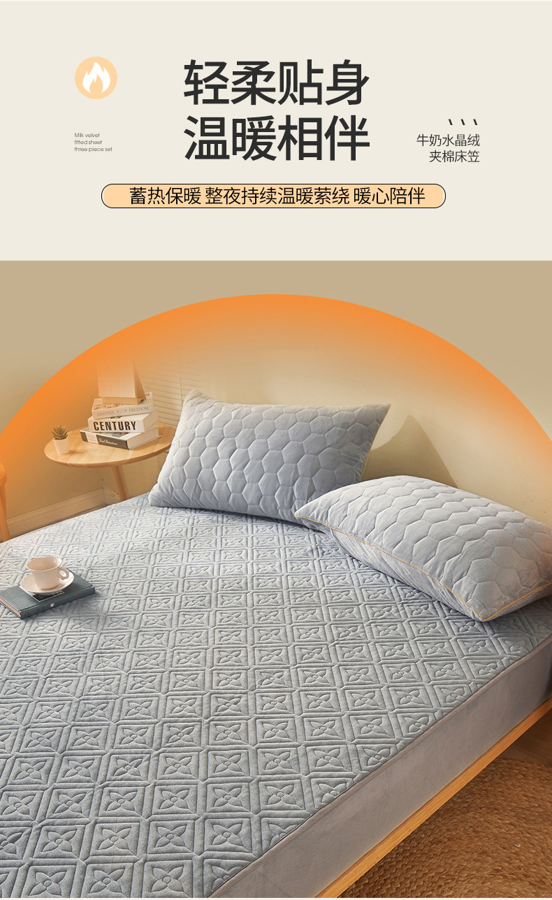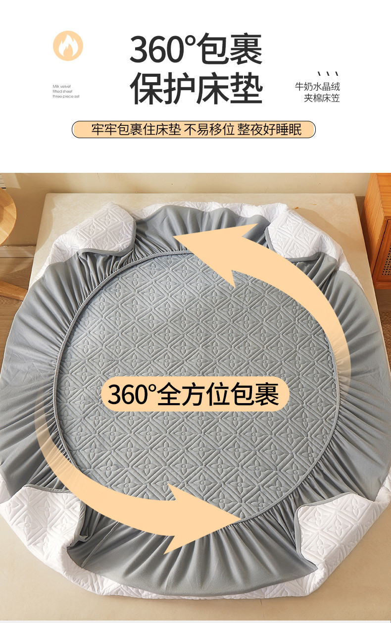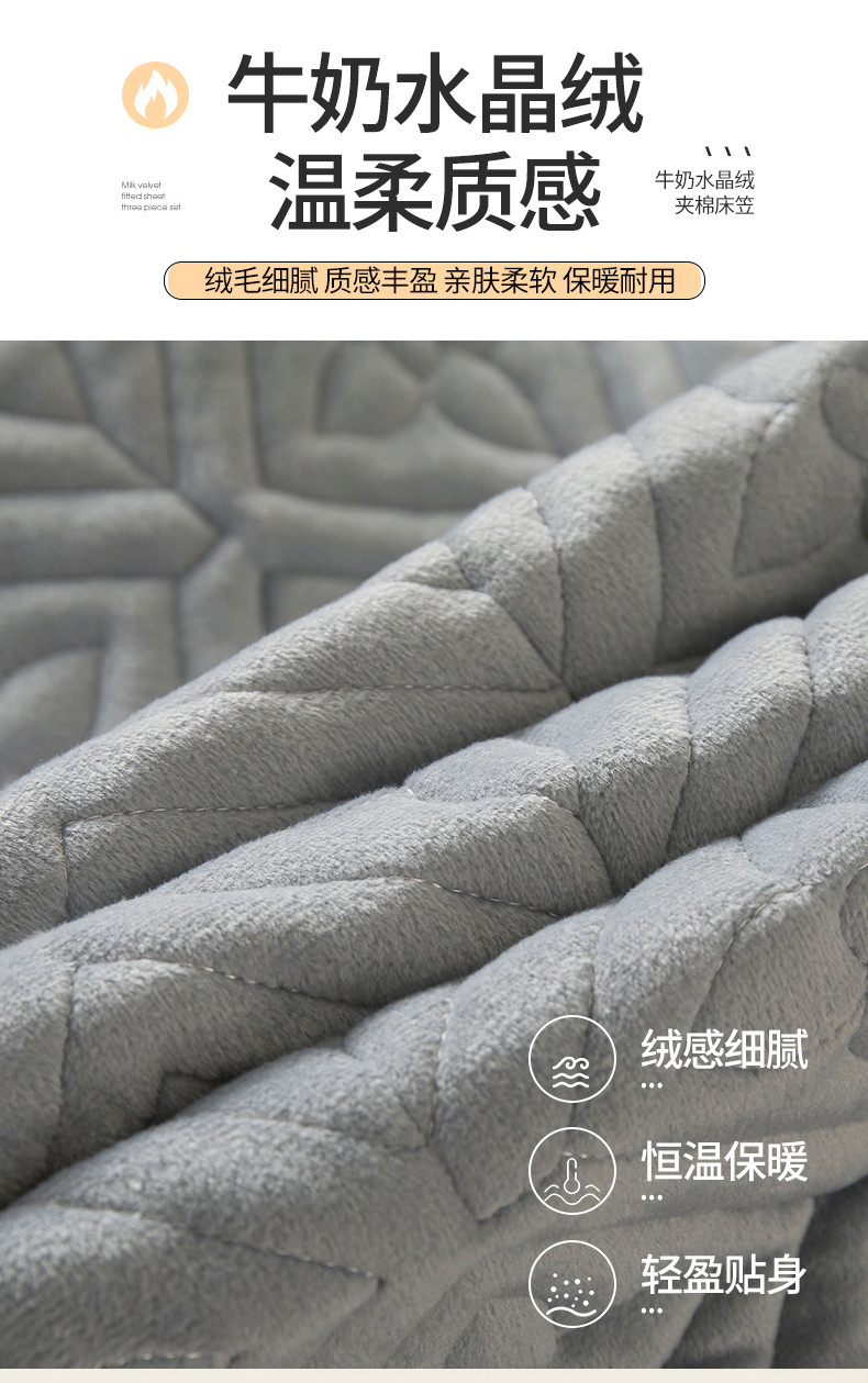 商品名称:总2024新款牛奶绒水晶绒纯色夹棉单床笠三件套席梦思床护垫