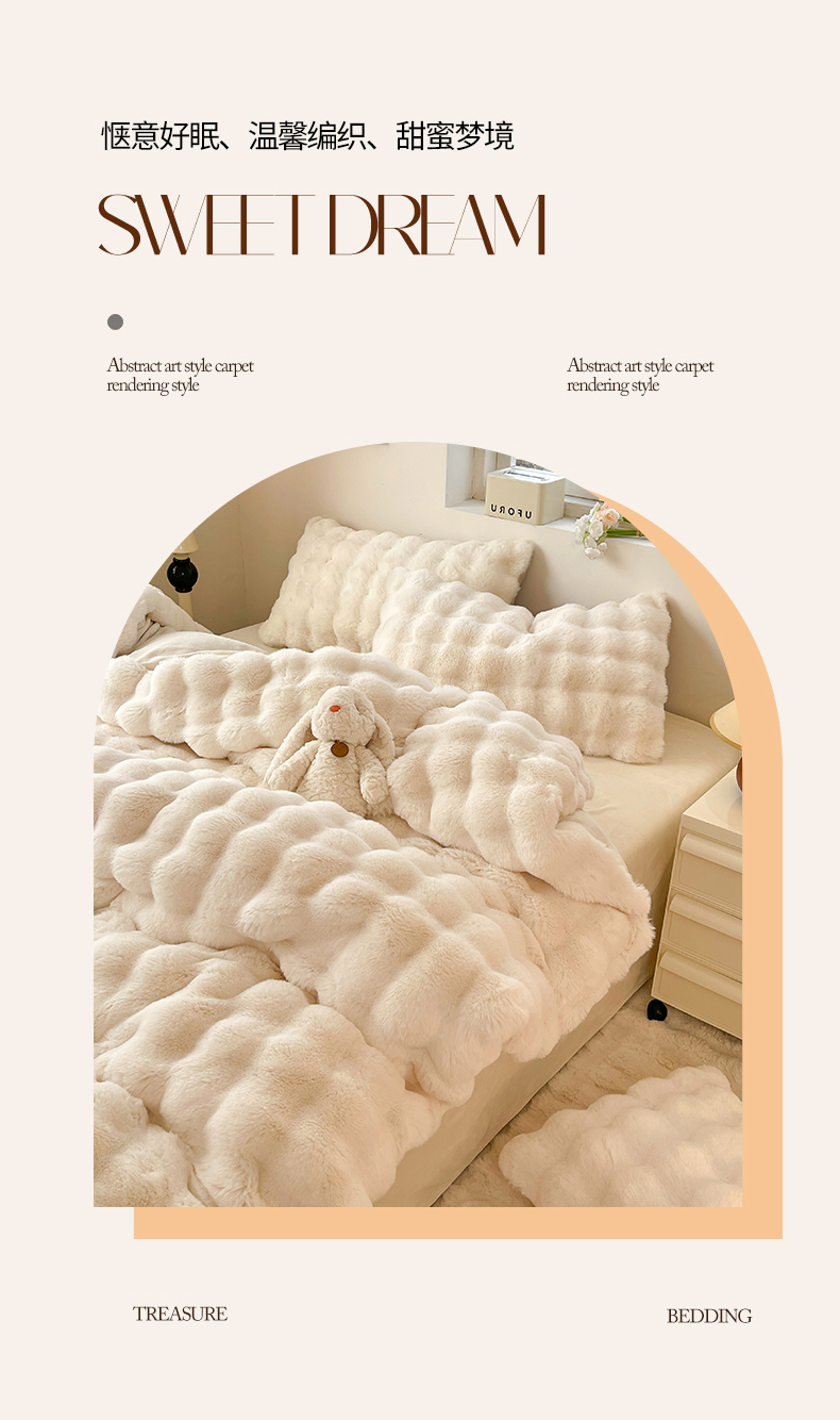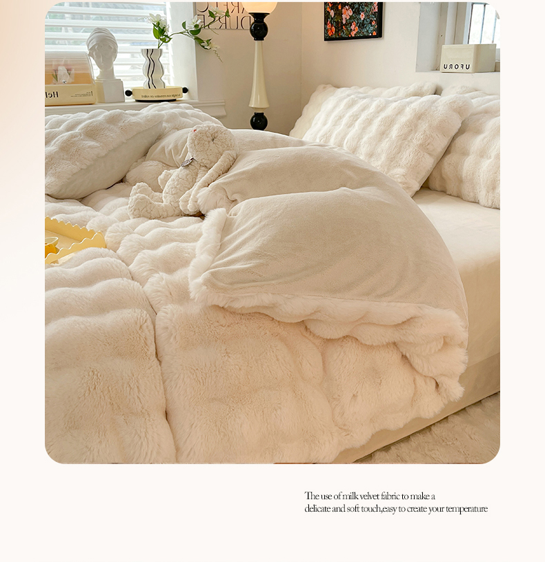 当前位置: 91家纺网 > 商品网购 > 床品套件 > 四件套 > 牛奶绒四件套 > 席之家 2024新款高克重托卡斯仿皮草大泡泡兔兔绒牛奶绒四件套 纯咖