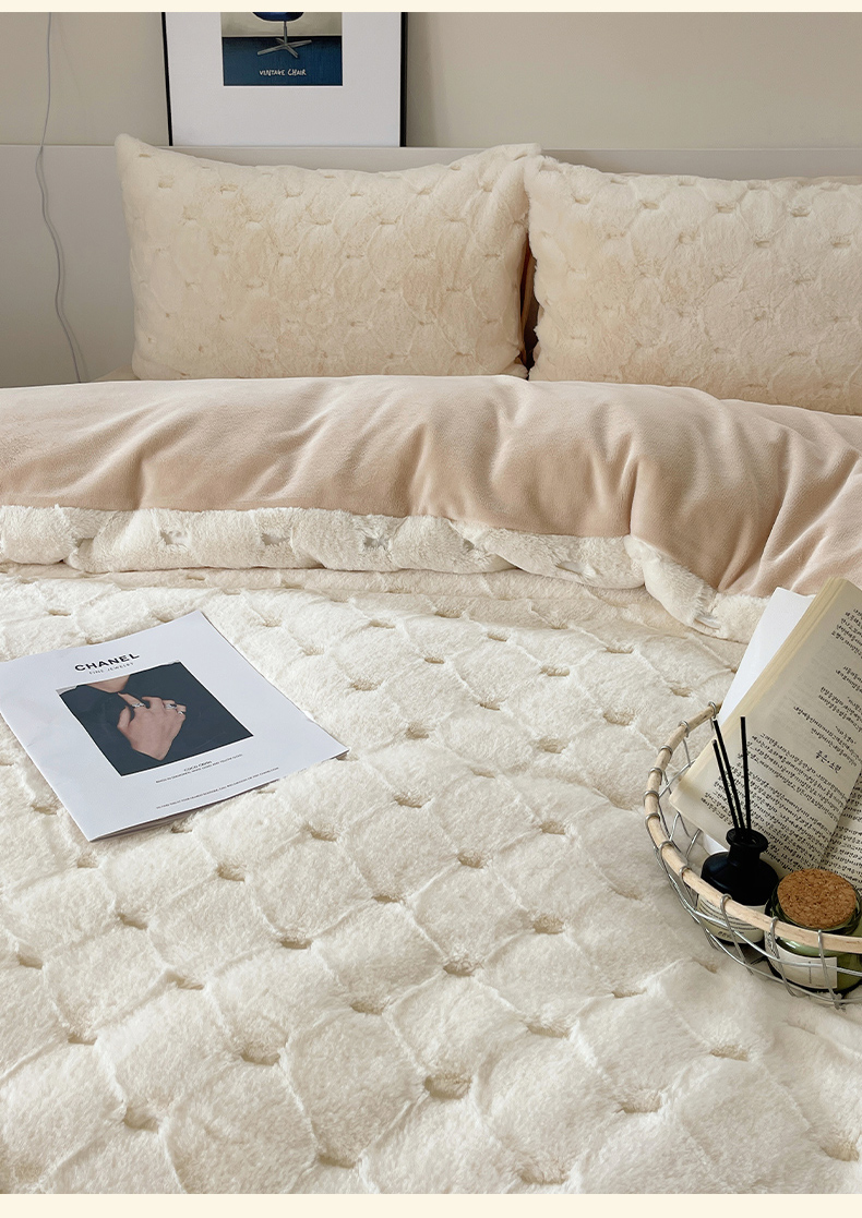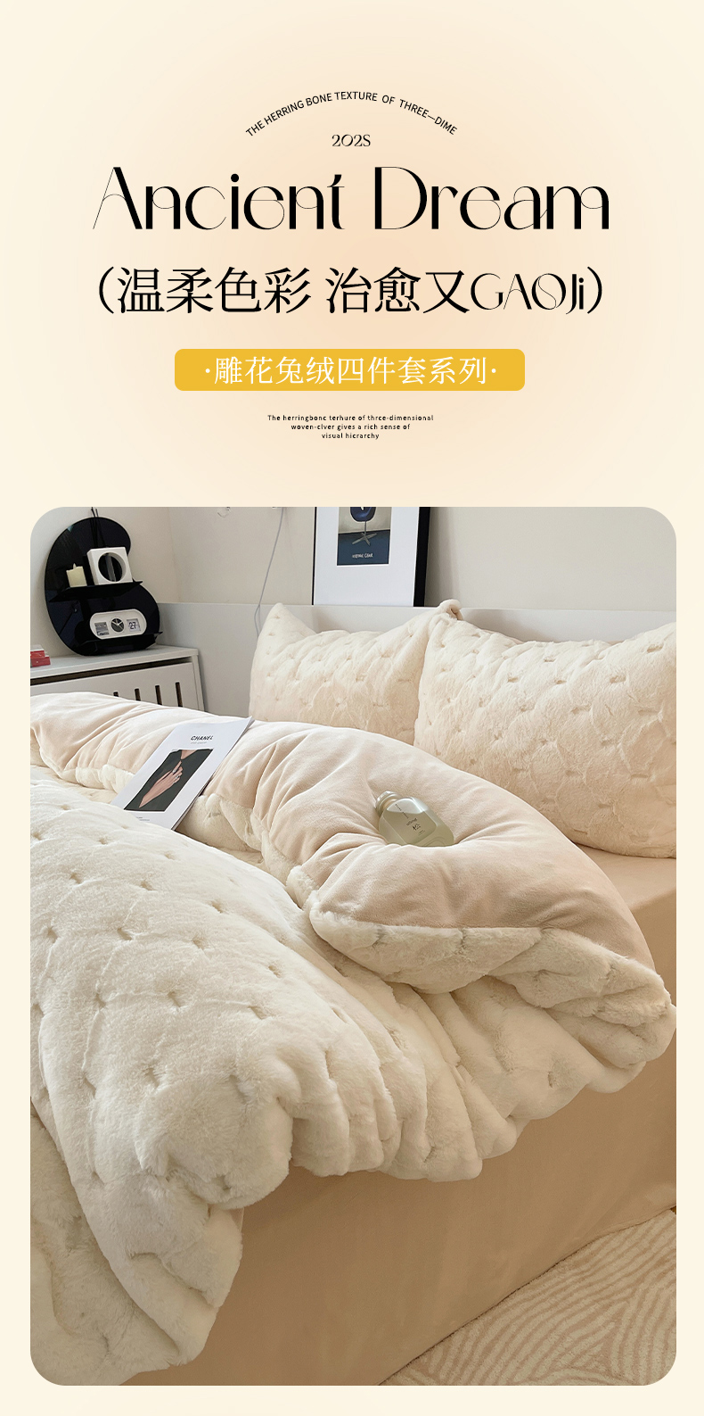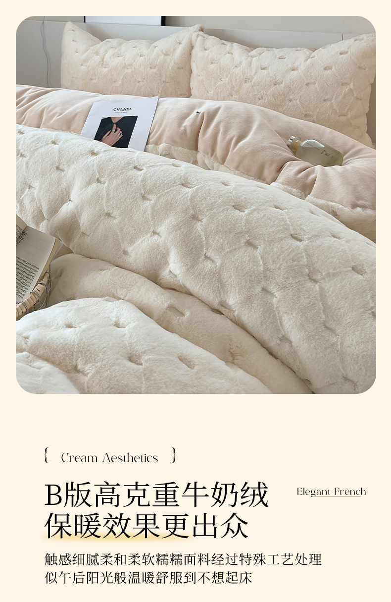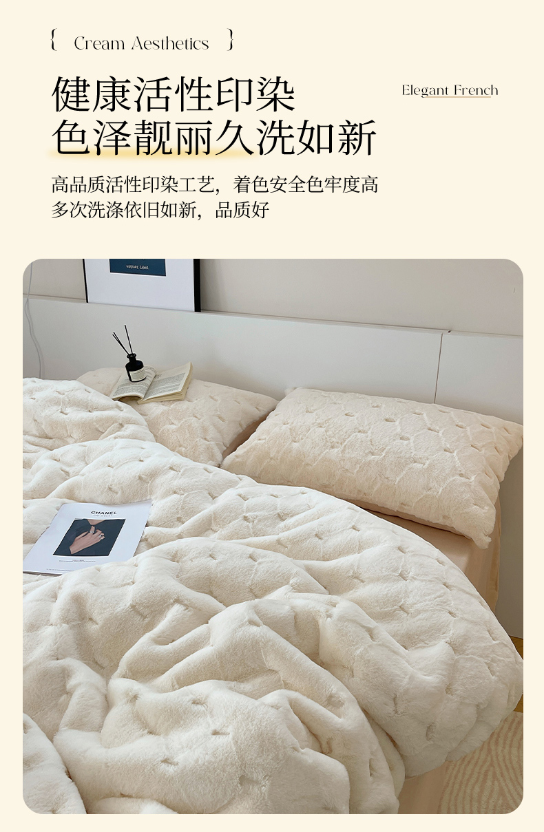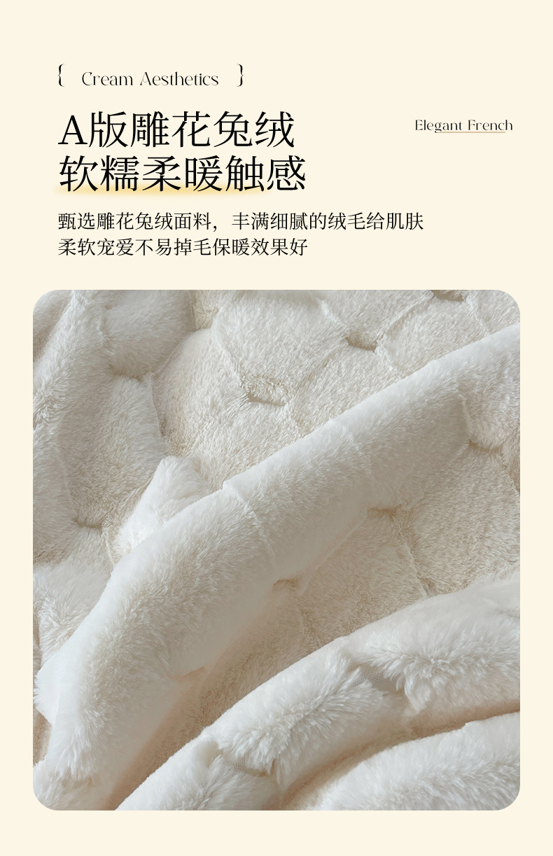 三朵家纺 2023新款加厚保暖雕花兔毛绒四件套 麦格-奶白卡