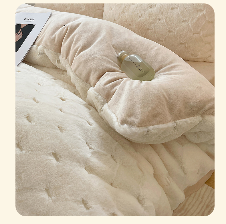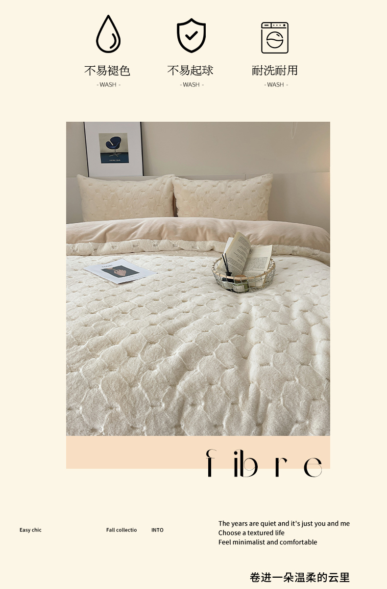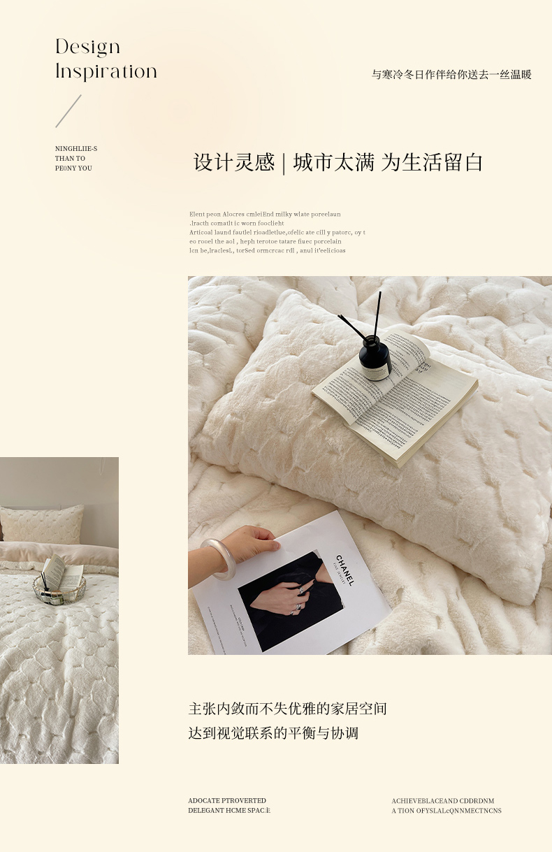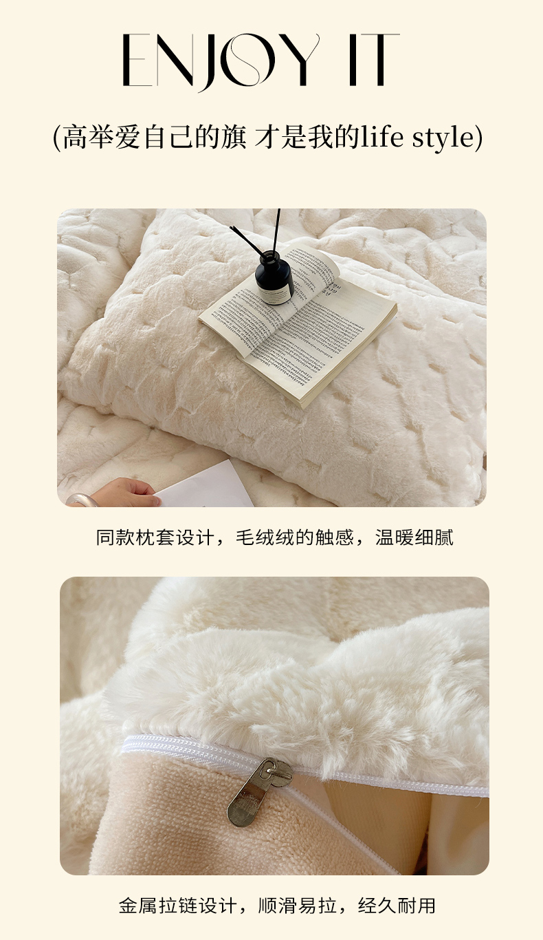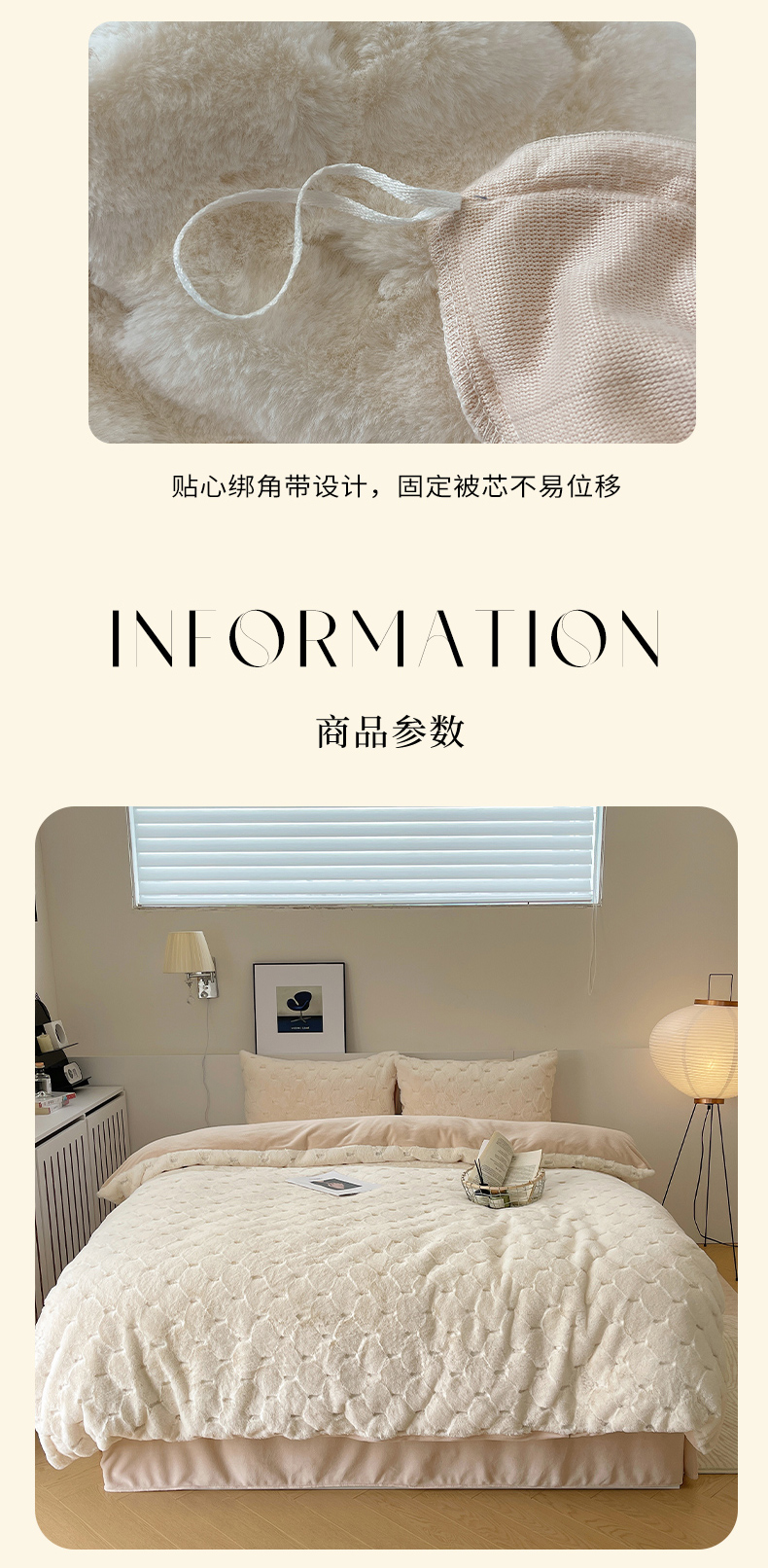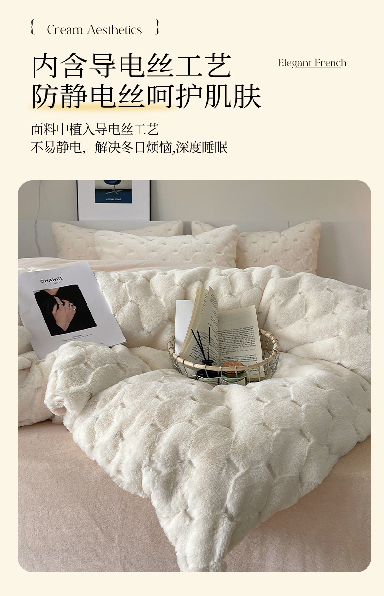 商品名称:三朵家纺 2023新款加厚保暖雕花兔毛绒四件套 麦格-奶白卡