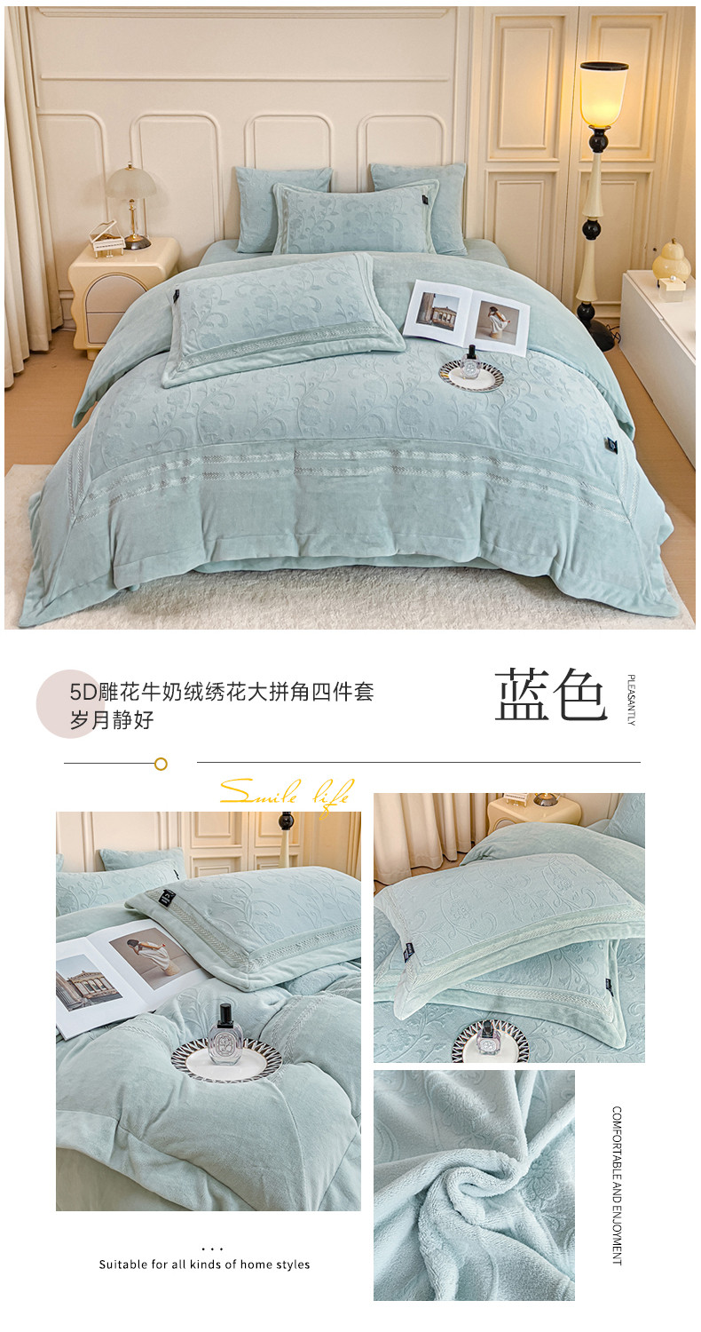 (总)品家居 2025新款5D雕花牛奶绒绣花大拼角四件套-岁月静好