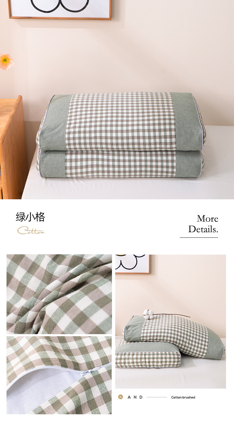 商品名称:纽乐 2023新款全棉水洗棉荞麦枕 绿小格
