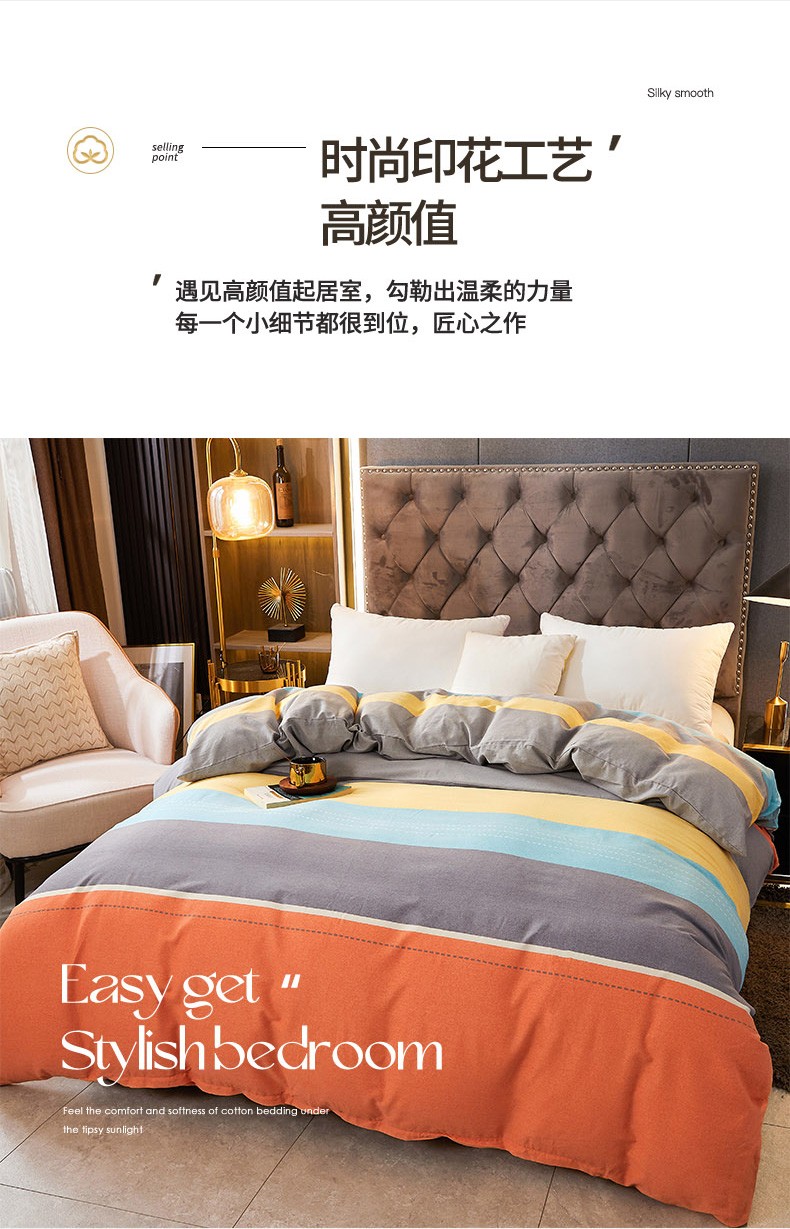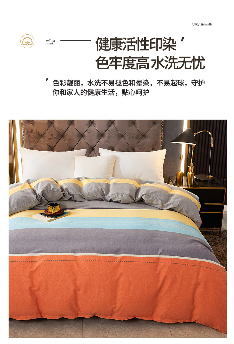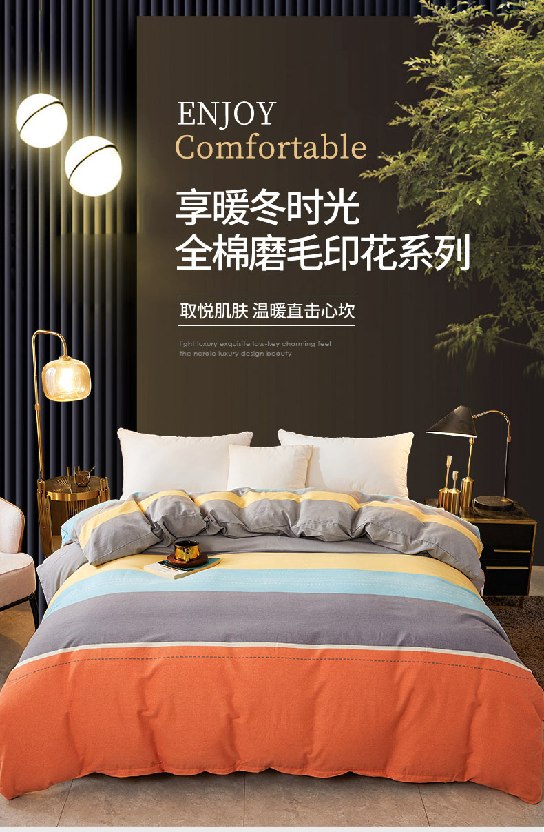 • 91家纺网 家纺一手货源 找家纺 伊而梦 2023新款全棉磨毛印花四件套系列单品被套 线韵之美-桔