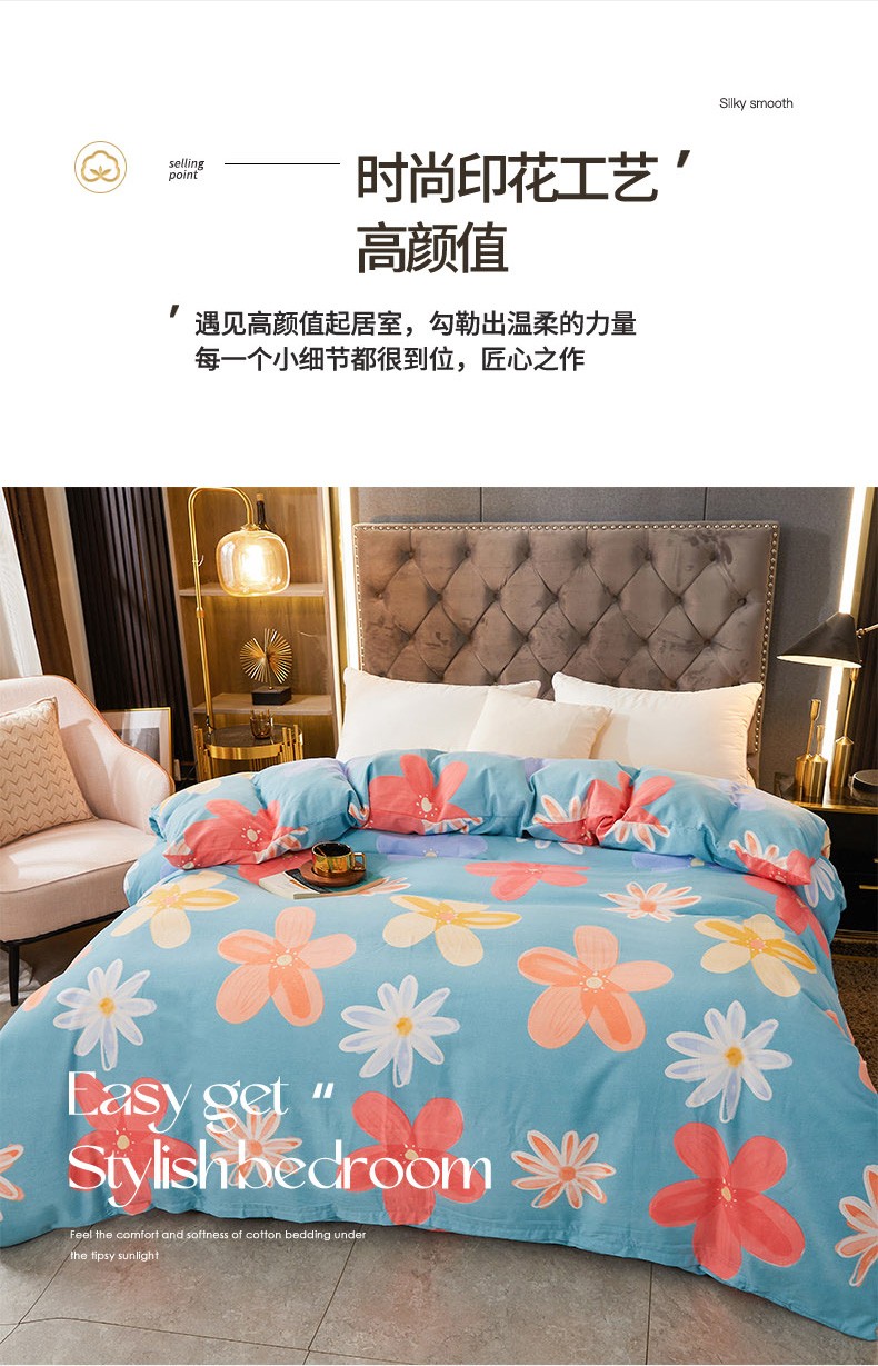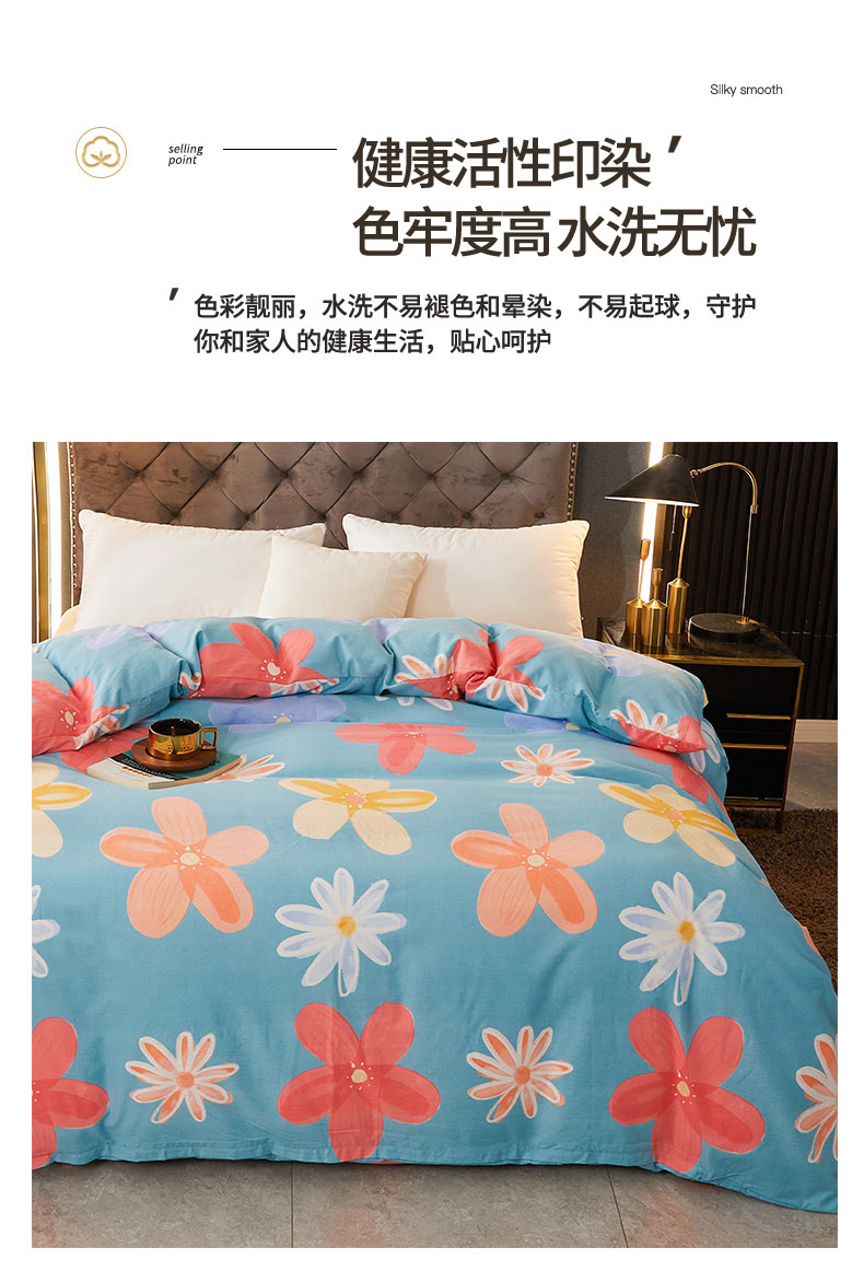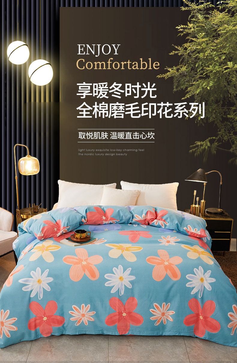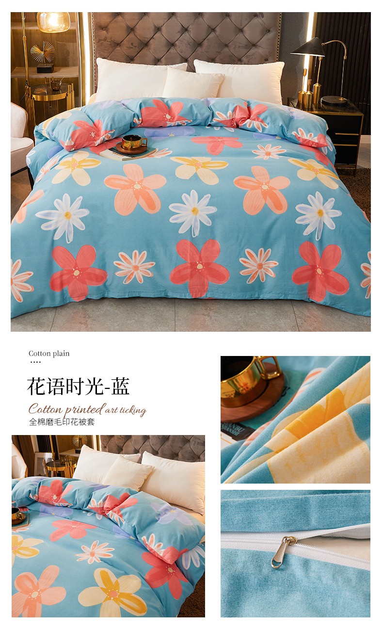 • 91家纺网 家纺一手货源 找家纺 伊而梦 2023新款全棉磨毛印花四件套系列单品被套 花语时光-蓝