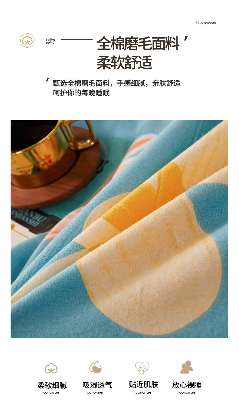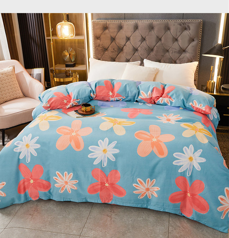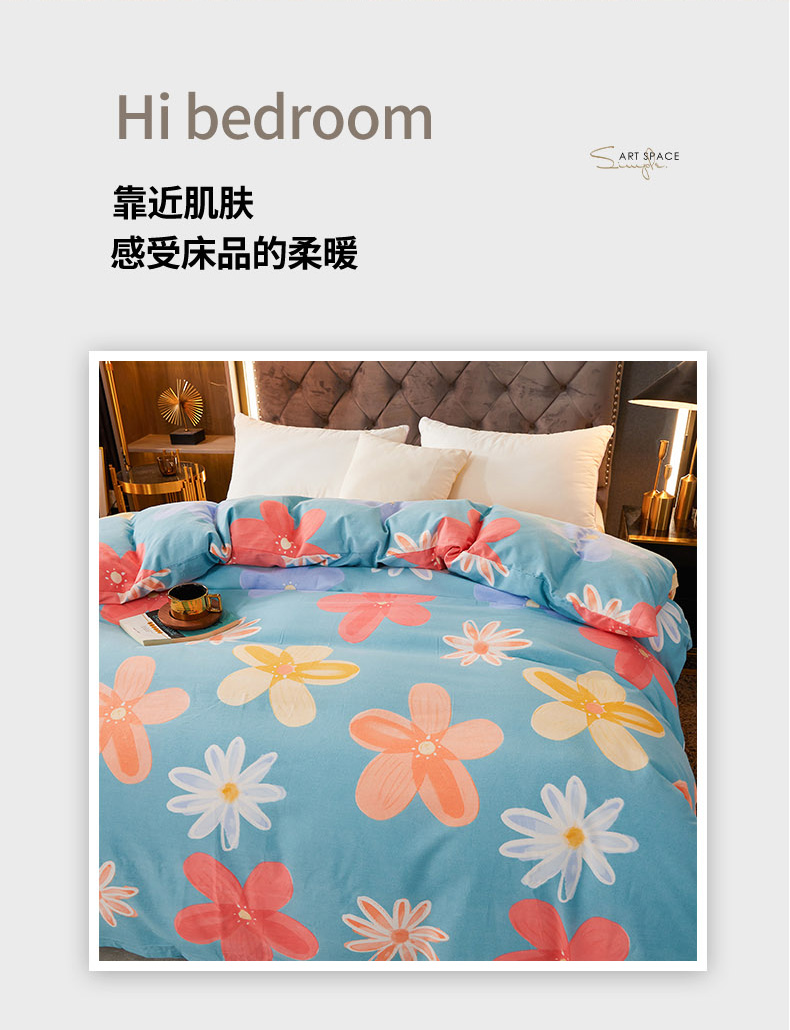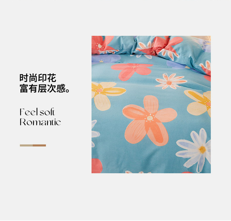 • 91家纺网 家纺一手货源 找家纺 伊而梦 2023新款全棉磨毛印花四件套系列单品被套 花语时光-蓝