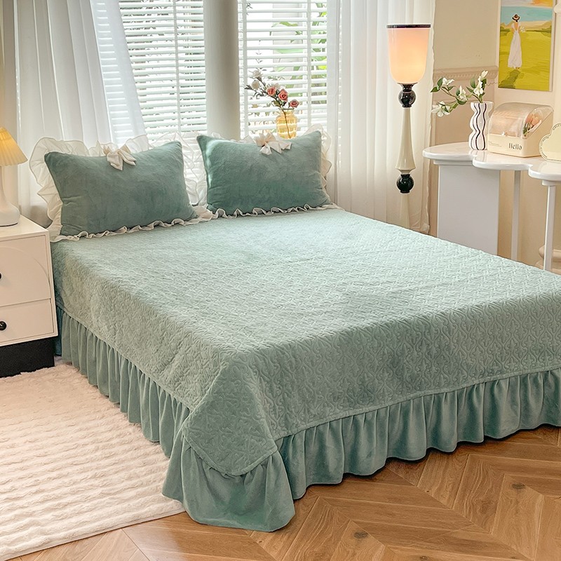 芭比蔓家纺 2025年新款雕花牛奶绒花边四件套-爱丽丝 爱丽丝-绿,爱丽丝-绿