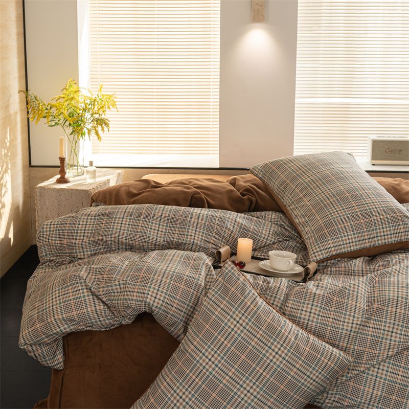 (总)洋铭区 2023新款色织水洗棉格子四件套,牛油果格,青桃格,山竹格,香橙格
