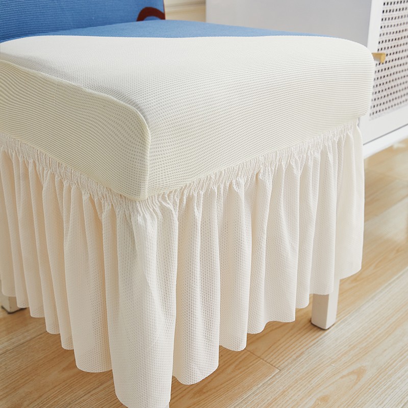当前位置: 91家纺网 > 商品网购 > 居家布艺 > 坐垫/椅垫/沙发垫 > 椅垫 > 丝绮鹿 2023新款针织柔肤格椅子套裙边款 简爱-蓝色
