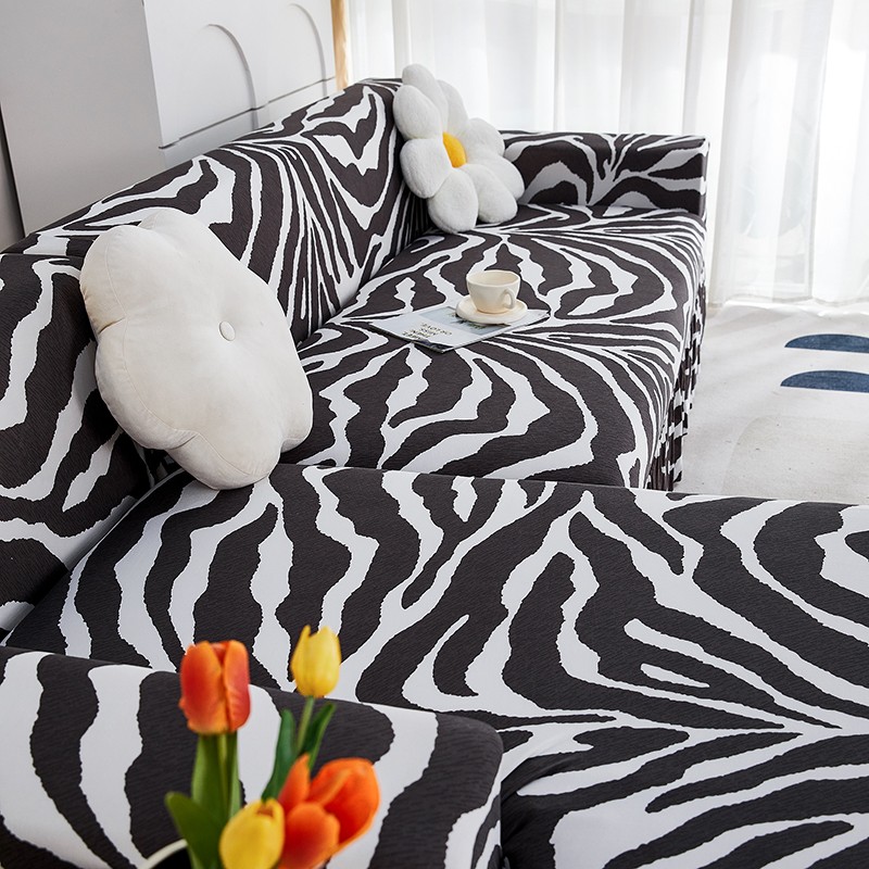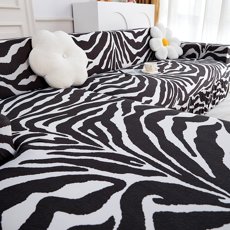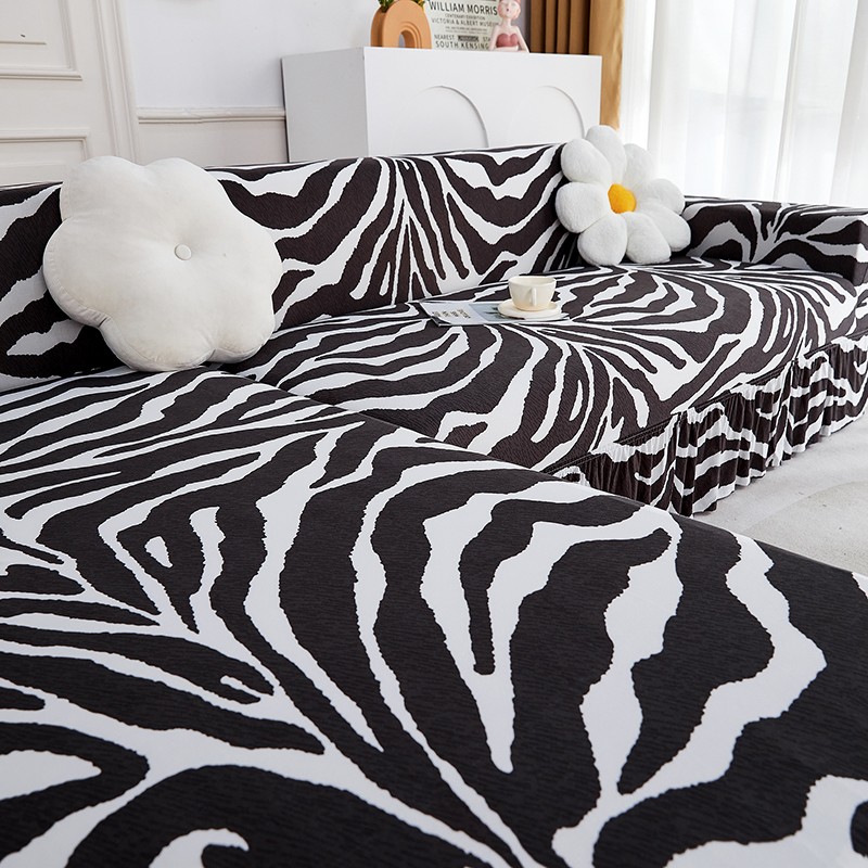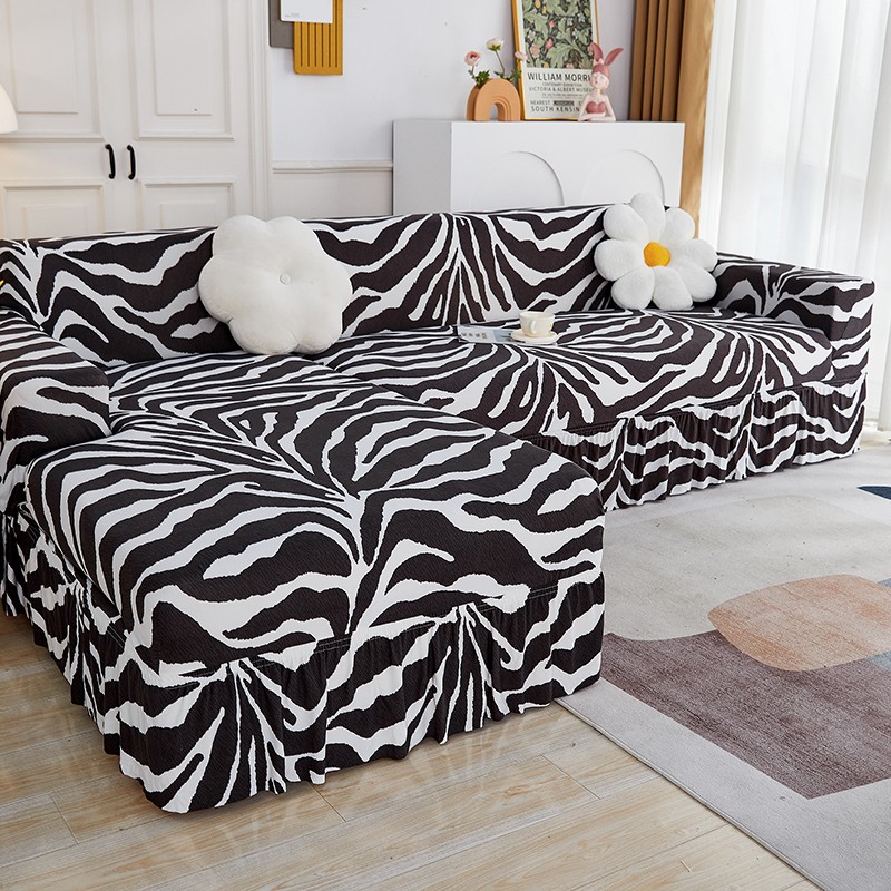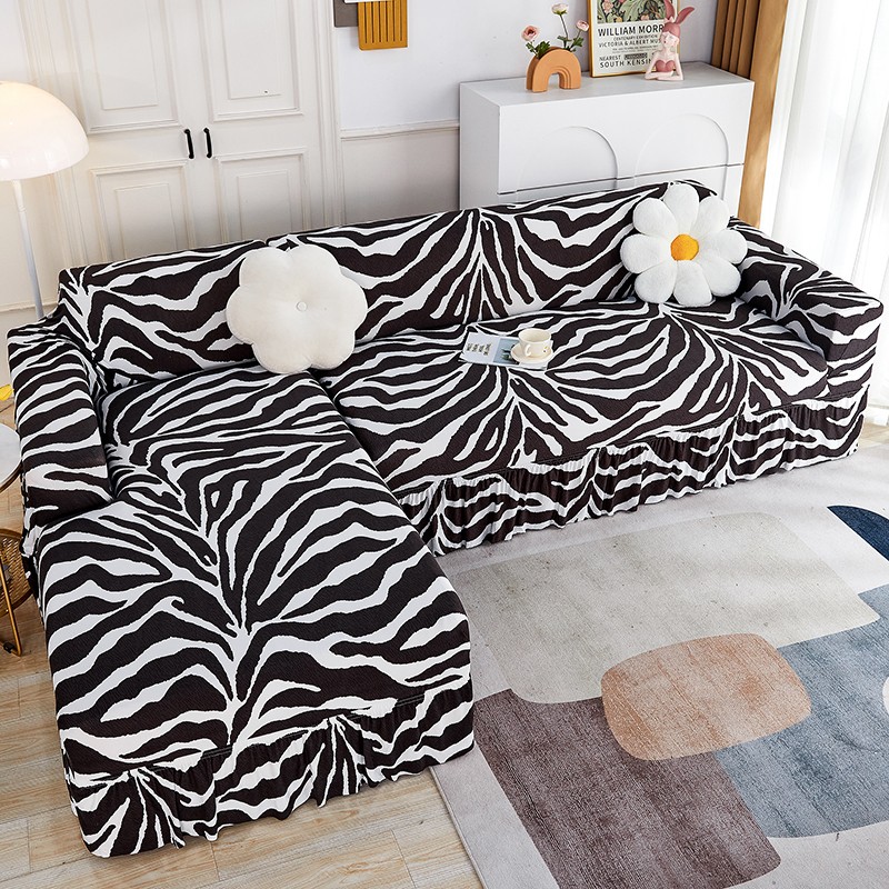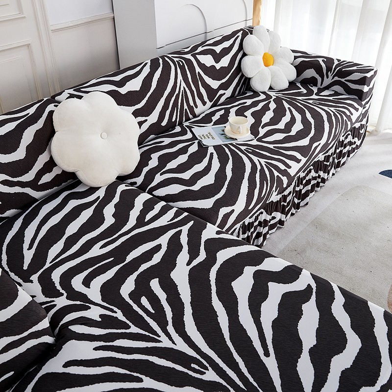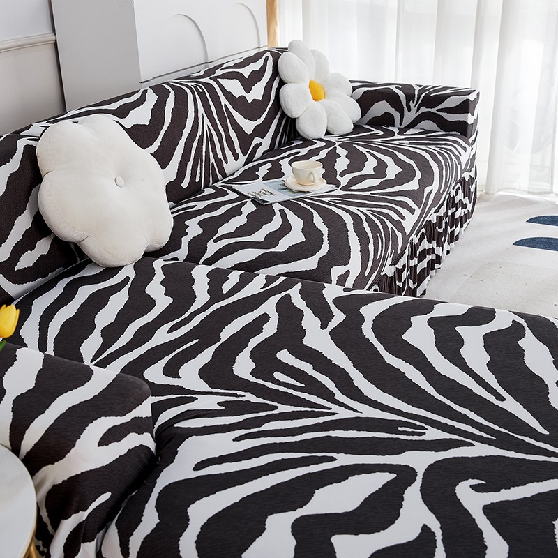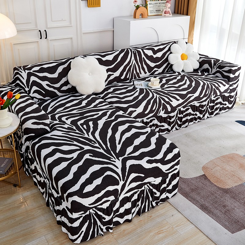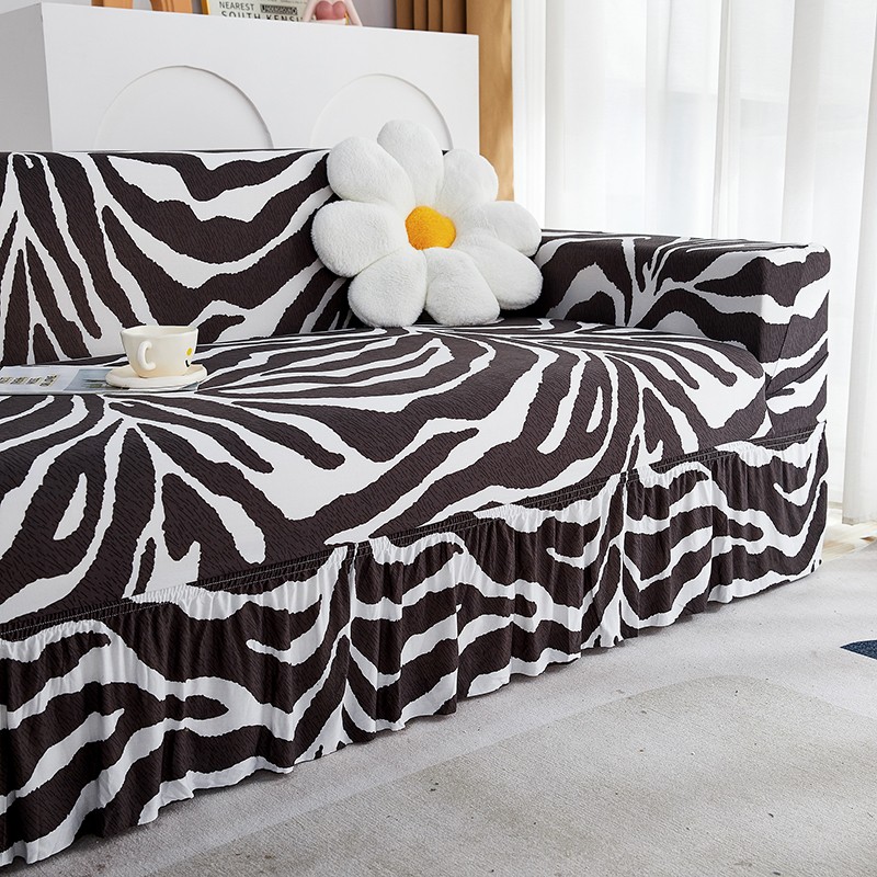 丝绮鹿 2023新款牛奶丝沙发套贵妃图(裙边款) 斑马纹