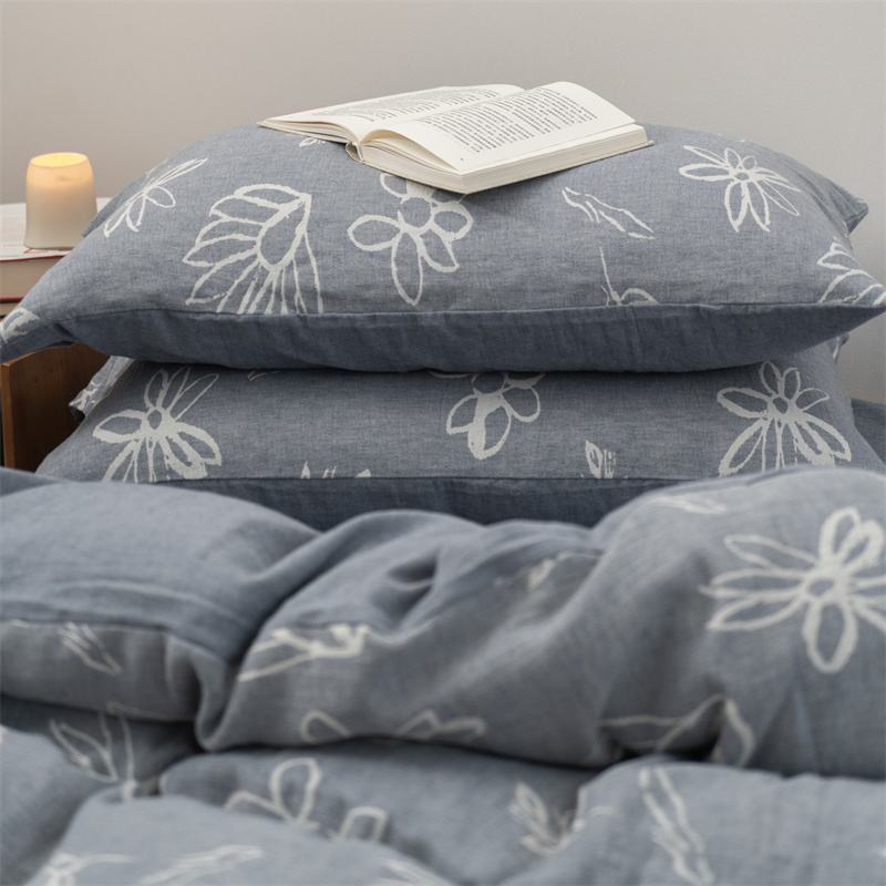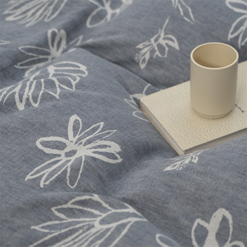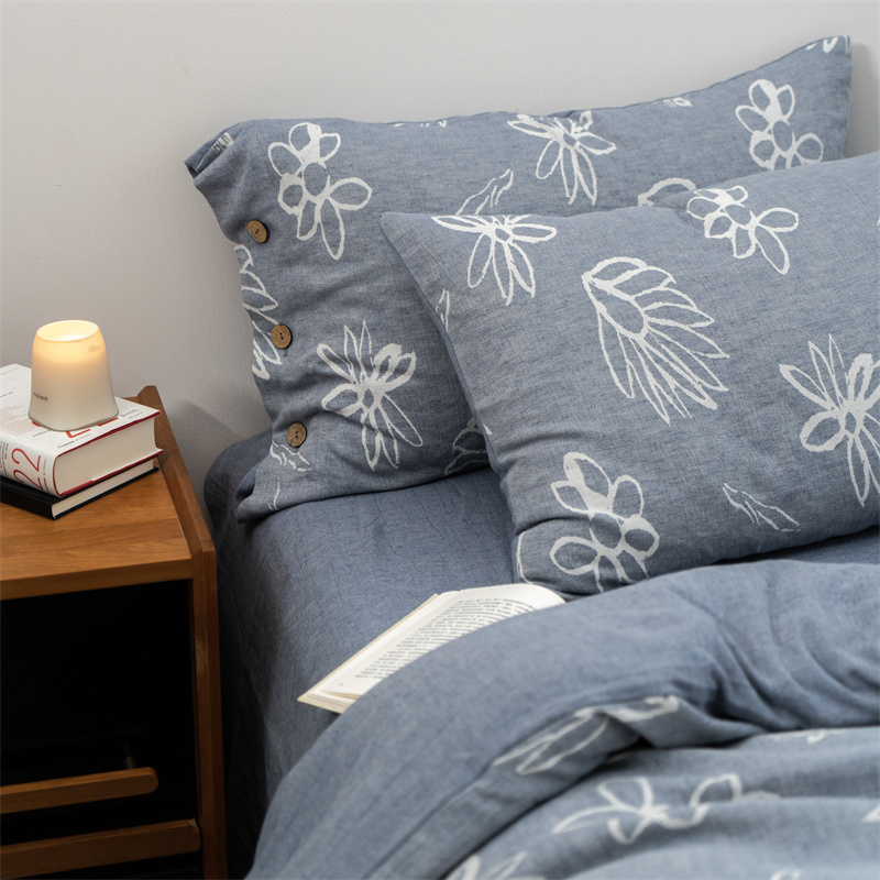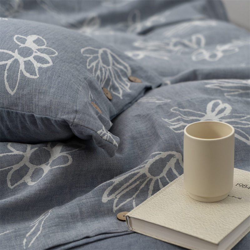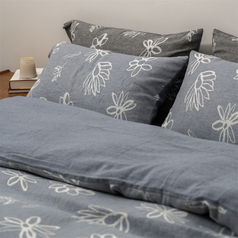 (总)子和家居 2025新款全棉麻感棉花朵款四件套-场景1,麻感棉花朵款四件套