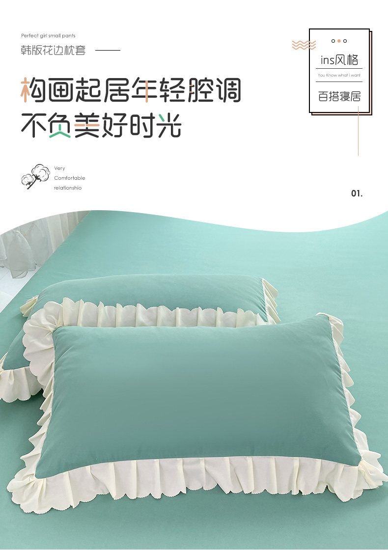 商品名称:莉莉安家纺 2025新款亲肤磨毛单品枕套-花园系列 花园-薄荷绿